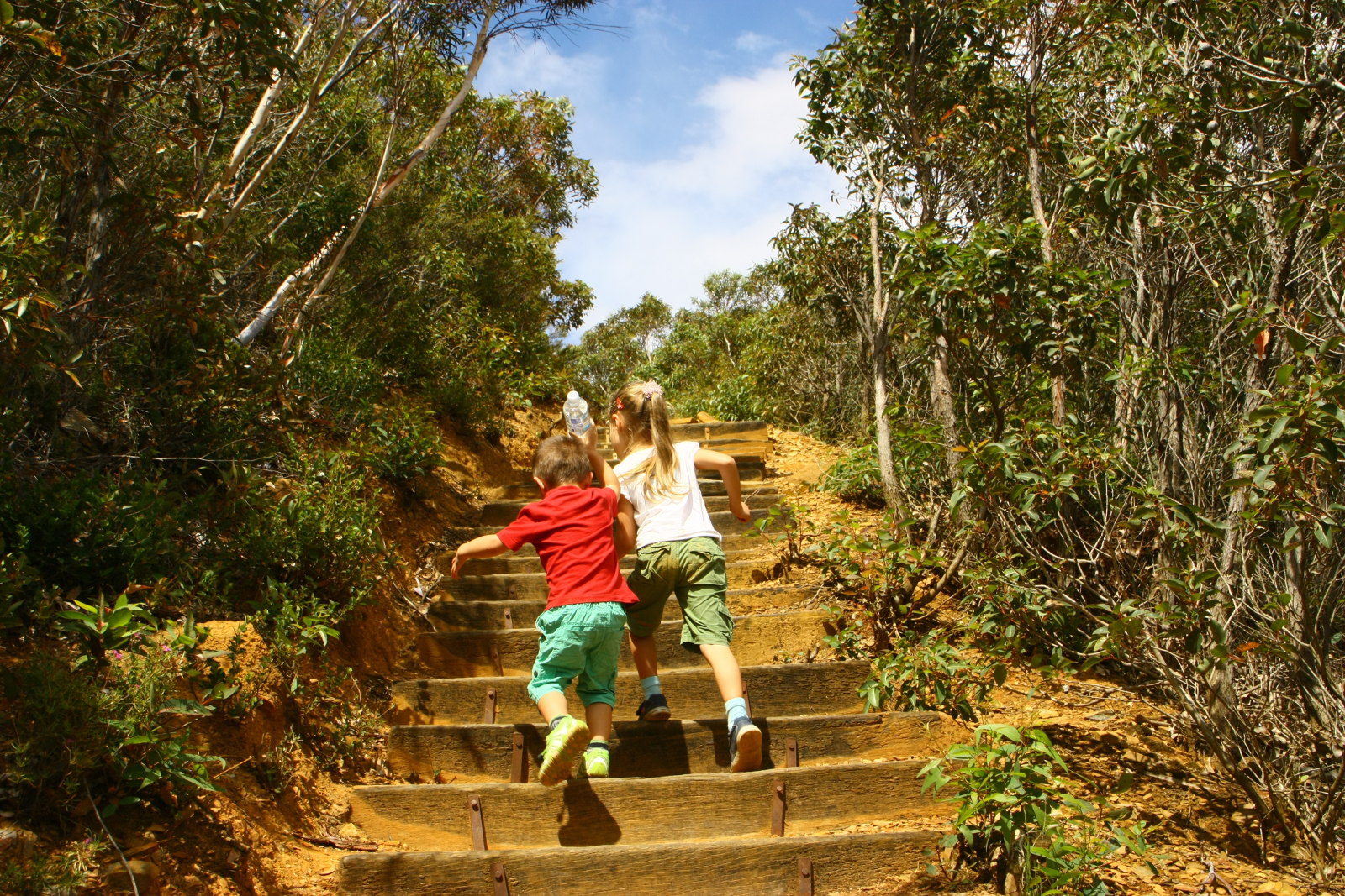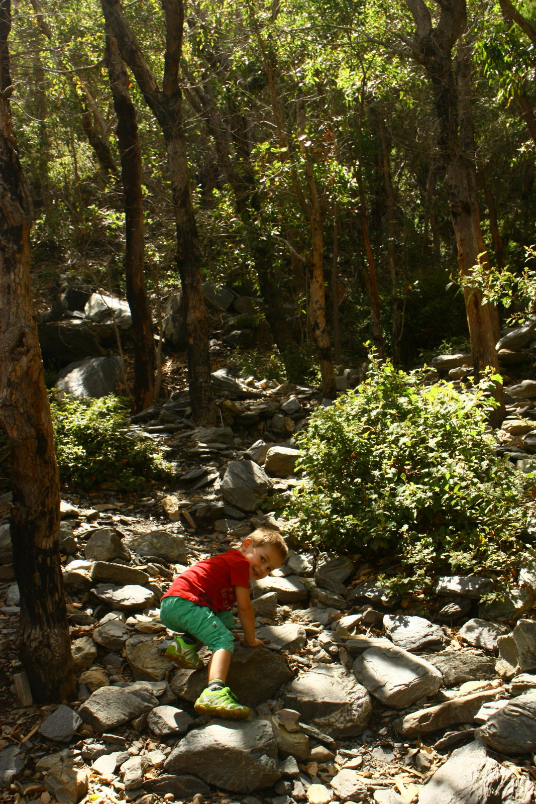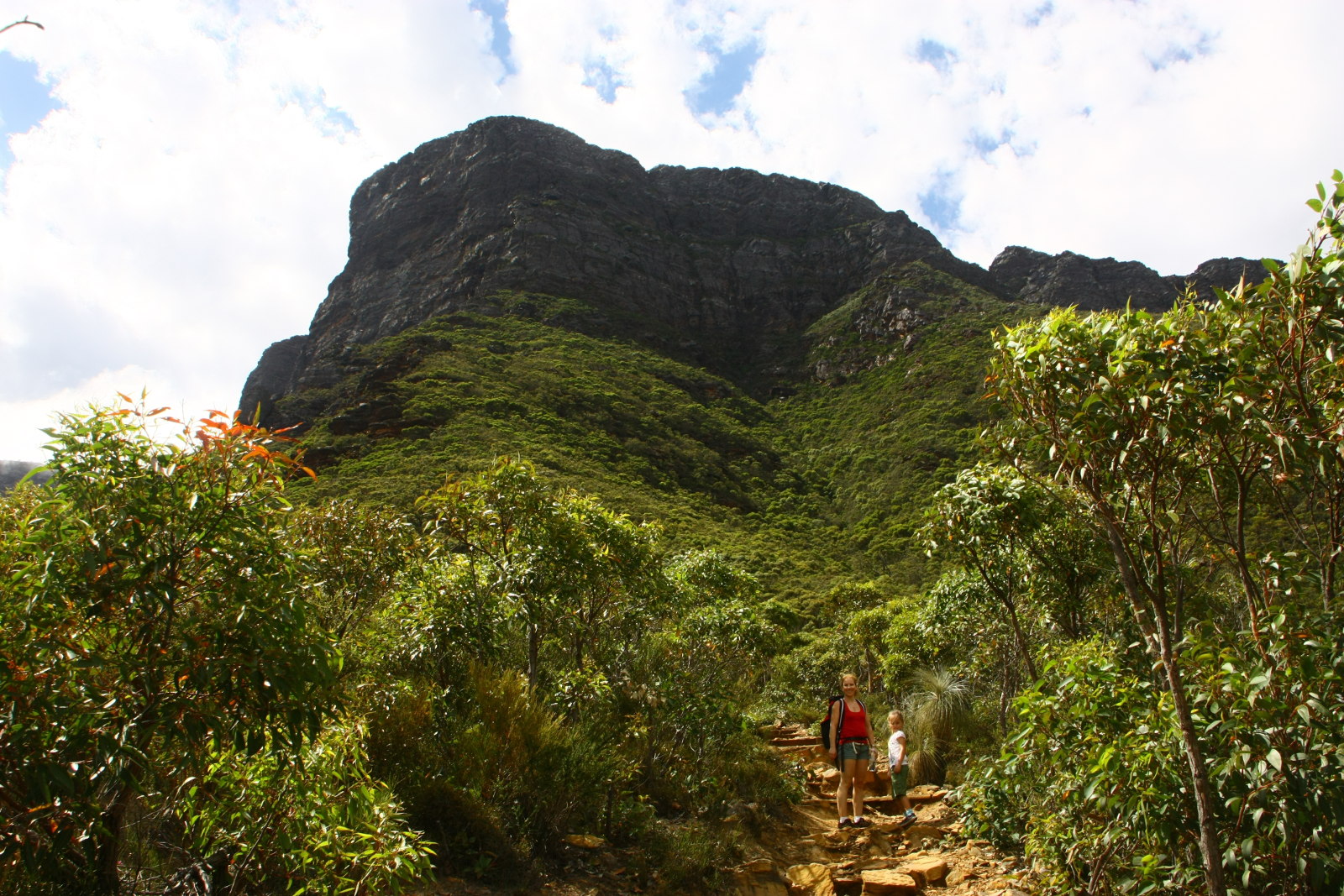 Schon vom Auto aus beeindruckt der Berg mit seinen 1095m hohen Gipfel. Vom Parkplatz auf geht es auf einer Strecke von 3km etwa 650m nach oben - und zurück. Wir beladen uns mit 12 Flaschen Wasser, Toastbroten und Obst zum Mittagessen sowie der Kraxe falls es Felix die 6,2 km zu weit werden. Die Kinder sind hoch motiviert und stürmen den Berg hoch.