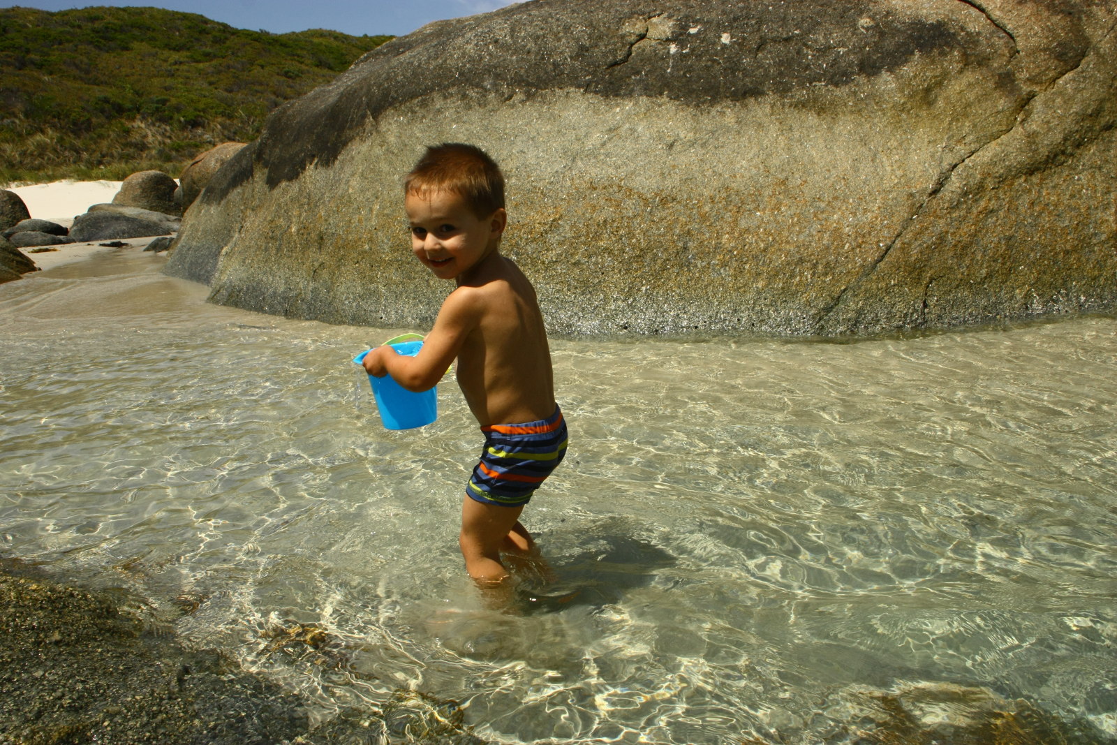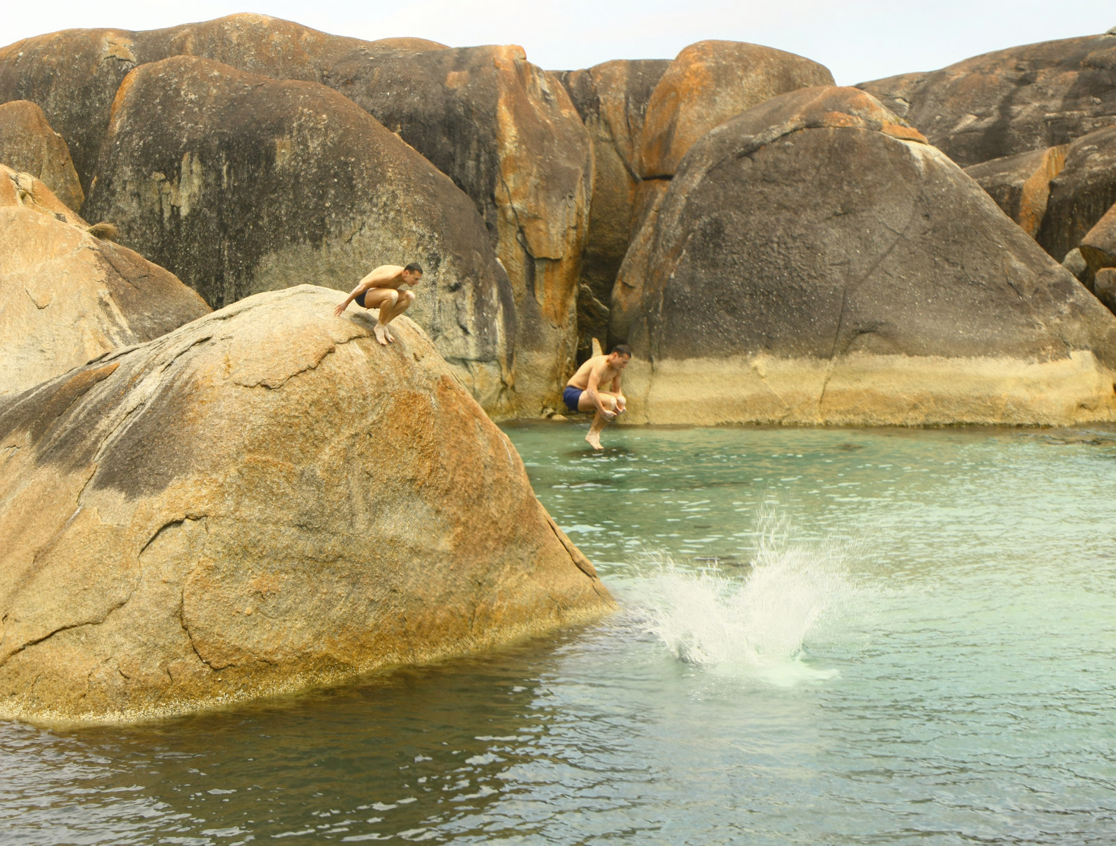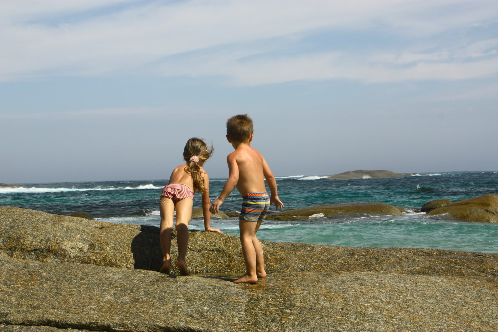 Der Wetterbericht zeigt für heute 33 Grad und Sonne. Daher ist Strandtag angesagt. Wir fahren zur Elephant Cove, hier haben die Felsen die Form von Elefanten. Früh ist es bewölkt aber warm, am Strand ist kaum jemand außer uns. Ich klettere auf einen der Elefanten und springe ins Wasser - kurze Zeit darauf habe ich jede Menge Nachahmer. Gegen 11 Uhr kommt die Sonne raus, Mittag sind wir sicher, dass wir die versprochenen 33 Grad bekommen haben.