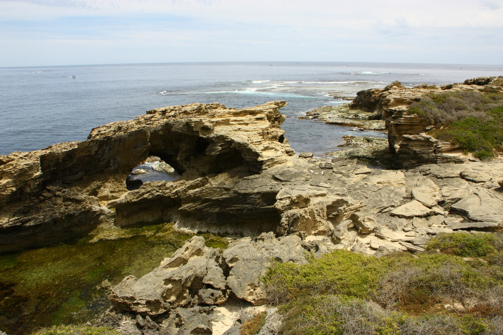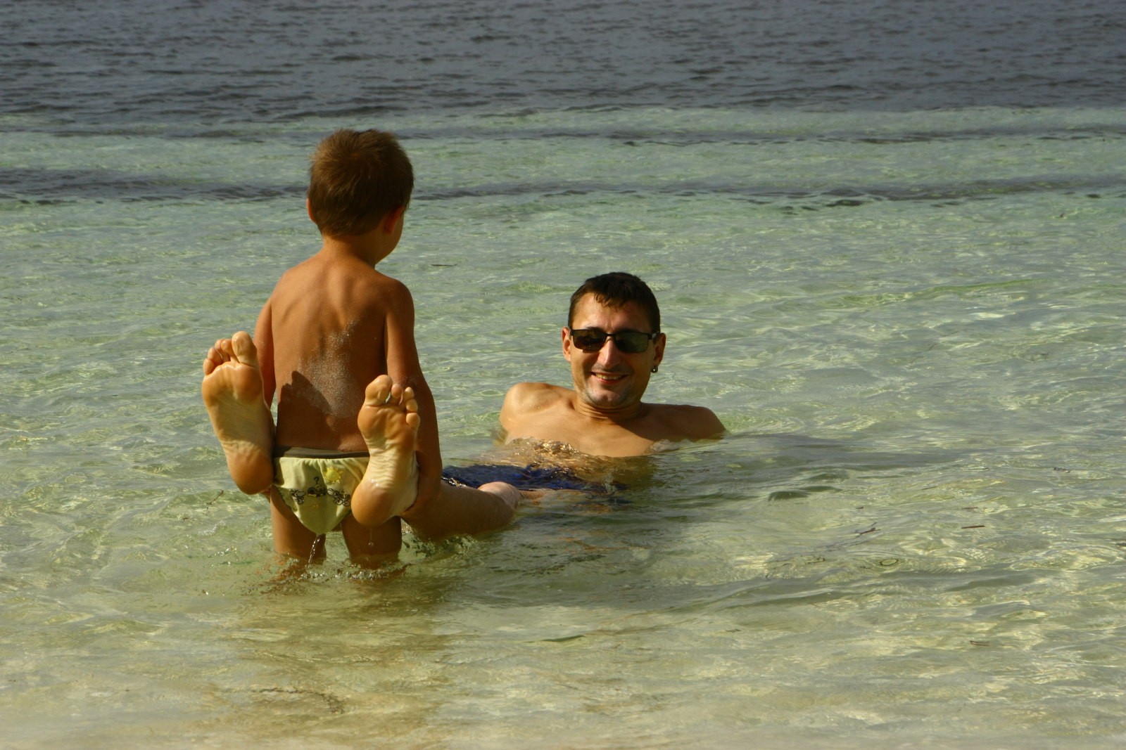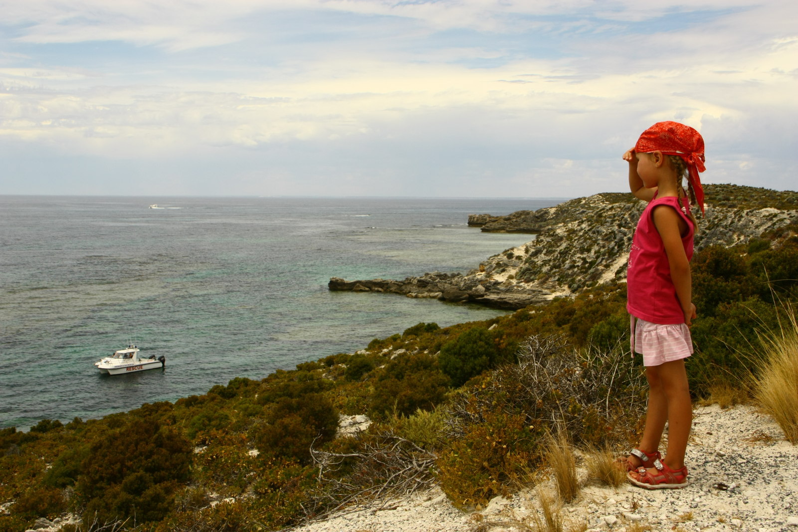 Die Fährfahrt ist angenehm, den Kindern gefällt’s auch. Auf Rottnest Island angekommen lösen wir das Busticket und fahren bis ans hinterste Ende, an den Falcon Beach. Wir haben viel Glück und sehen nicht nur Seehunde, die sich im seichten Wasser und der Brandung treiben lassen, sondern auch noch eine Schule von vielleicht 20 Delfinen, die in Küstennähe entlang schwimmen.