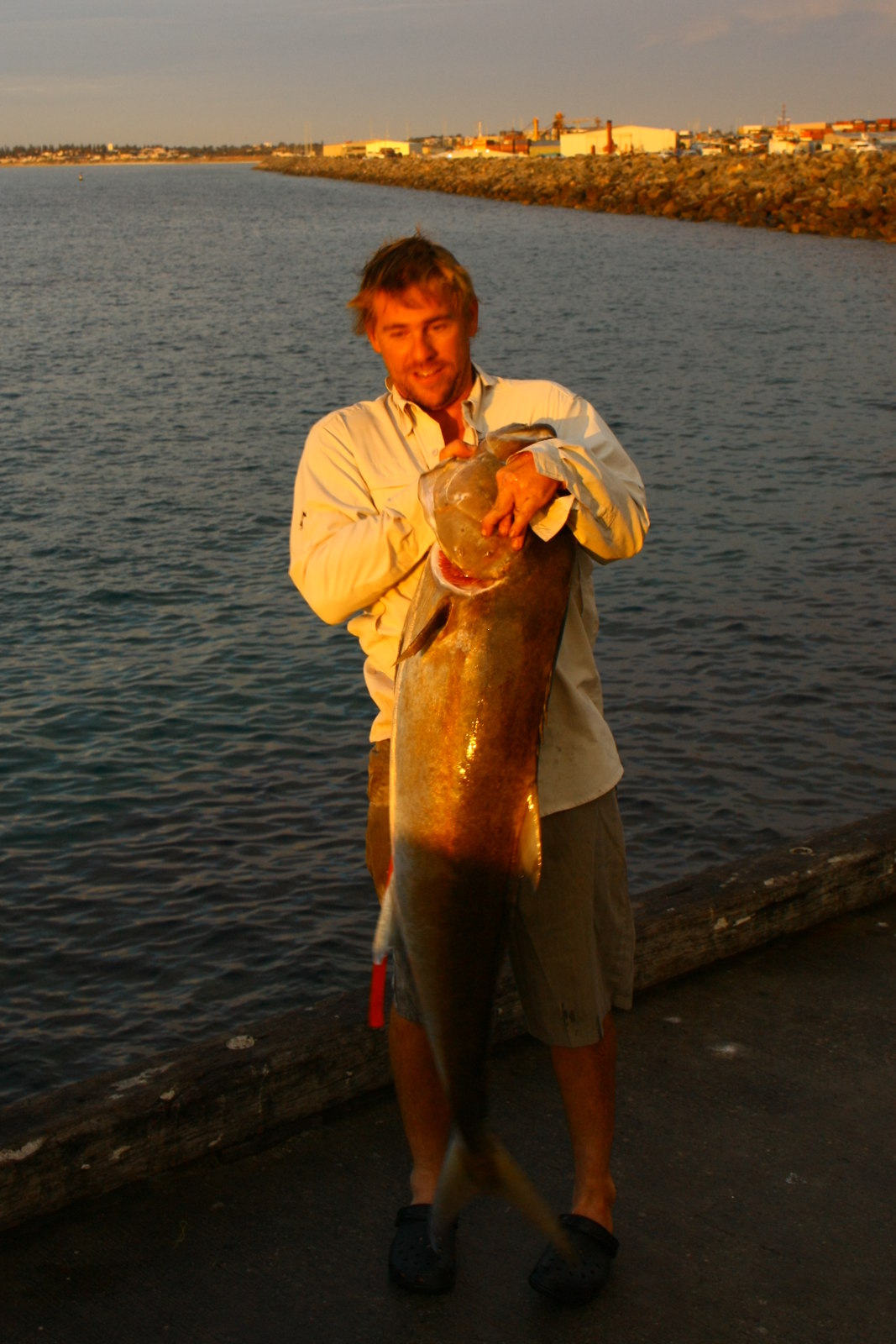Wir fahren zum Abendbrot ans Ende der nahe gelegenen Mole und schauen uns den Sonnenuntergang an. Nebenan holen Angler gerade einen beinahe mannshohen Fisch aus dem Wasser. Nach dem Abendbrot fahren wir noch ein Stück aus Perth heraus auf einen Parkplatz direkt am Meer. Dort gehe ich zum Abschluss des Tages noch eine Runde schwimmen (etwas unheimlich im Dunkeln).