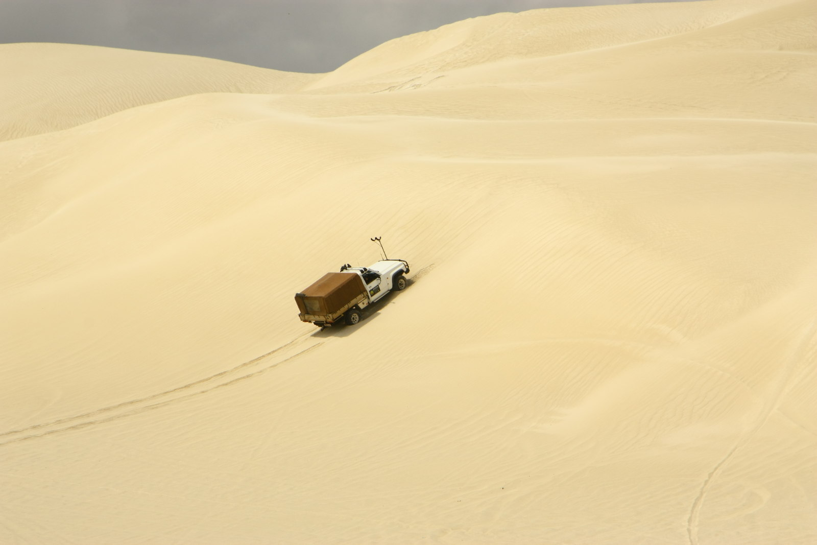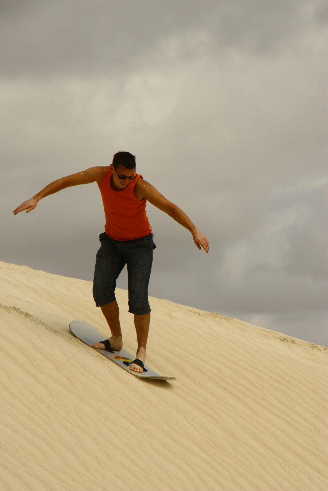 Einige japanische Touristen haben ein Sandboard dabei und benutzen es als Schlitten. Ich leihe es mir aus und versuche, die Dünen herunter zu fahren. Mit etwas Übung könnte das richtig Spaß machen.