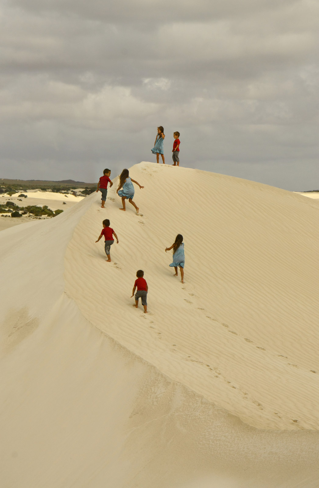 Für heute Vormittag ist Regen angesagt - die Temperaturen fallen auf arktische 22°C, es ist trüb und nass. Wir fahren nach Lancelin, wo es große weiße Sanddünen geben soll, suchen einen netten Park mit Spielplatz und sitzen das schlechte Wetter aus. Die Kinder spielen draußen (wenn es gerade nicht regnet), wir lesen und sortieren Fotos durch.