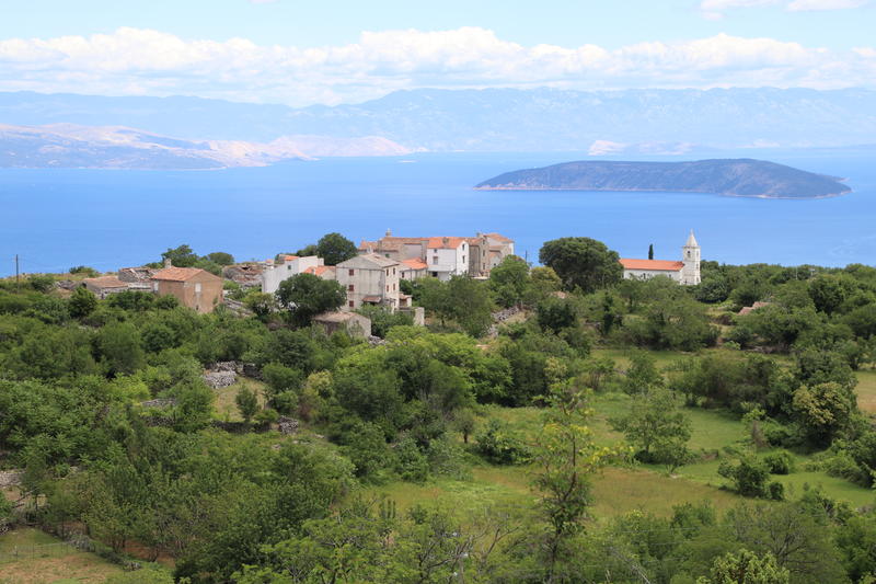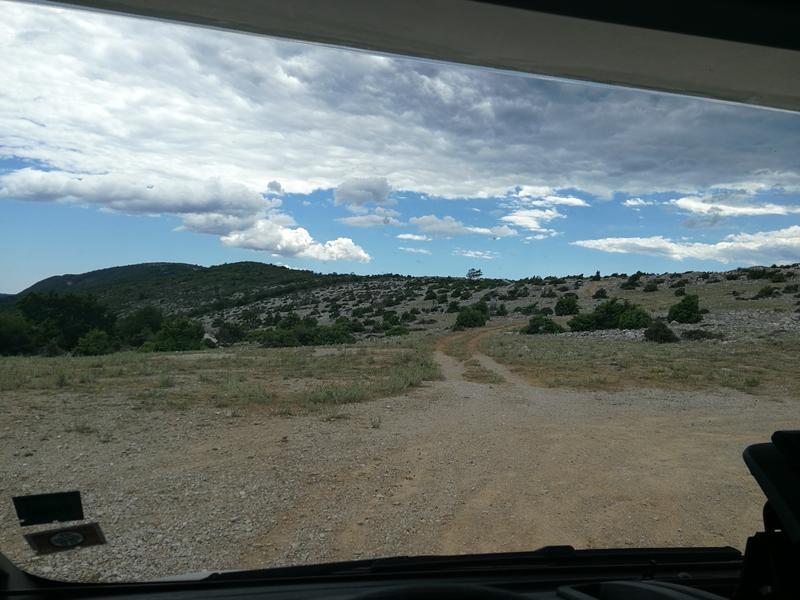 Wir ergattern einen der letzten Plätze auf dem Schiff und setzen zur Insel Cres über. Dort erreichen wir auf der Serpentinenstraße schnell wieder über 400 Meter Höhe, wo wir auf einem Plateau Mittagspause machen. Hier gibt es nur Felsen, einige zarte Blümchen und jede Menge Insekten.