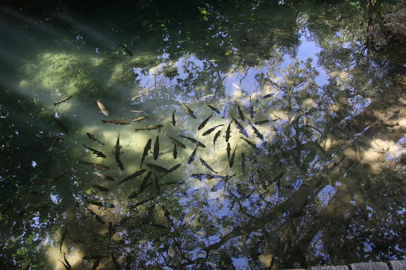 Wir folgen dem Rundweg bis ans untere Ende der Wasserfälle. Hier fließt der Fluss wieder gemächlich vor sich hin. Das Besondere an diesem Nationalpark ist, dass man hier auch baden darf.