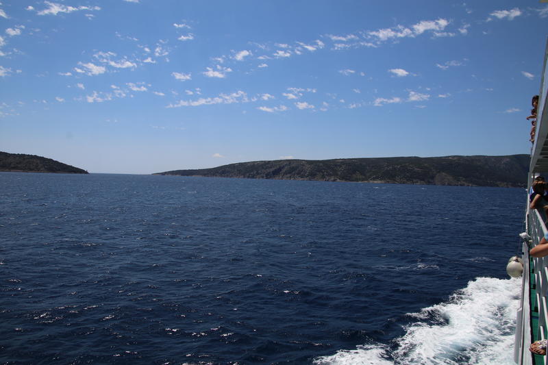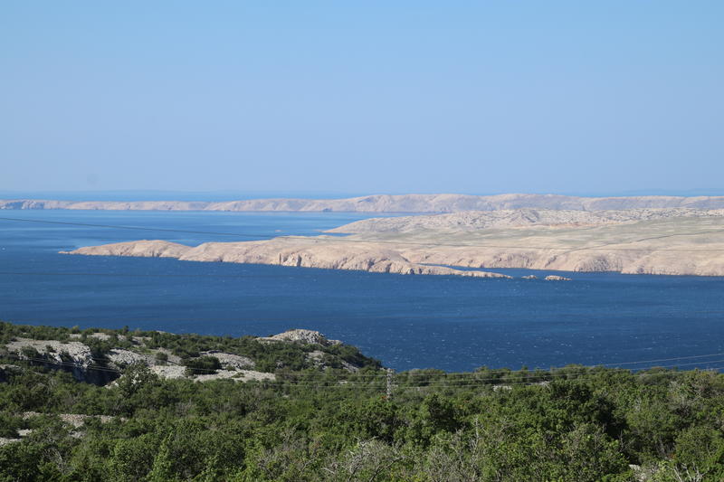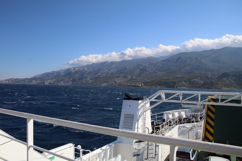 Laut Karte ist er gerade mal 20km entfernt - Luftlinie, direkt über das Meer. Leider gibt es keine Fähre von Pag nach Cres. Die einzige sinnvolle Strecke führt uns über das Festland nach Krk und dann mit der Fähre nach Cres - eine Strecke von fast 250km (einschließlich Fähren-Strecken).