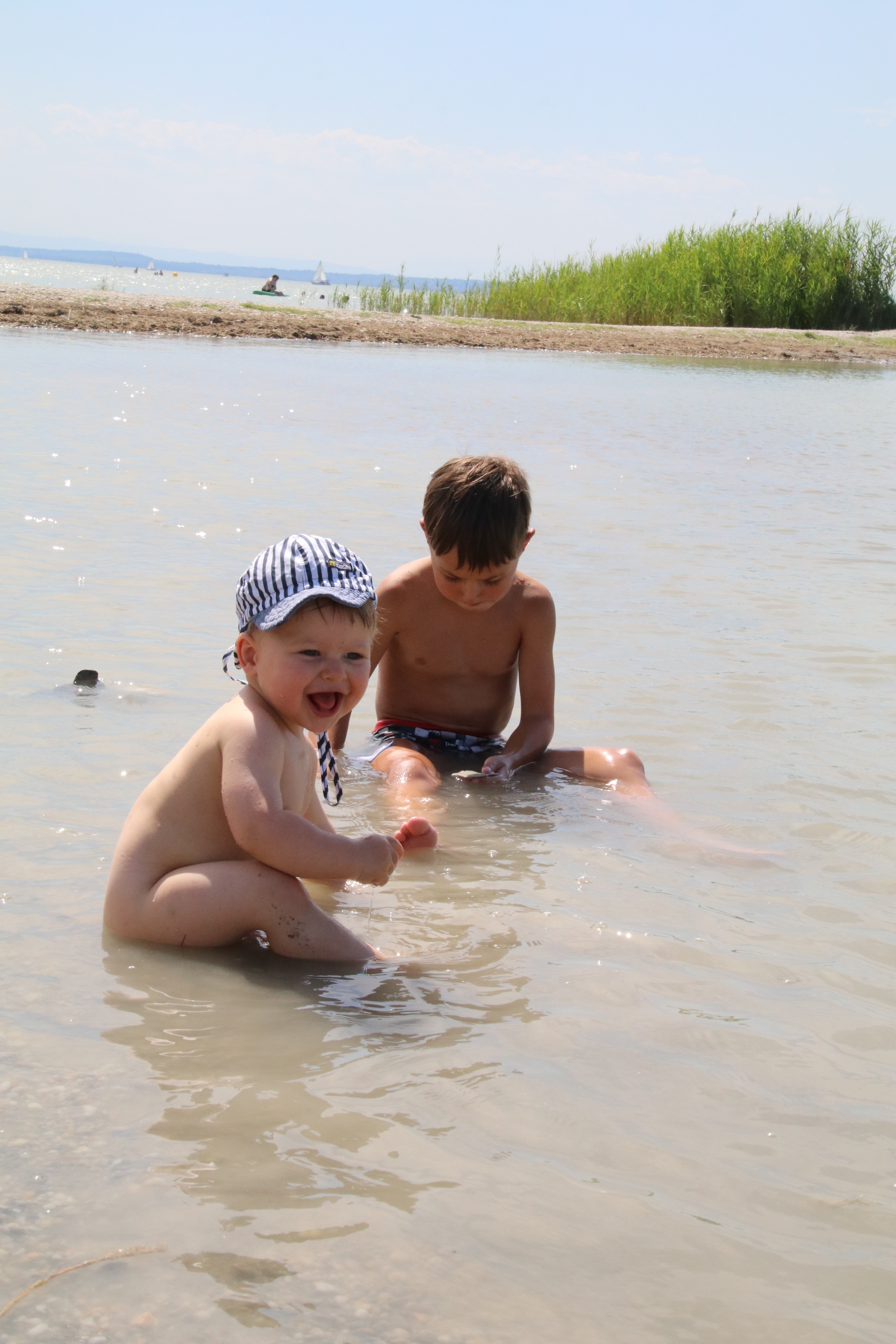 Der Neusiedler See ist ebenfalls ein Salzsee, die mittlere Tiefe beträgt etwa 1,5m. Aufgrund des tollen Sommerwetters hat das Wasser Badewannentemperatur.