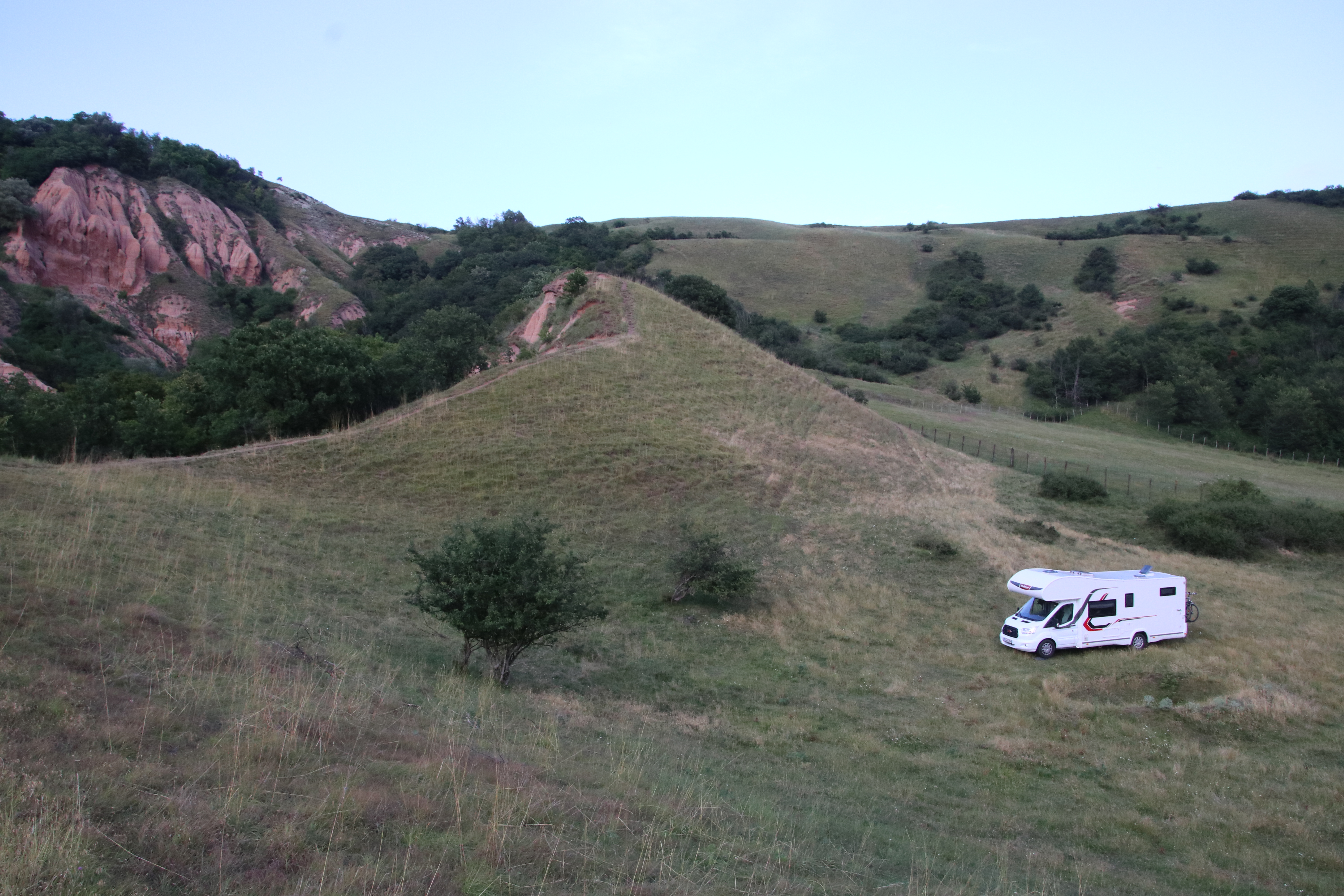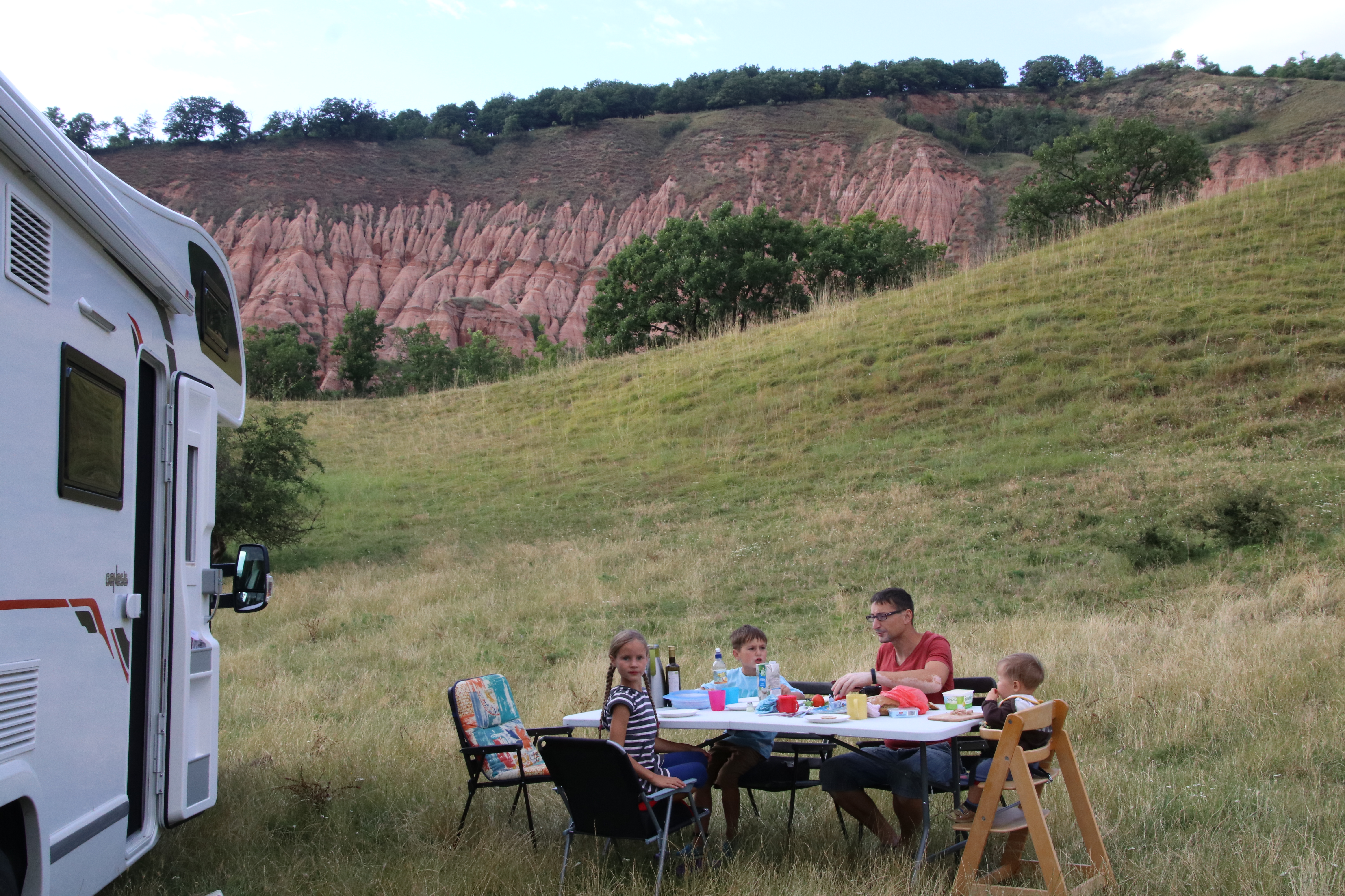 Am Wohnmobil zurück gibt es noch ein kleines Kaffetrinken, dann starten wir zu unserer heutigen, recht kurzen Strecke. Schnell kommen wir in die Nähe der ersten Ausläufer der Karpaten. An diesen entlang führt uns die Straße zu einer ganz besonderen Felsformation, die wir uns morgen näher anschauen wollen.