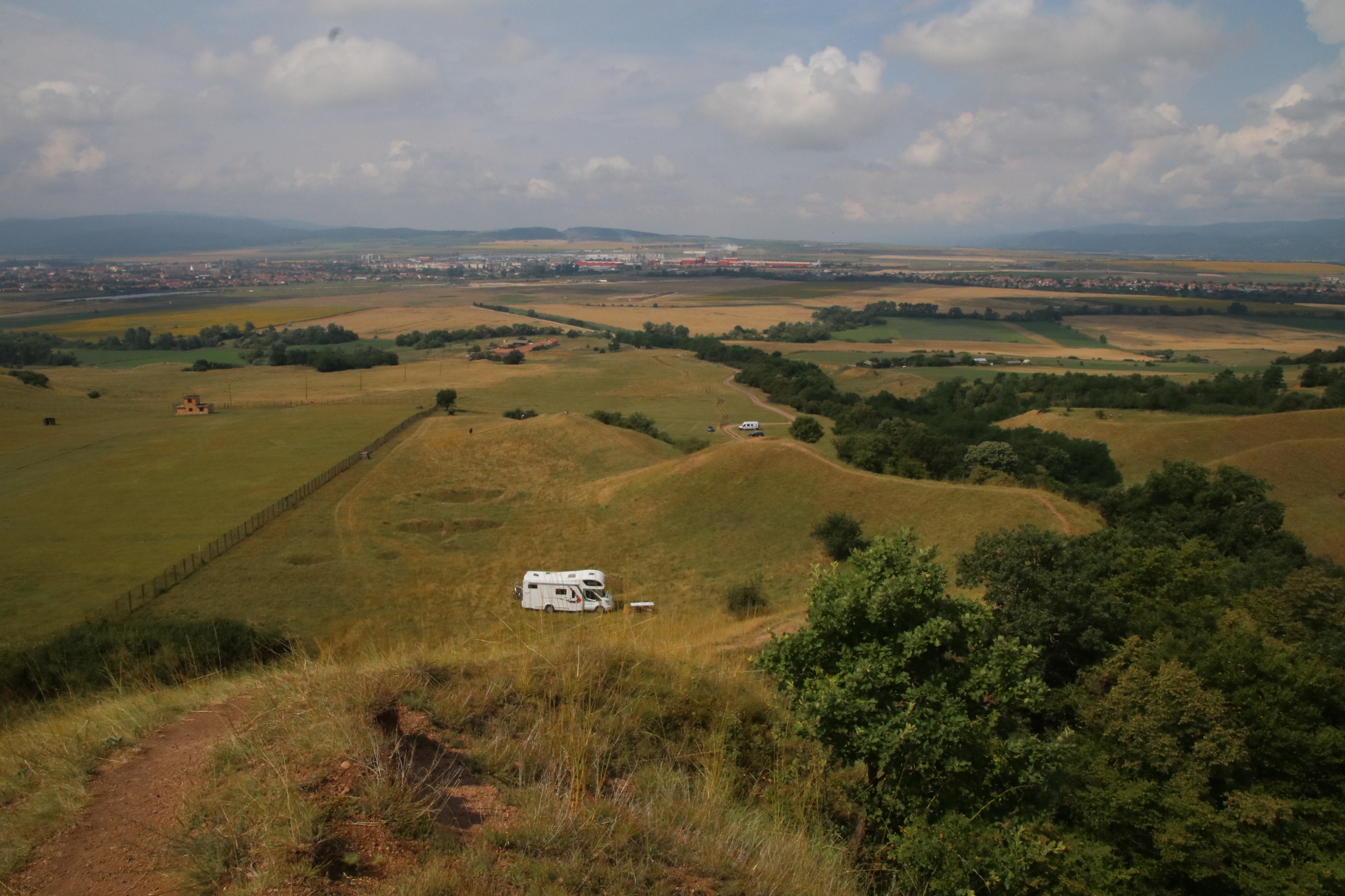Als wir oben angekommen sind, hören wir es in der Ferne grummeln: über den Bergen am Horizont braut sich ein Gewitter zusammen. Wir machen uns zügig an den Abstieg, als wir zurück am Wohnmobil sind, sehen wir die ersten Blitze. Ich will alles einpacken, aber Anke bleibt optimistisch und plant das Mittagessen im Freien.