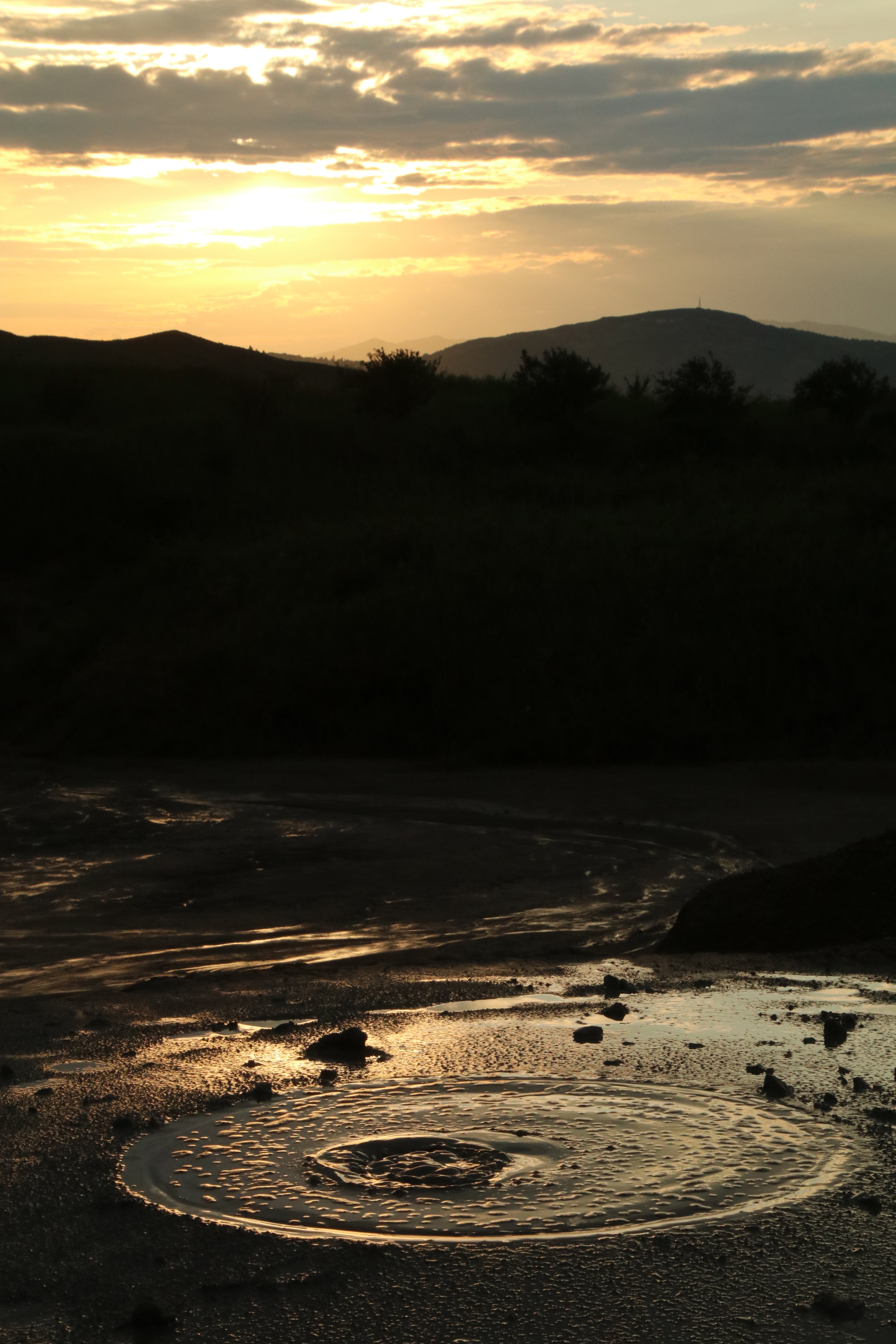 Ich laufe den Weg hoch zu den Schlammvulkanen. Oben angekommen stelle ich fest, dass die Kasse noch offen ist und ich kein Geld dabei habe. Ich überrede den Kassierer, mich trotzdem ein paar Aufnahmen machen zu lassen.