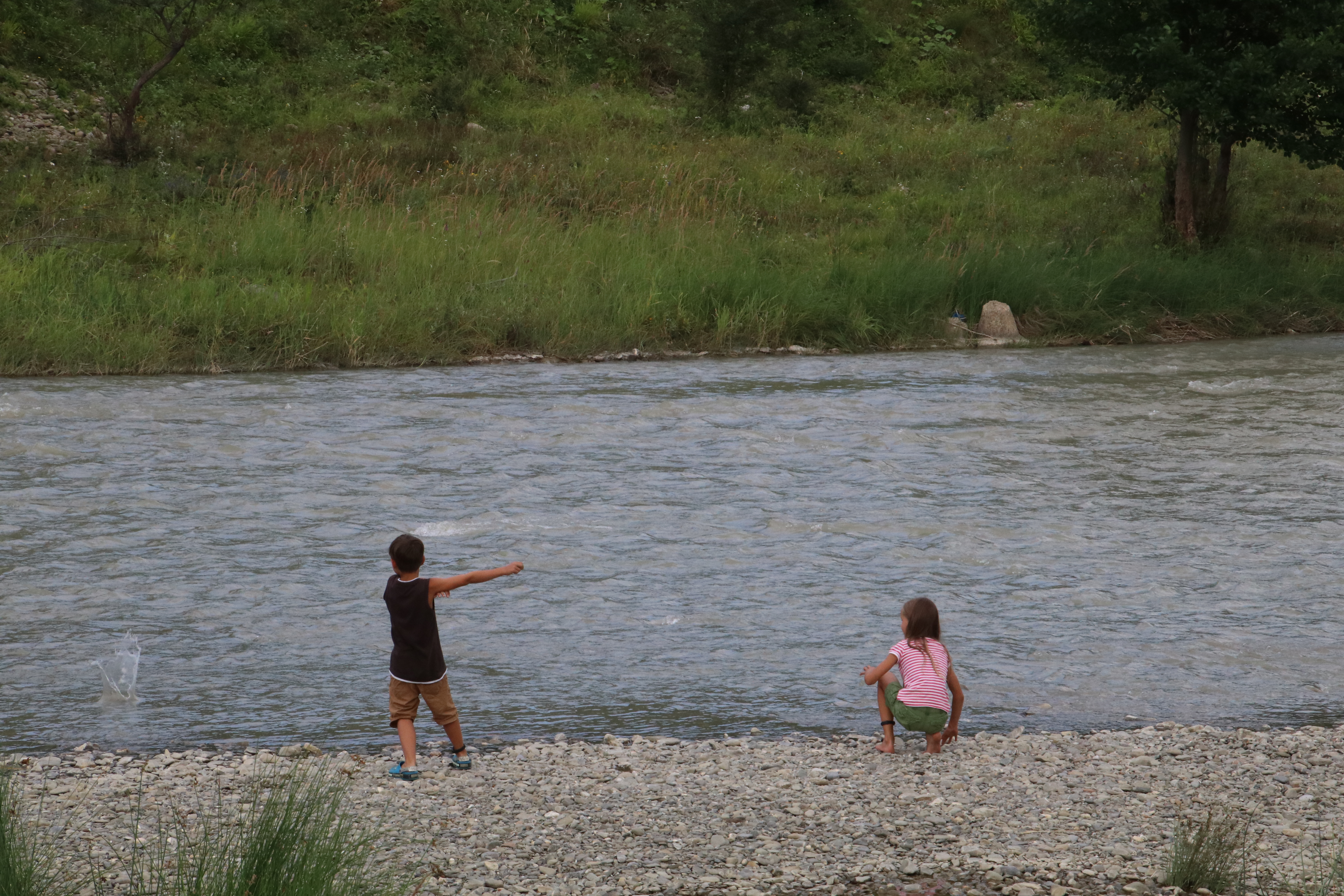 Am Stausee ist die Temperatur von über 30 auf 23 Grad gefallen und die Sonne hat sich hinter ein paar Wolken verzogen. Es gibt eine große Badewiese aber nirgends mehr freie Parkplätze. Wir fahren bis in den nächsten Ort zum Einkaufen und suchen uns einen Stellplatz am Fluss unterhalb der Staumauer, den wir auf der Herfahrt schon gesehen haben. Unterwegs erstehen wir für etwa 5€ noch ein Kilo Steinpilze bei einem Verkäufer am Straßenrand.