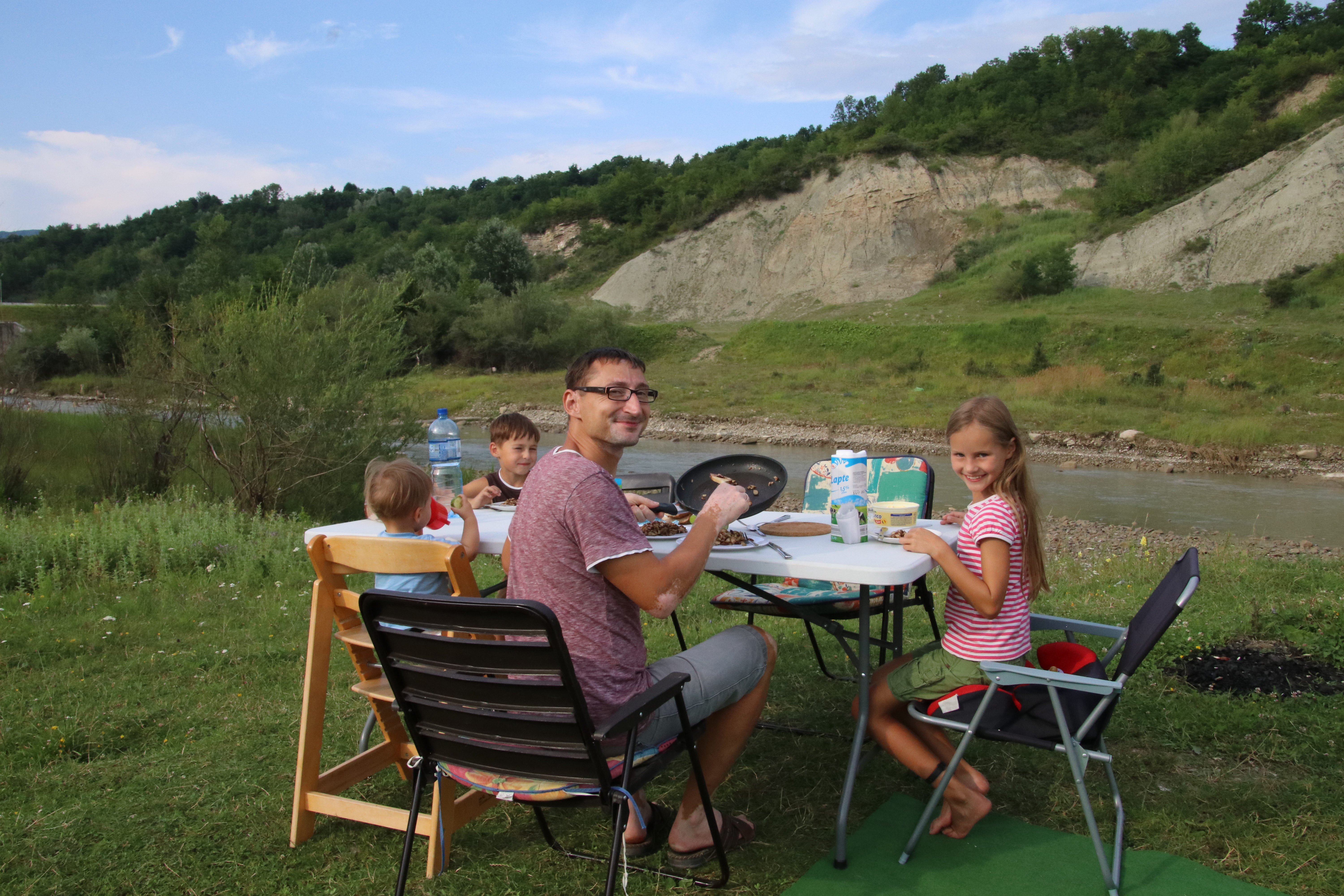Beim Abstieg schläft Mattis tief und fest. Wir machen das Wohnmobil in Ruhe startklar und fahren in Richtung Paltinu-Stausee. Das ist einer der wenigen Seen auf unserer aktuellen Strecke, an denen man baden kann. Zum Mittag halten wir an einer Landstraßen-Raststätte, wo wir überraschend gut und günstig essen.