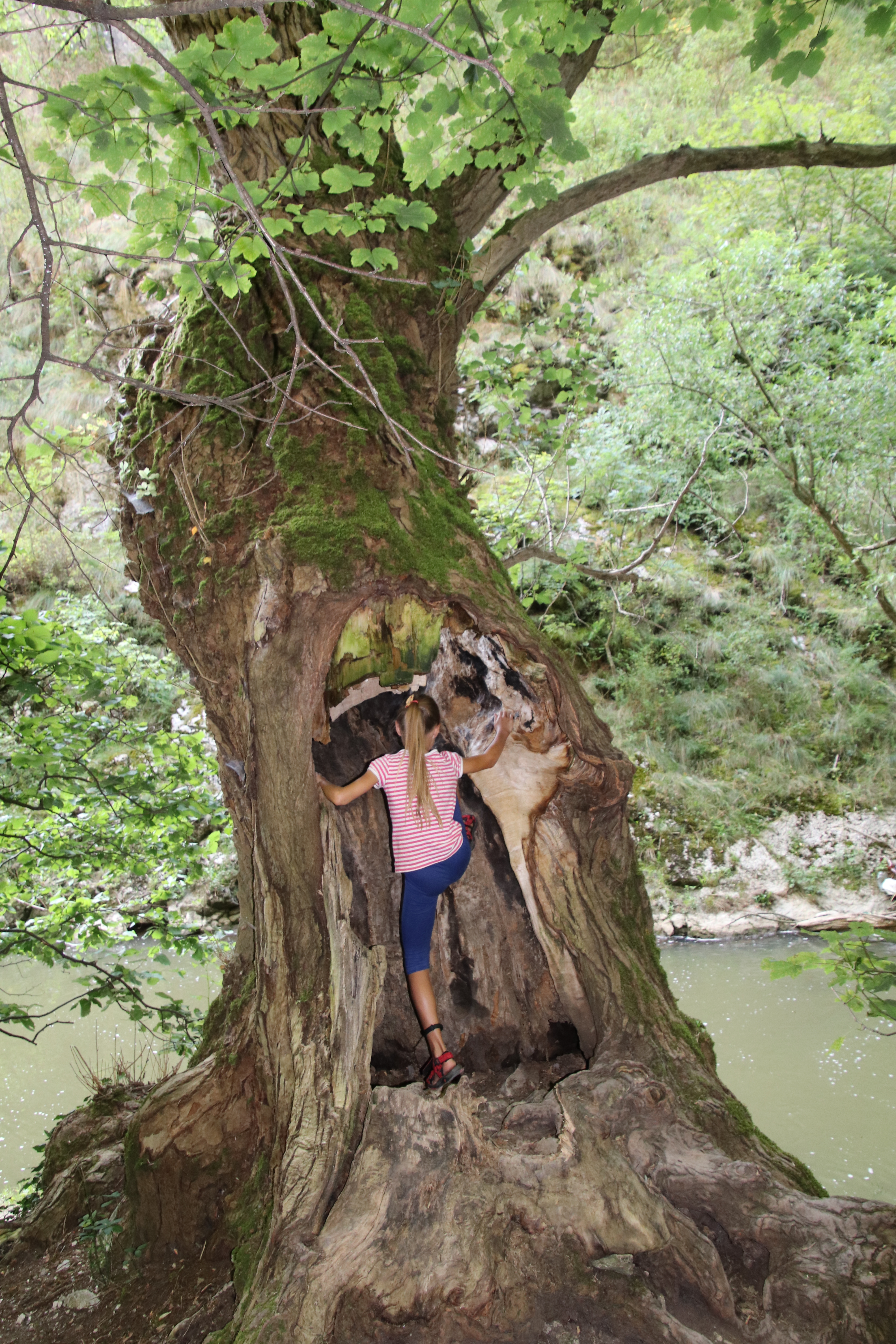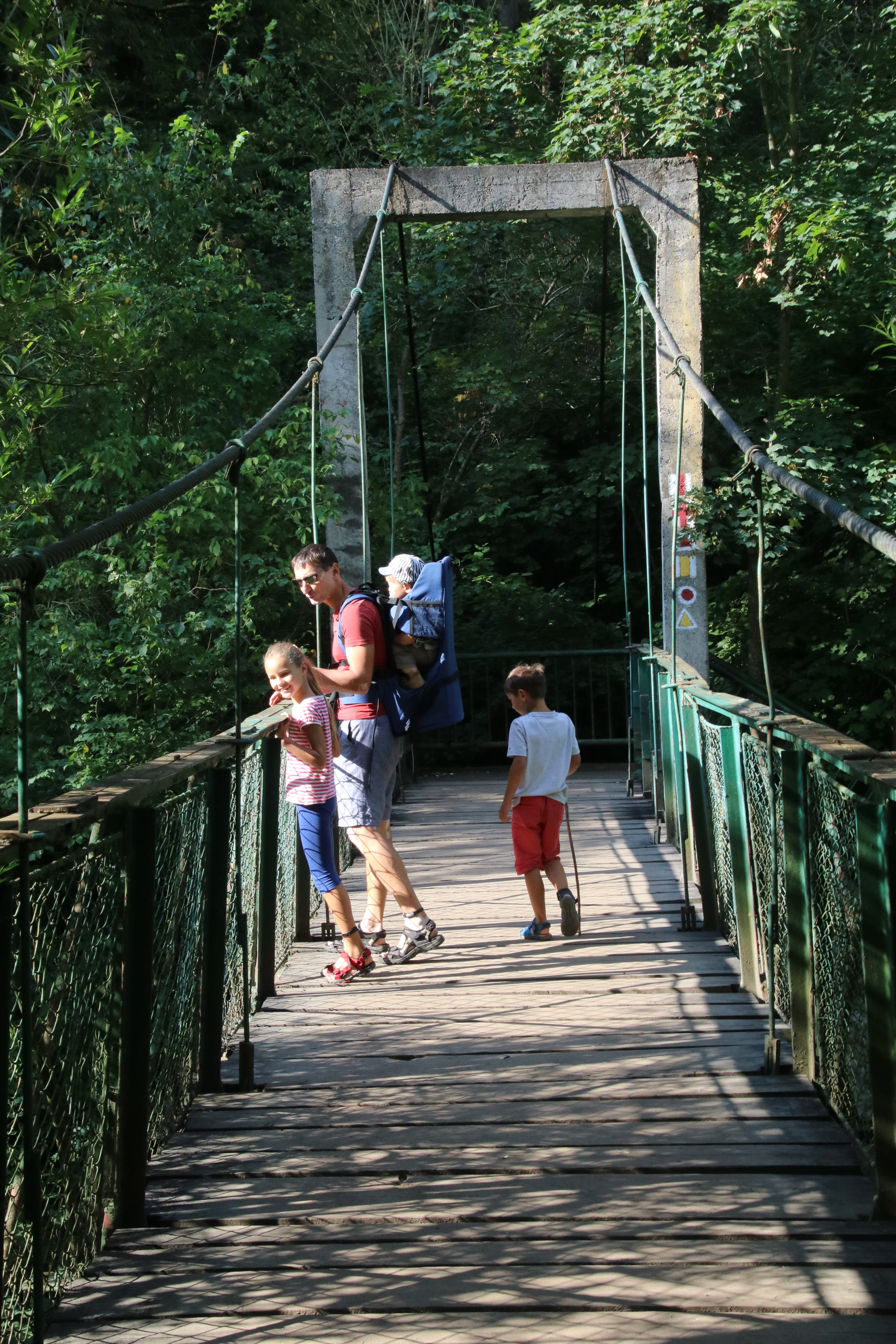 Als wir den Fotostopp machen, entdecken die Kinder gleich eine Abkürzung ins Tal und überreden mich, diese zu nehmen.