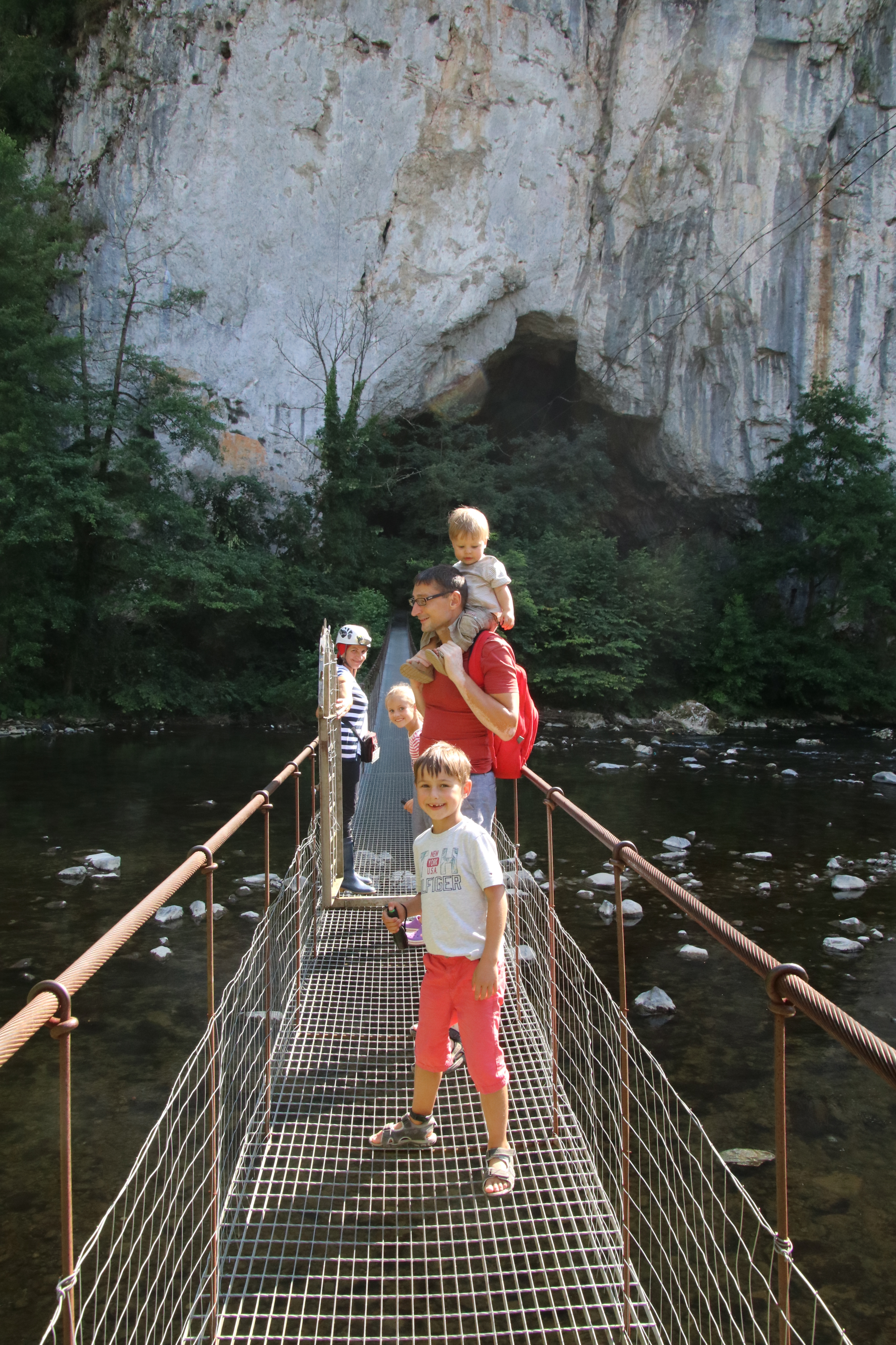 Vom Campingplatz aus führt eine Hängebrücke direkt zur Höhle.