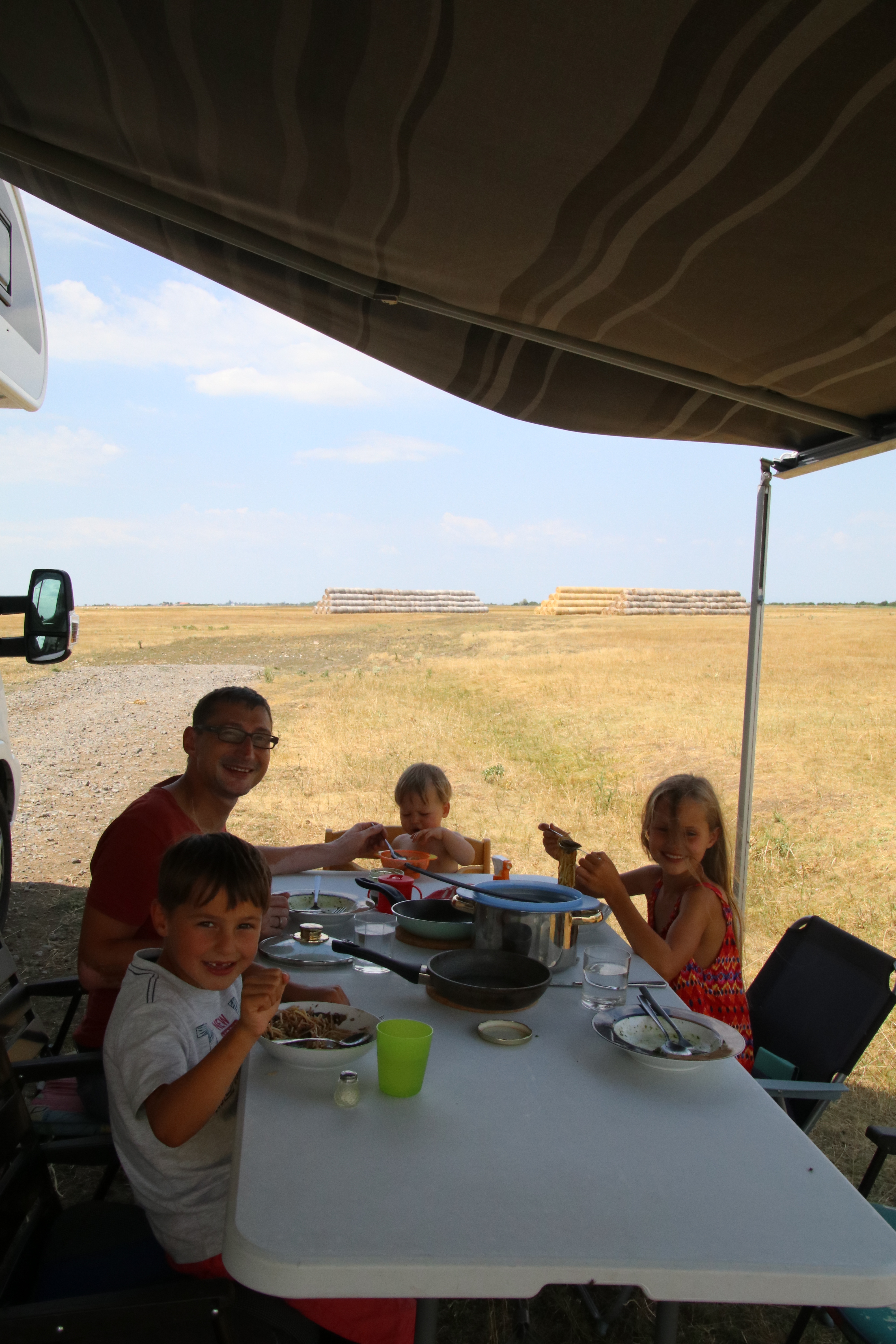 Am Abend finden wir noch einen Stellplatz auf einem kleinen privaten Campingplatz. Die Wirtin begrüßt uns persönlich mit einem Drink. Heute grillen wir zum ersten Mal in diesem Urlaub. Die Kinder gehen zeitig (nach “neuer” Zeit) ins Bett. Uns dient der Grill später noch als Feuerschale.