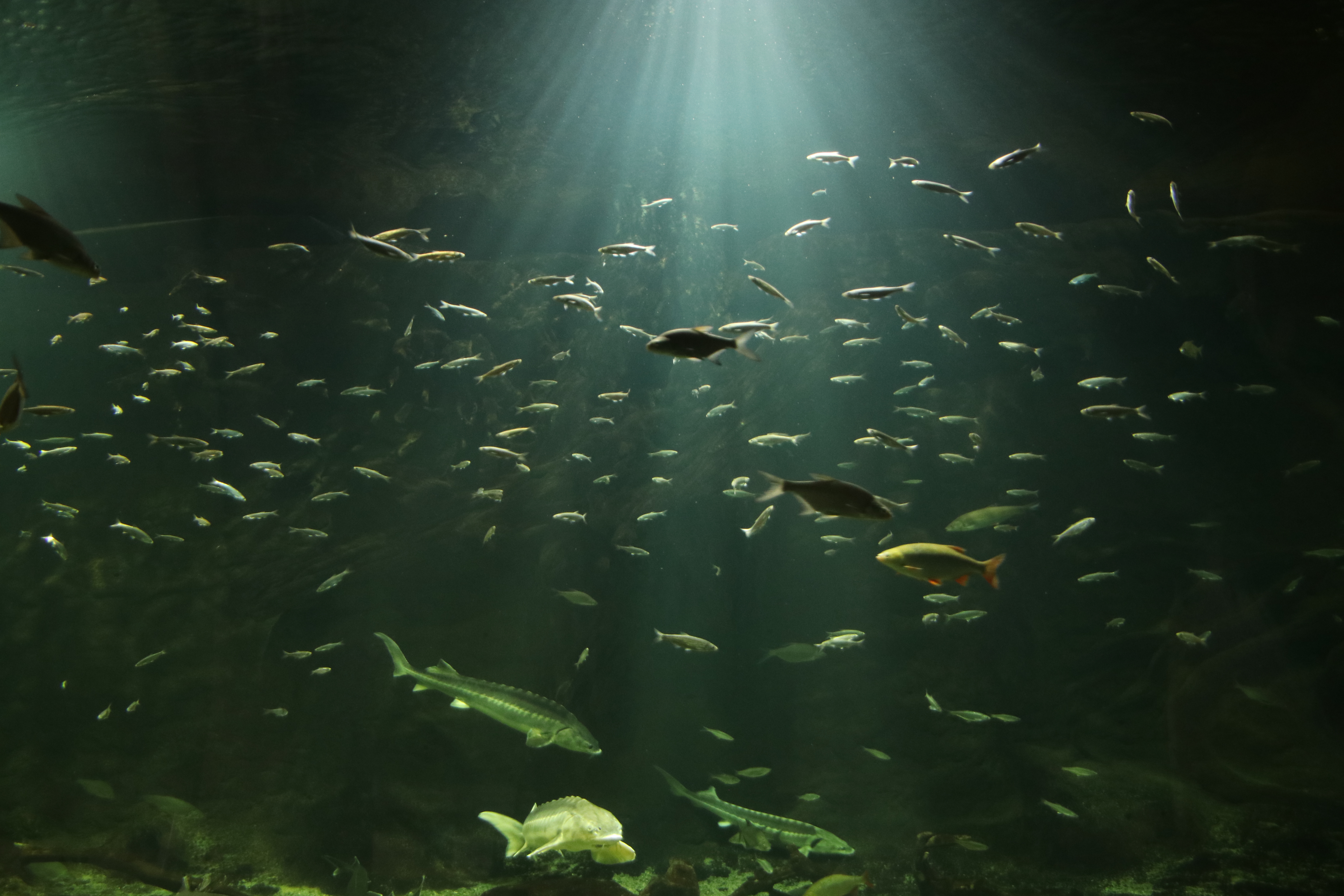 Heute morgen wollen wir zum Nachbarort, der auch am Theiß-See liegt. Hier gibt es ein großes Ökozentrum mit Informationen zur Ungarischen Tierwelt und einem großen Süßwasseraquarium. Der Ort liegt nur wenige Kilometer entfernt auf der anderen Seite des Sees und ist über eine Brücke erreichbar. Leider hat es am anderen Ende der Brücke einen Unfall gegeben, so dass wir in Schrittgeschwindigkeit hinüber fahren und über eine halbe Stunde brauchen.