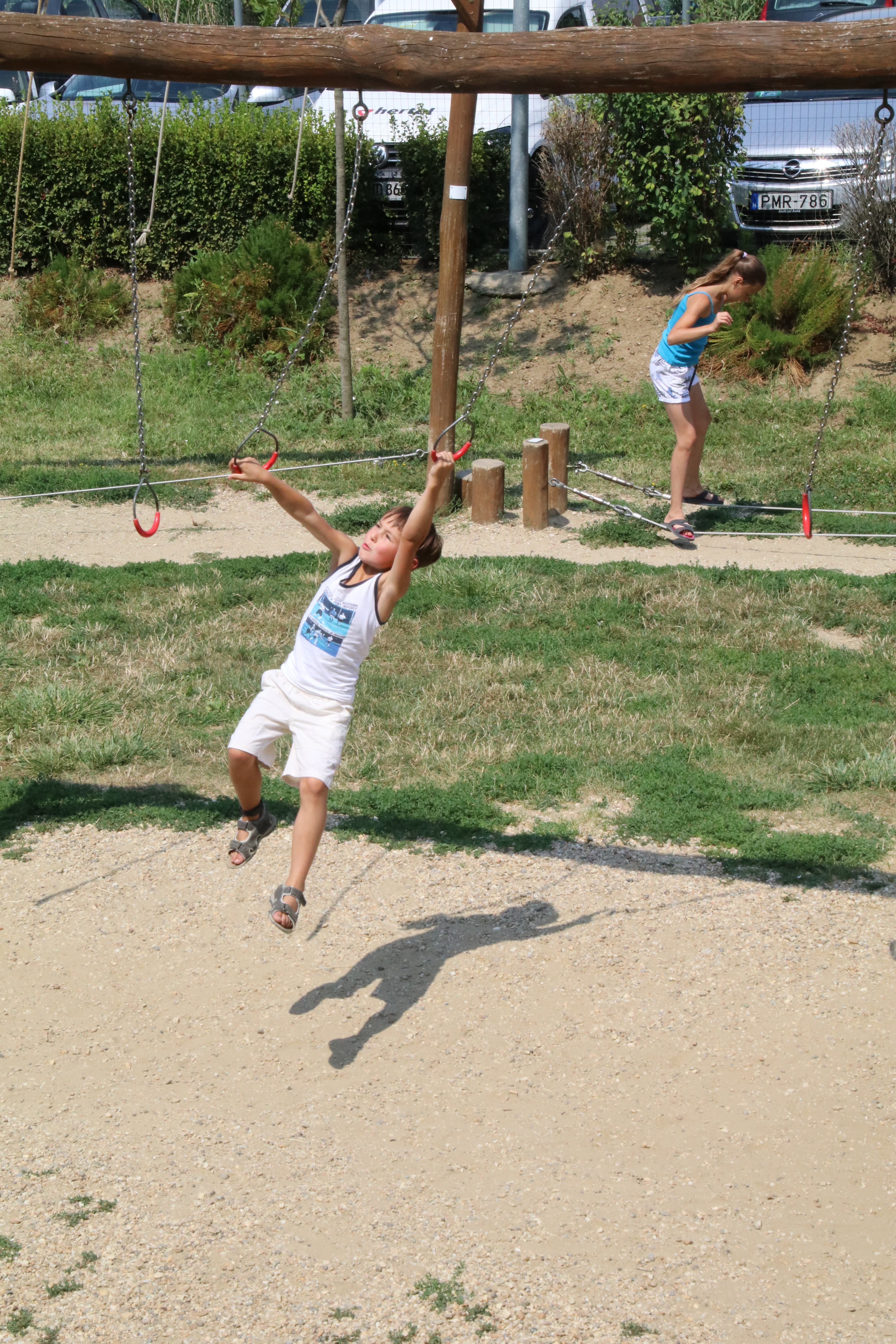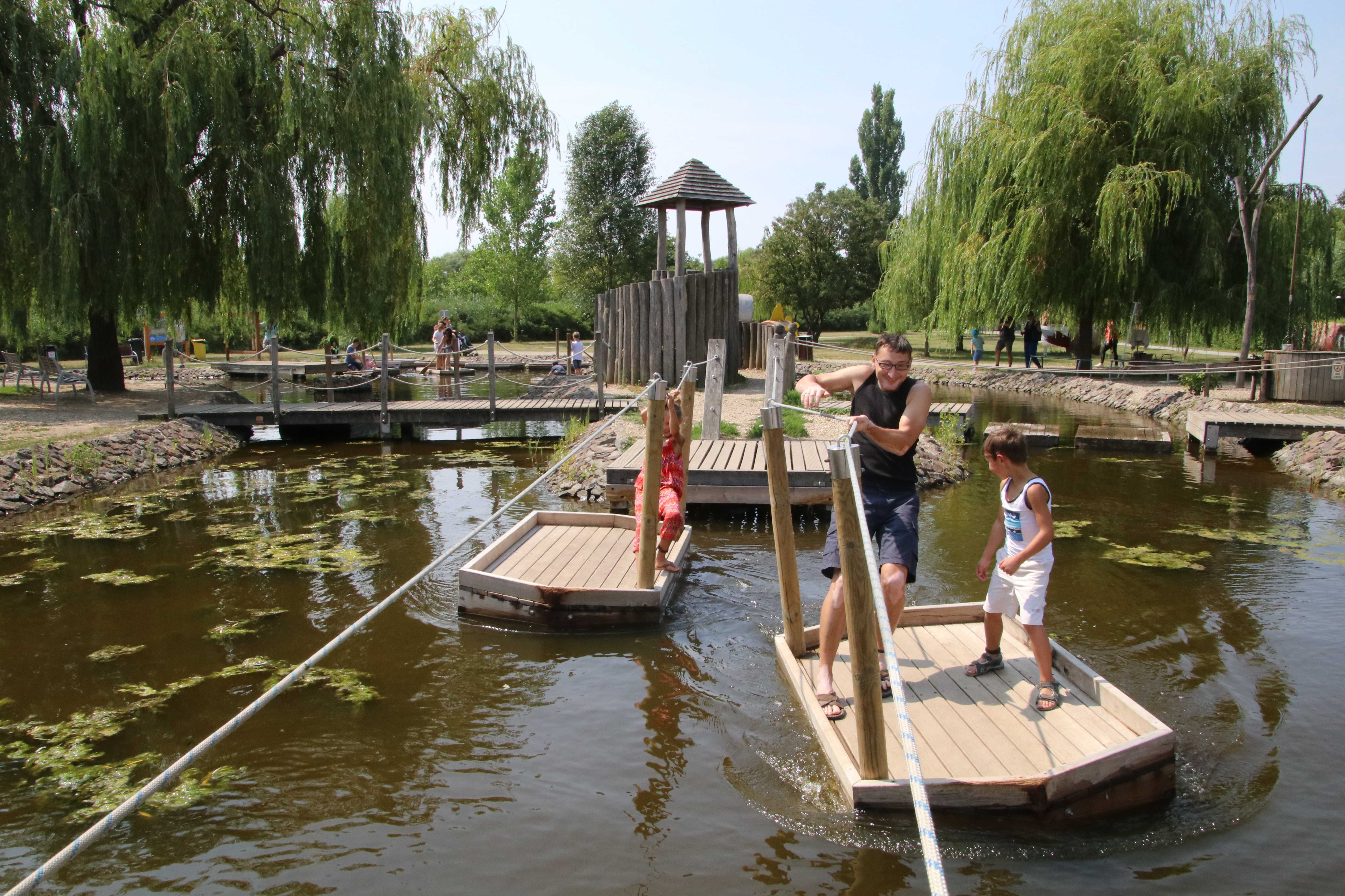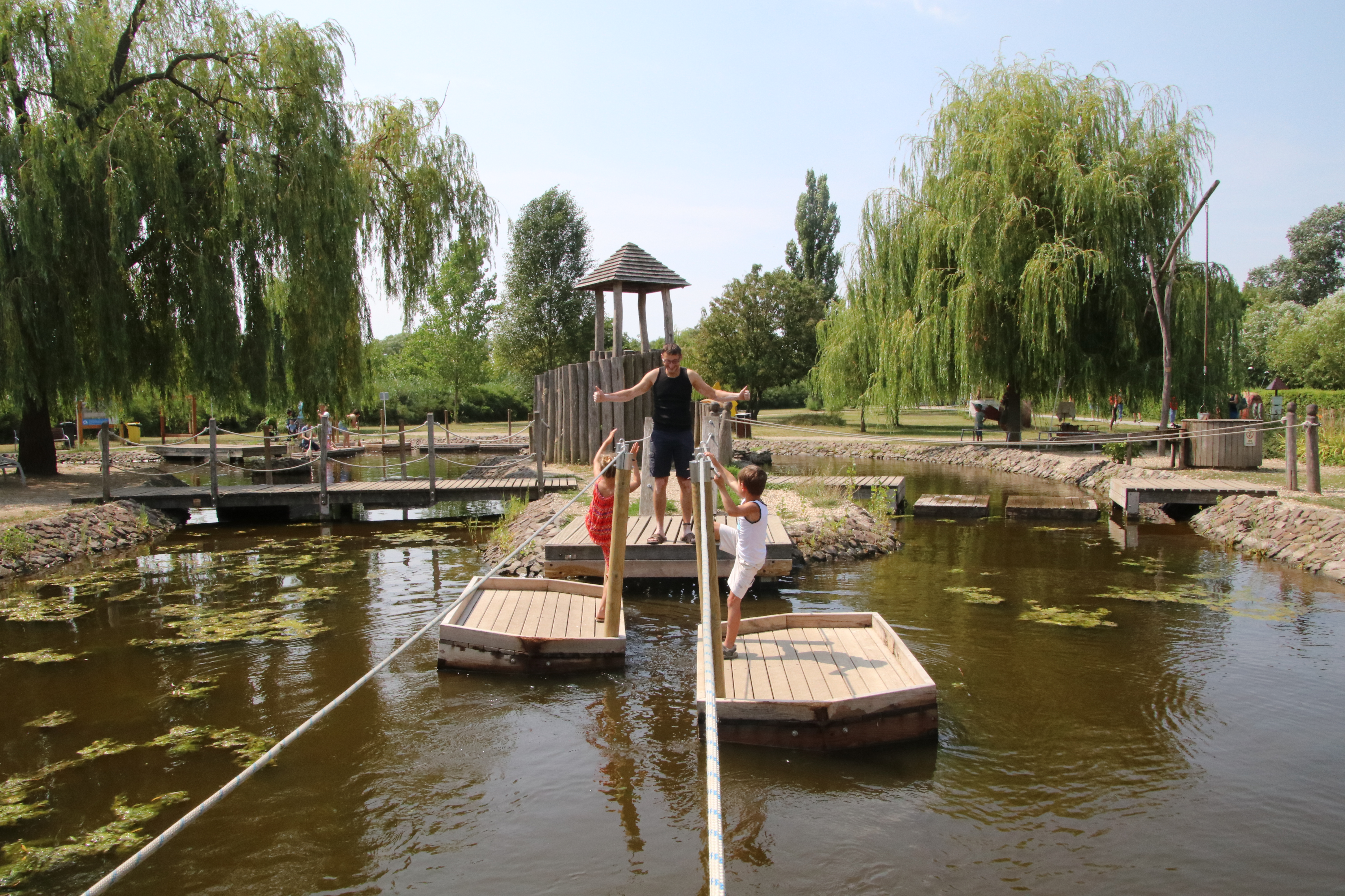 Nachdem wir das Aquarium besichtigt haben, geht es hinaus in das Außengelände. Hier gibt es viele tolle Abenteuerspielplätze und auch ein Labyrinth mit einem Gewinnspiel. Annabell und Felix toben sich aus, Mattis hält sein Vormittagsschläfchen.
