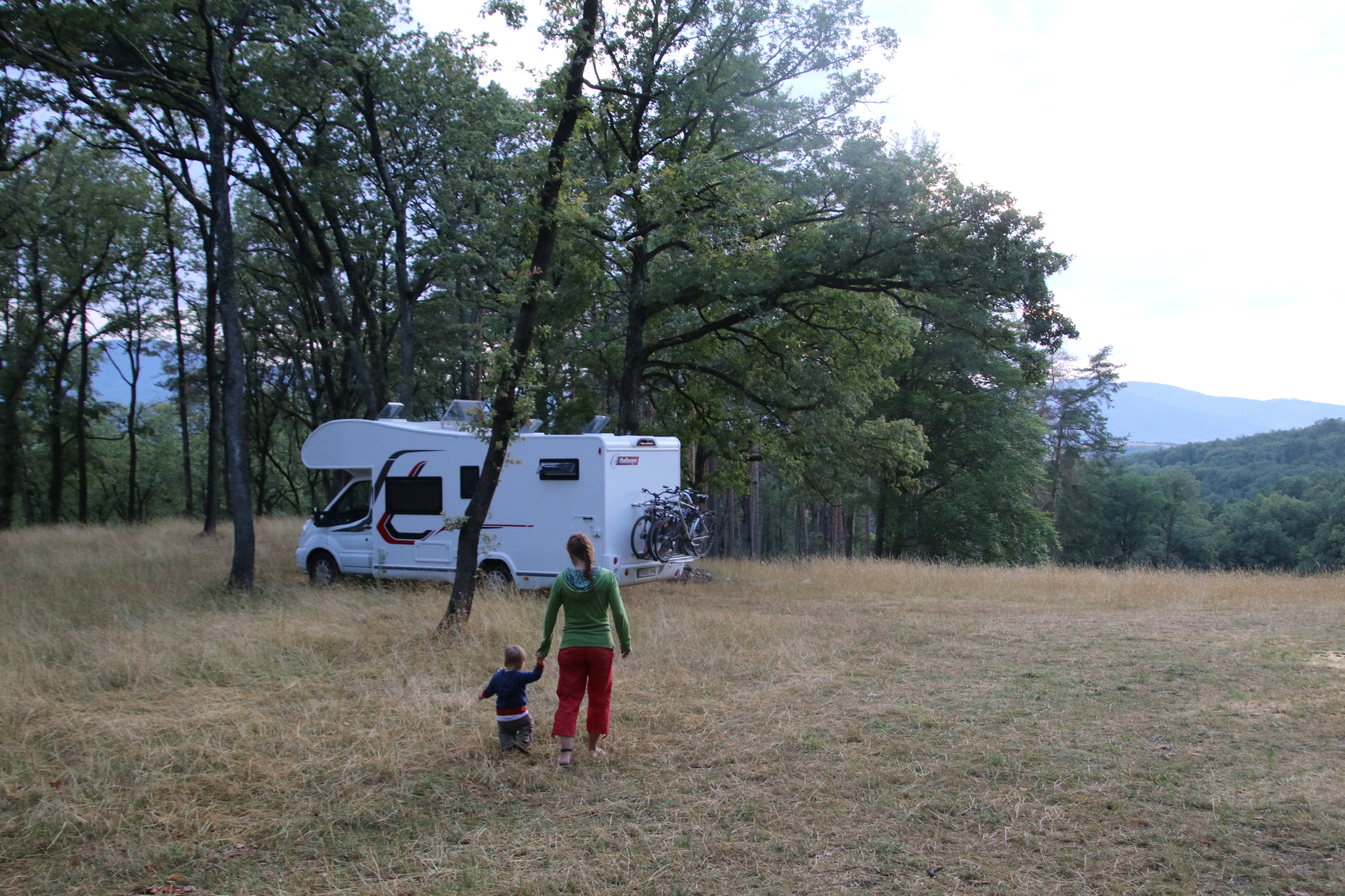 Eigentlich wollen wir nur eine reichliche Stunde bis in ein kleines Gebirge in der Nähe fahren und dort übernachten. Am Zielort gibt es ein Pferdegestüt und eine schöne Waldeisenbahn. Leider hängt in den Bergen der Regen fest und es ist auch keine Besserung in Sicht. Kurzerhand beschließen wir, einen Teil der langen Strecke, die für morgen geplant ist, gleich heute noch zu fahren. So durchqueren wir den Rest von Ungarn, fahren noch ein ganzes Stück durch die Slowakei und erreichen schließlich pünktlich zum Abendbrot das für morgen geplante Zwischenziel.