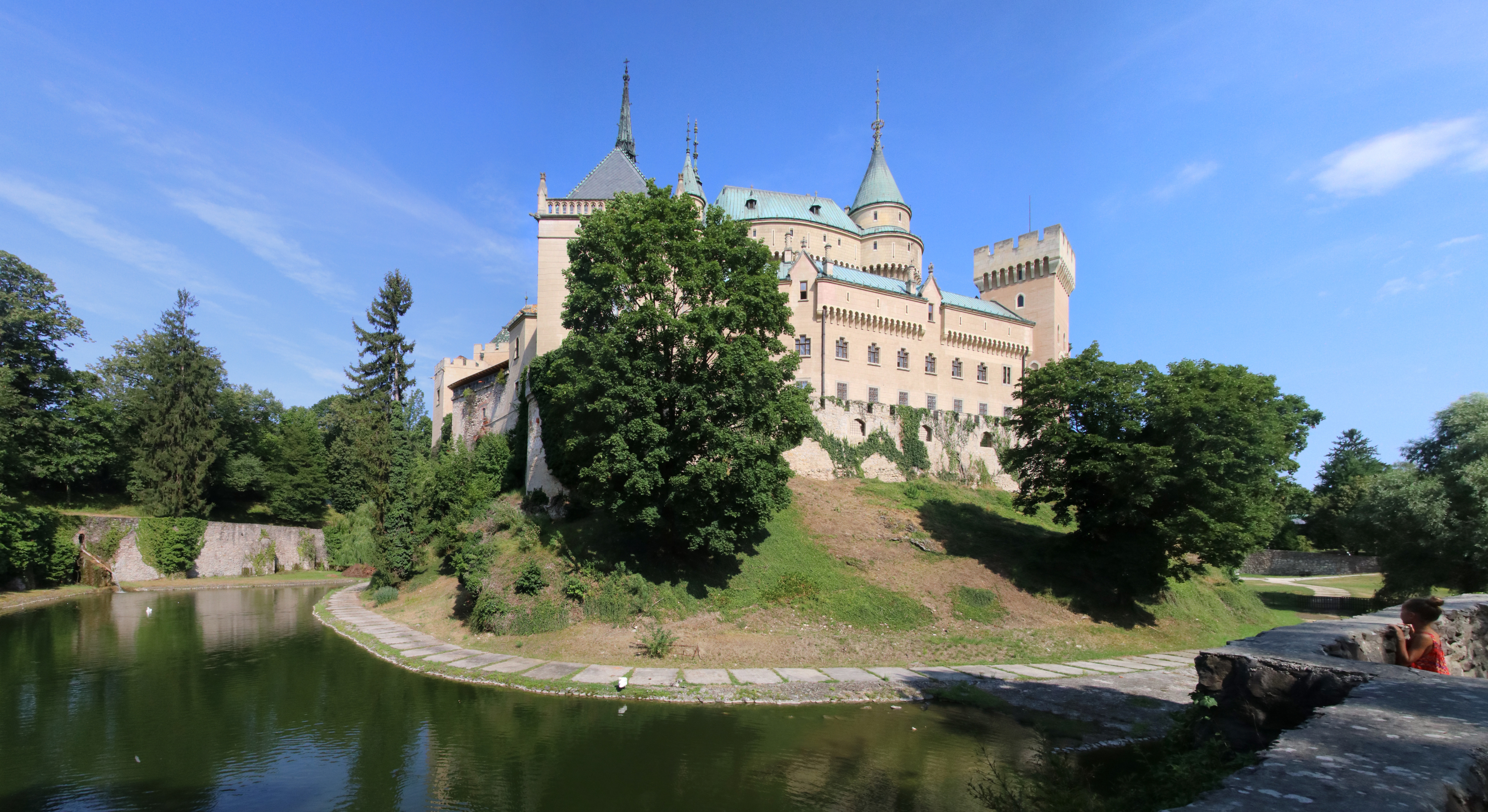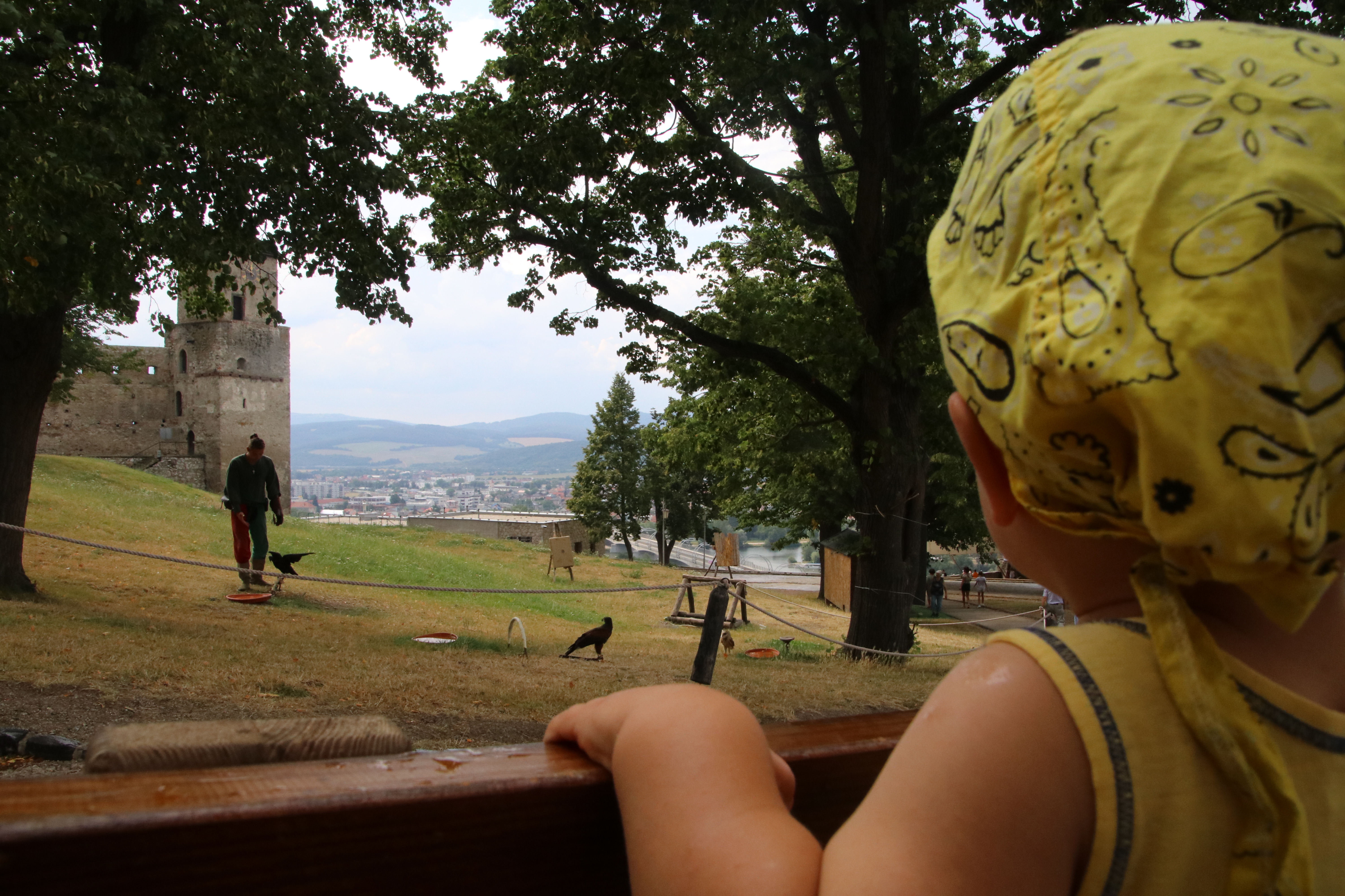 Ein kurzer Fußweg bringt uns zum Schloss, welches wirklich toll aussieht. Wir laufen eine Runde drum herum und schauen uns noch den Schlosspark mit kleinem Teich an. Dann nutzen wir Mattis’ Vormittagsschlaf, um bis nach Trenčín zu fahren. Dort kochen und essen wir Mittag (mediterranen Hühnchentopf), dann geht es zum Schloss hinauf.