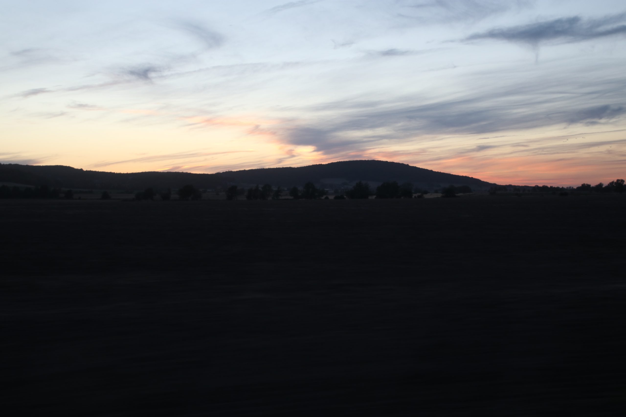 Da wir die Autobahn verlassen haben, durchqueren wir viele malerische Dörfchen mit schönen alten Häusern und sehen einige Schlossruinen auf den umliegenden Hügeln. Das Umland wird bergiger und die Temperaturen fallen von heißen 33 auf kühle 14 Grad.