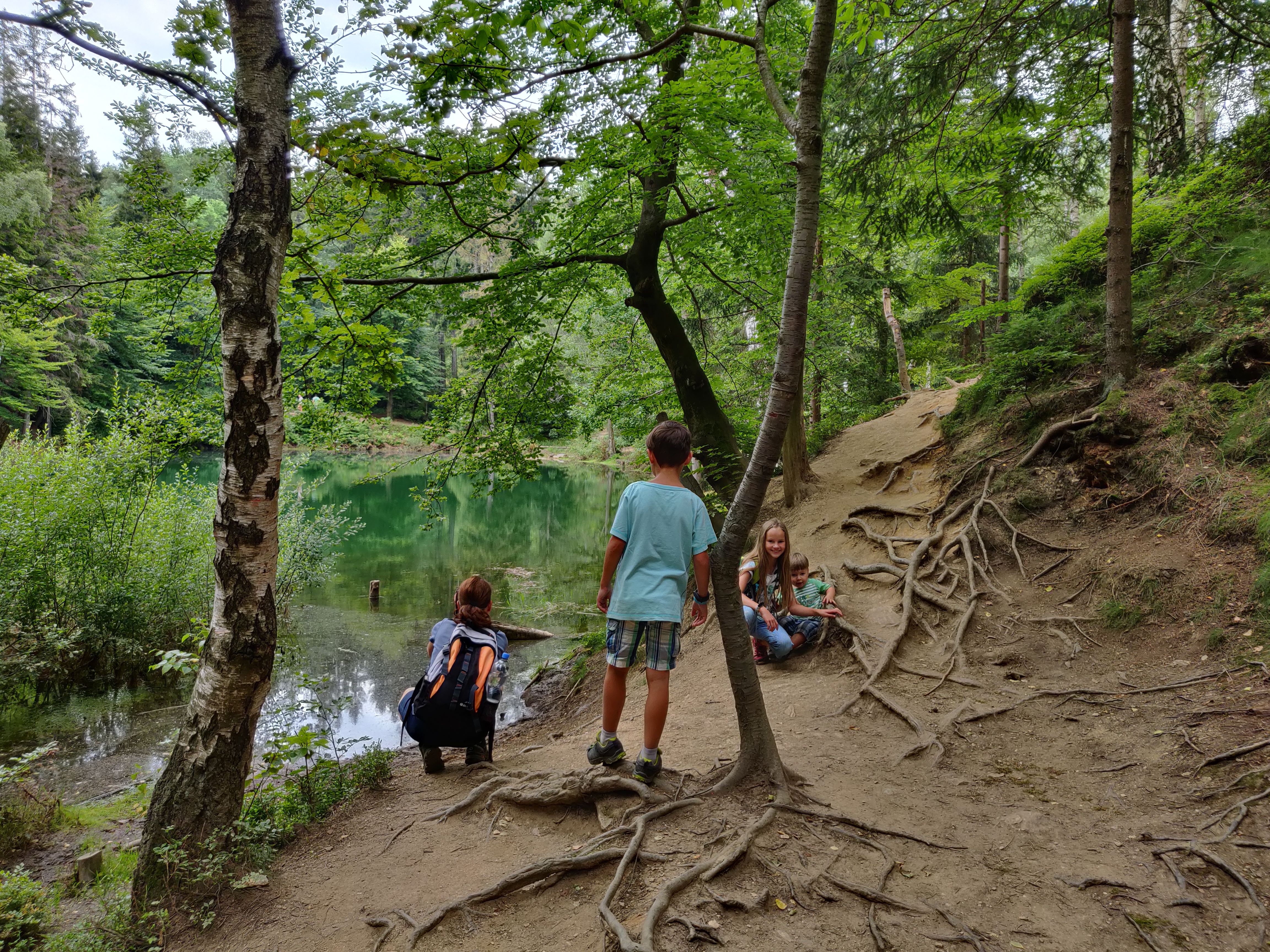 Unser Ziel sind die Bunten Seen von Kolorowe Jeziorka. Diese sind inmitten eines idyllischen Waldes gelegen und waren einst Minen, in denen schwefelhaltiges Pyrith abgebaut wurde. Die ausgewaschenen Schwefelverbindungen und andere Mineralien färben jeden der vier Seen in einer eigenen Farbe.