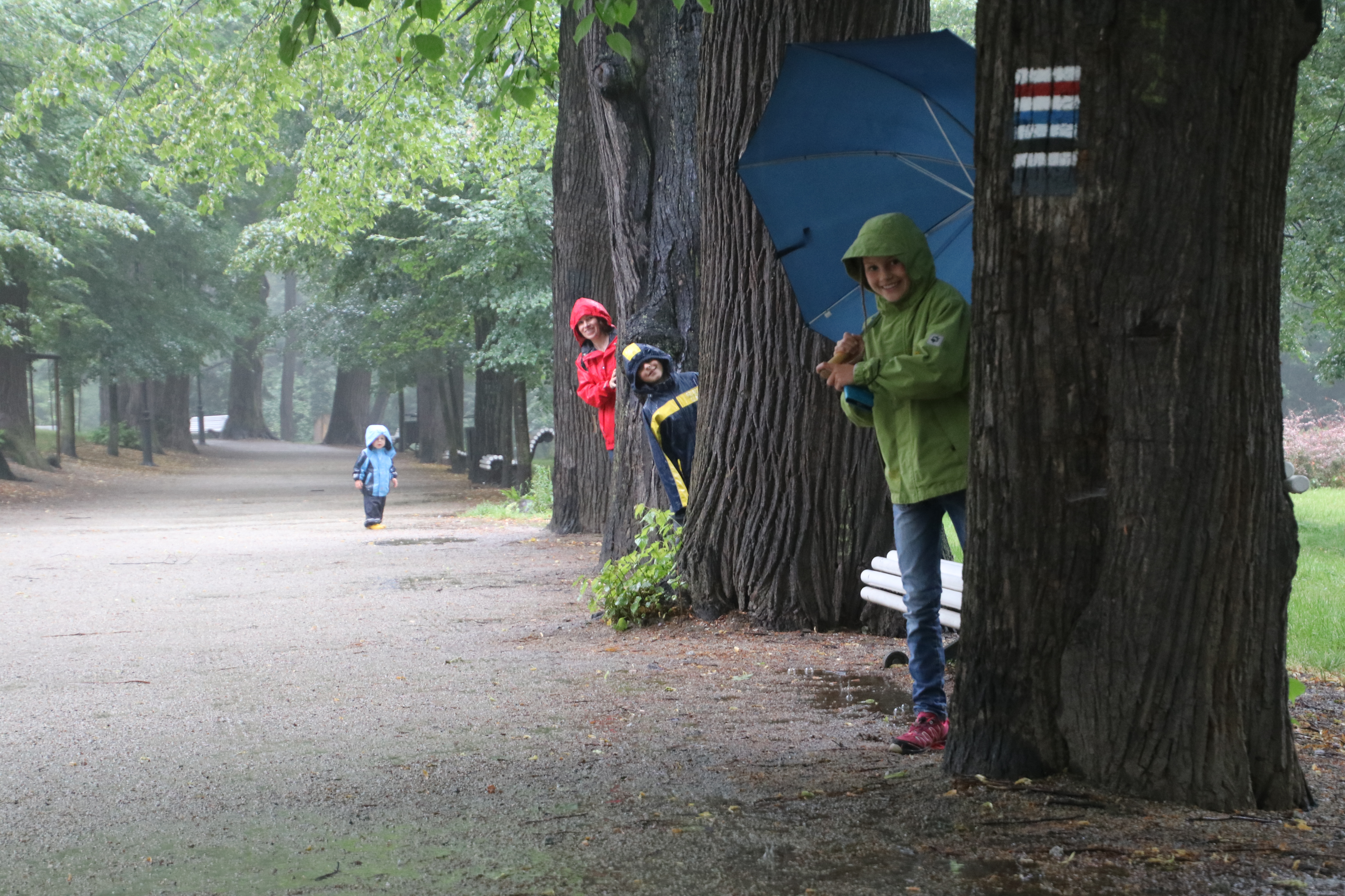 Regen! Es hat die gesamte Nacht durchgeregnet. Wir haben die Nacht fast allein auf dem großen Wiesen-Parkplatz des Schlosses Fürstenstein gestanden. Frühstück gibt’s im Wohnmobil, weil es die ganze Zeit Bindfäden regnet.