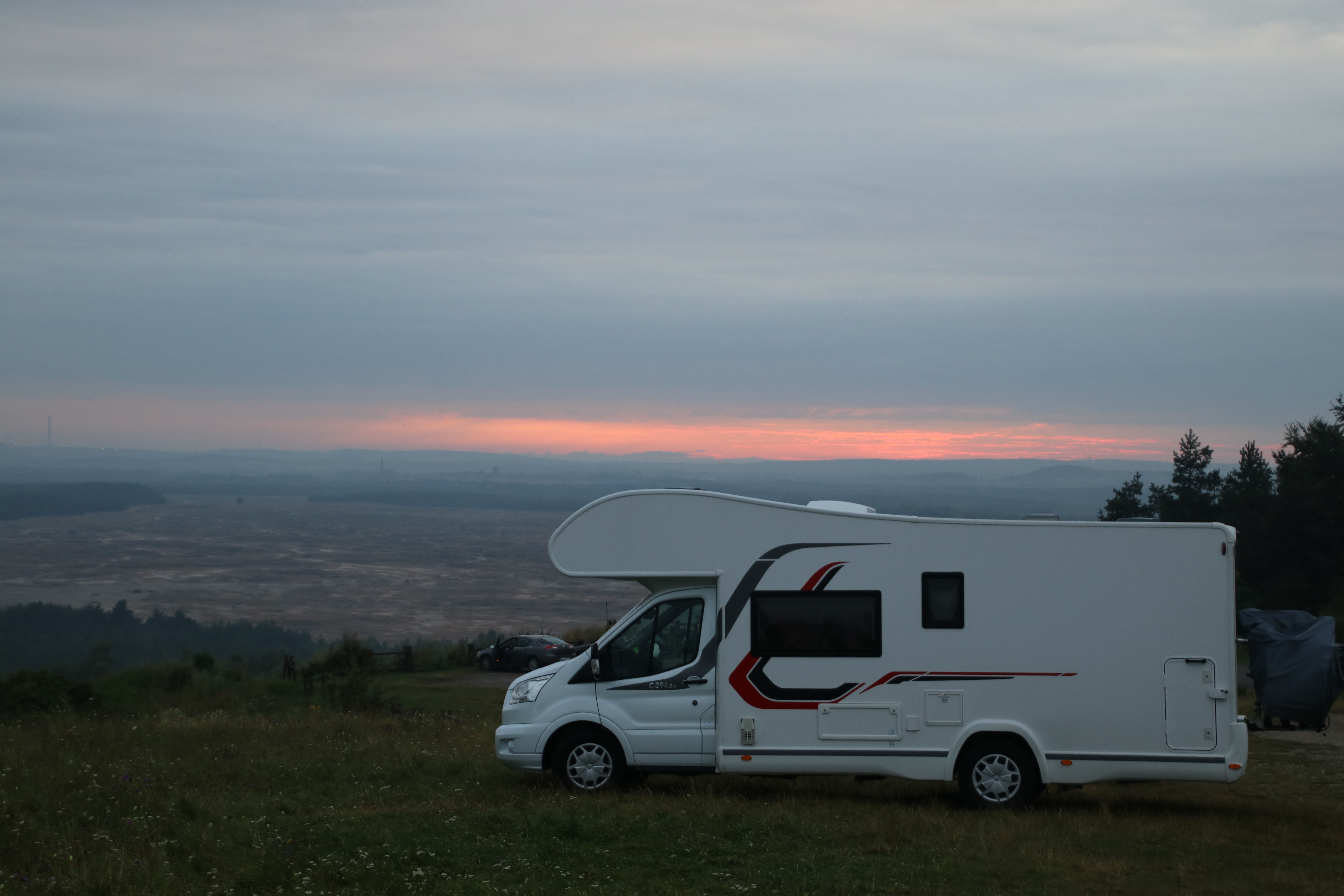 Wir freuen uns für die lokale Pflanzenwelt, streichen aber schweren Herzens die nächsten beiden Ziele von unserer Liste (Stadtbesichtigung in Breslau und eine tolle Tafelberg-Wanderung). Stattdessen entscheiden wir uns, den Tag zum Fahren zu nutzen und zu versuchen, dem Regen zu entkommen. Während Mattis den halben Tag im Auto verschläft, fahren wir knapp 300 km durch strömenden Regen in Richtung Osten. Am Abend erreichen wir unser Ziel, einen abgelegenen Aussichtspunkt mit großartigem Panorama über die Landschaft. Nach 24 Stunden Dauerregen lässt sich die Sonne nochmal ganz kurz blicken, ehe sie untergeht.
