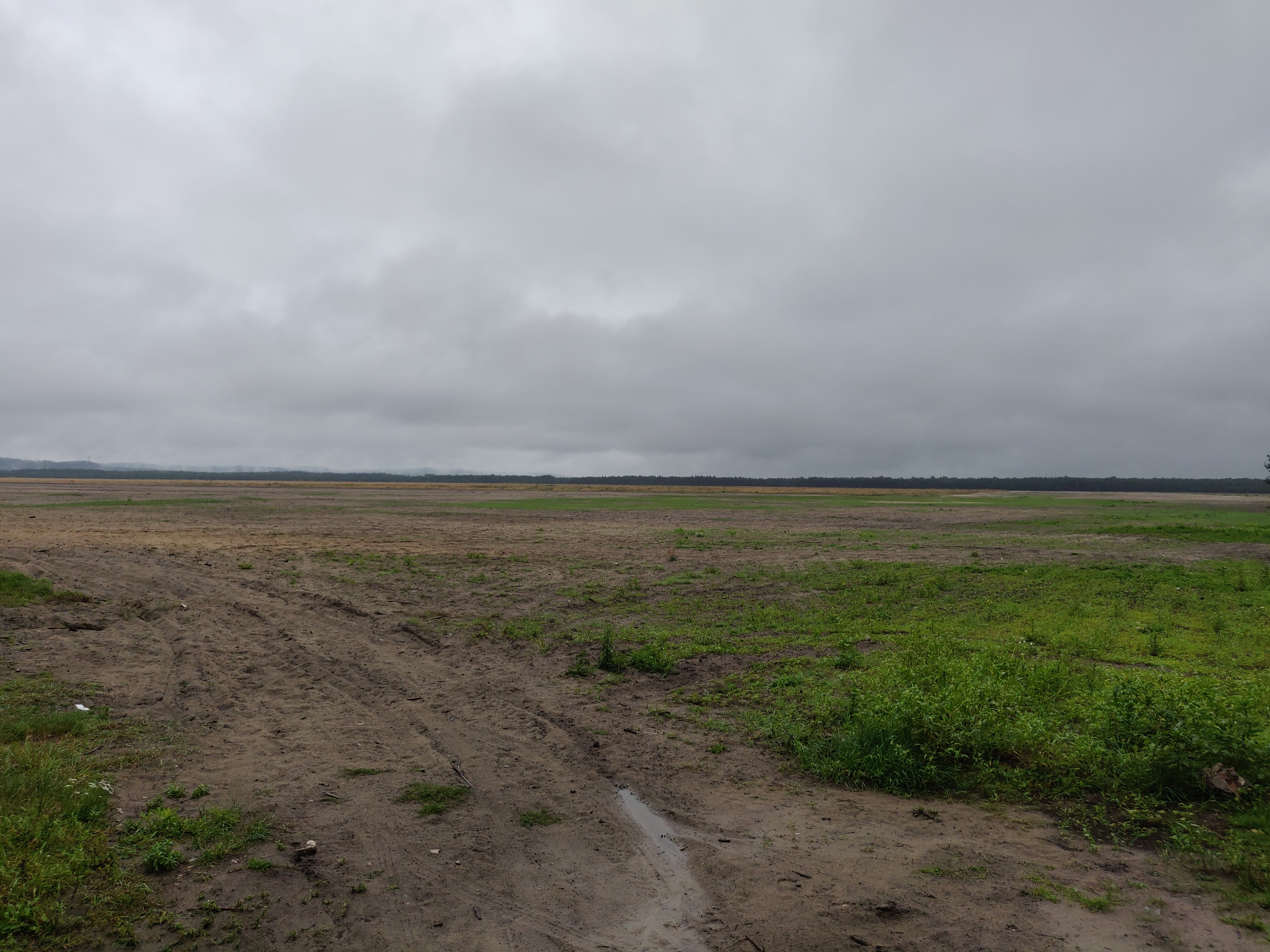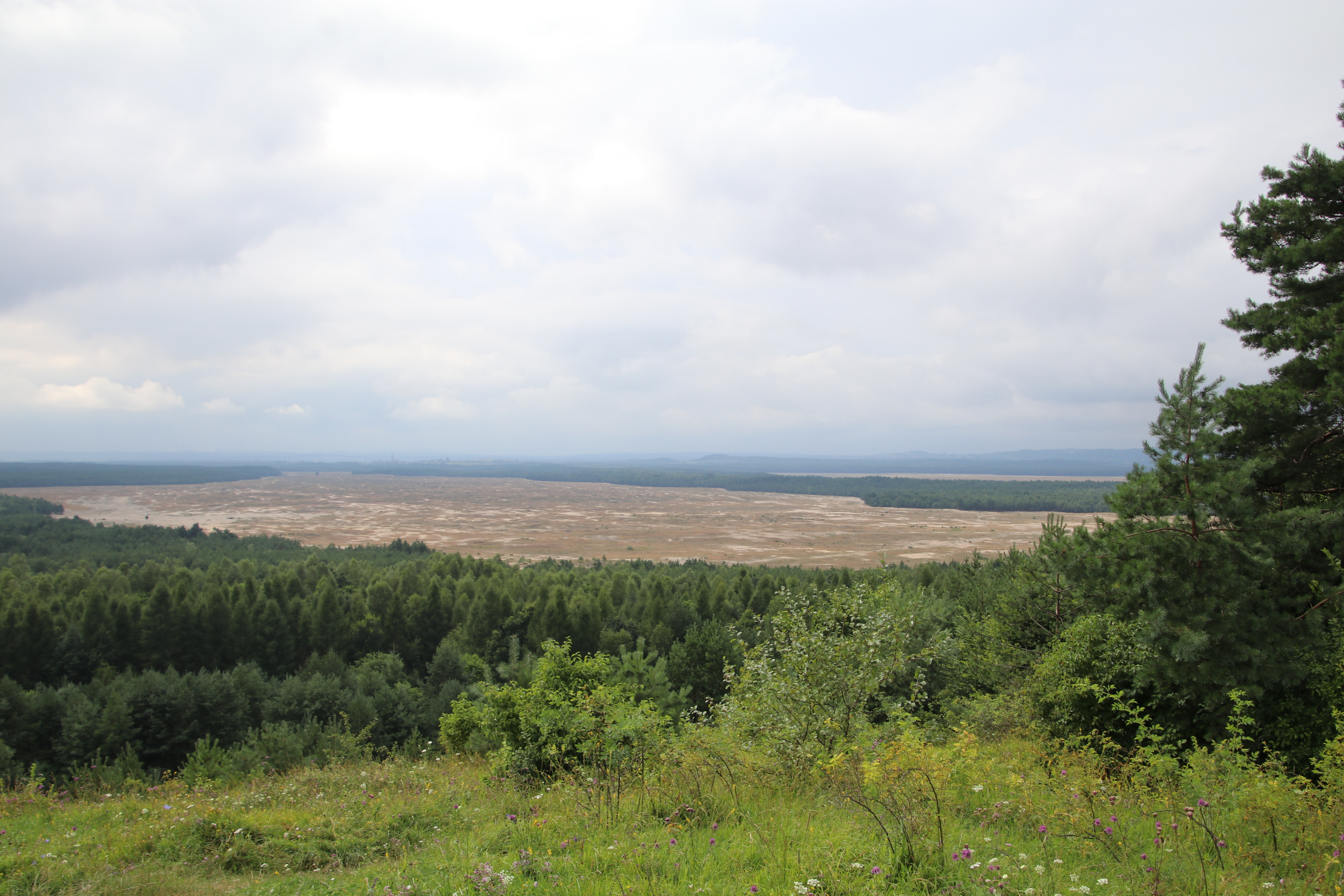 Wüsten verbindet man ja eigentlich mit Sand, Hitze und Trockenheit. Wir campen am Rande der größten Sandwüste Europas, der Błędów-Wüste. Sand gibt es also, allerdings ist es kalt und nass. Die Nacht hat es weiterhin durchgeregnet, auch am Morgen bleibt es regnerisch. Wir schlafen aus, frühstücken in Ruhe und fahren erst einmal zum leider geschlossenen Wüsten-Informations-Zentrum (ob man das mit „WItZ“ abkürzt?).