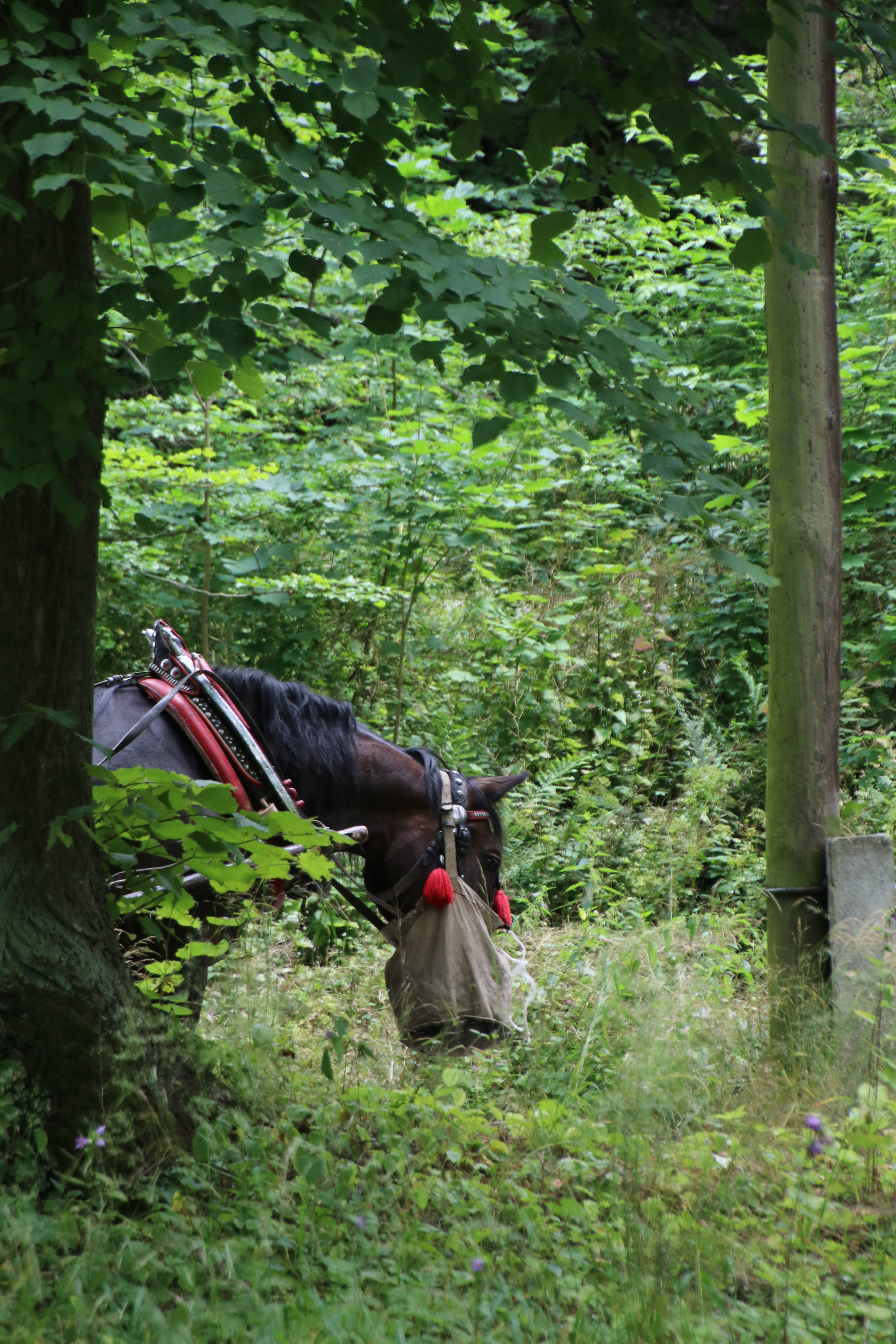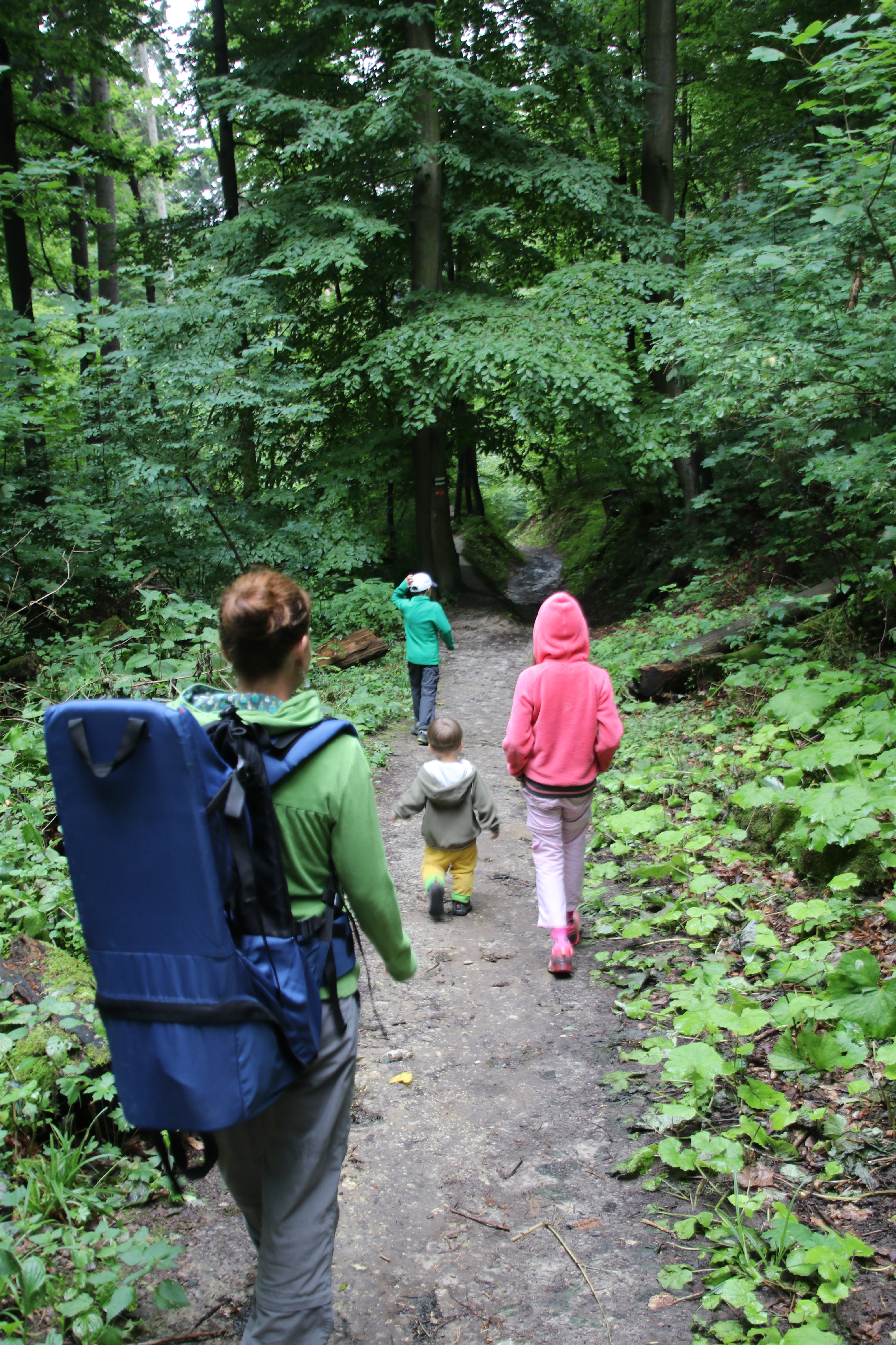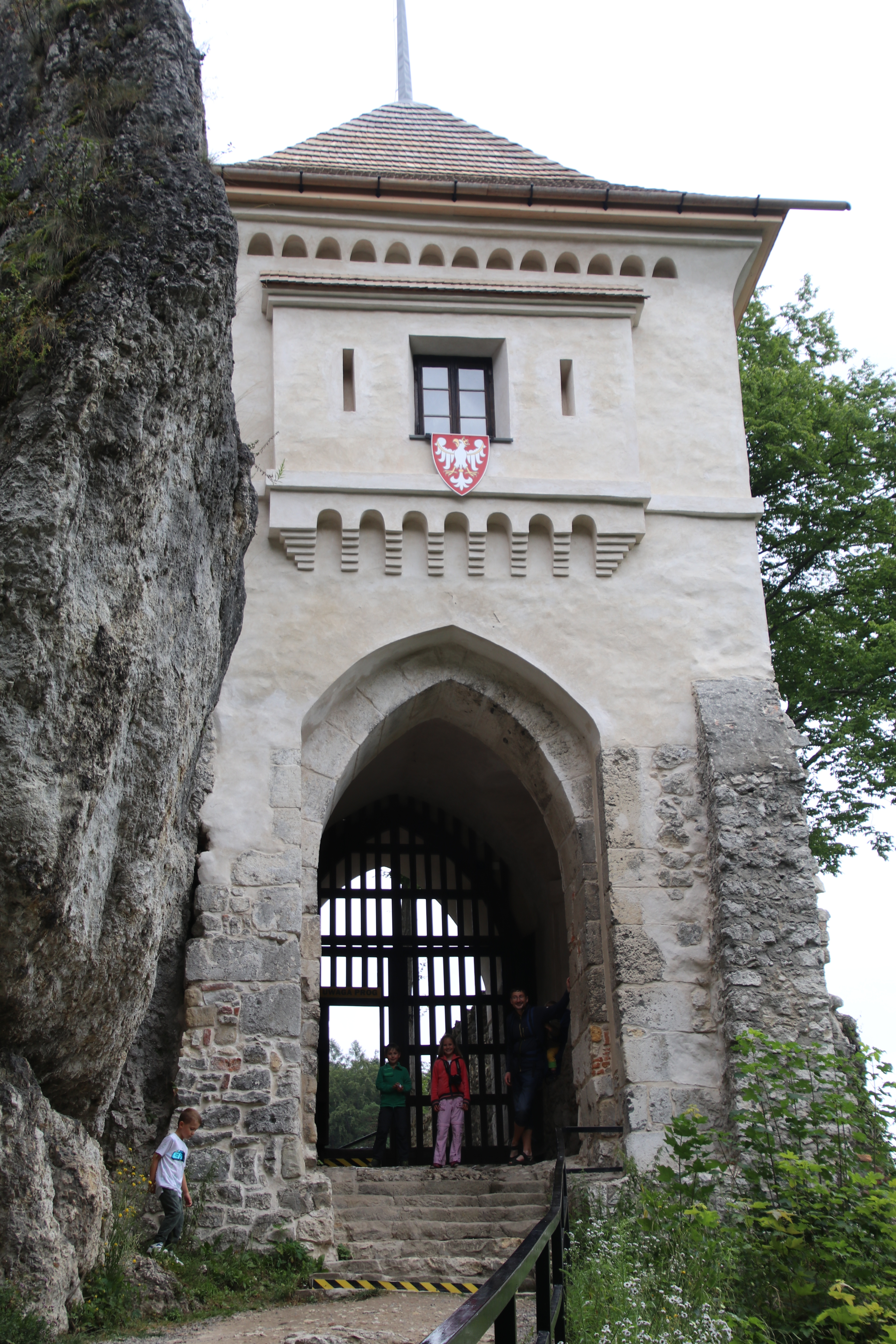 Wir wandern in das Ojcowski-Tal hinab, wo es imposante Felsformationen und ein paar alte Gemäuer, eingebettet in eine tolle Natur zu sehen gibt. An einem Flüsschen machen wir Mittagspause. Dort werden Forellen gezüchtet, zum Mittag gibt es eine davon vom Grill für Anke. Die Kinder und ich bevorzugen heute Fleisch.