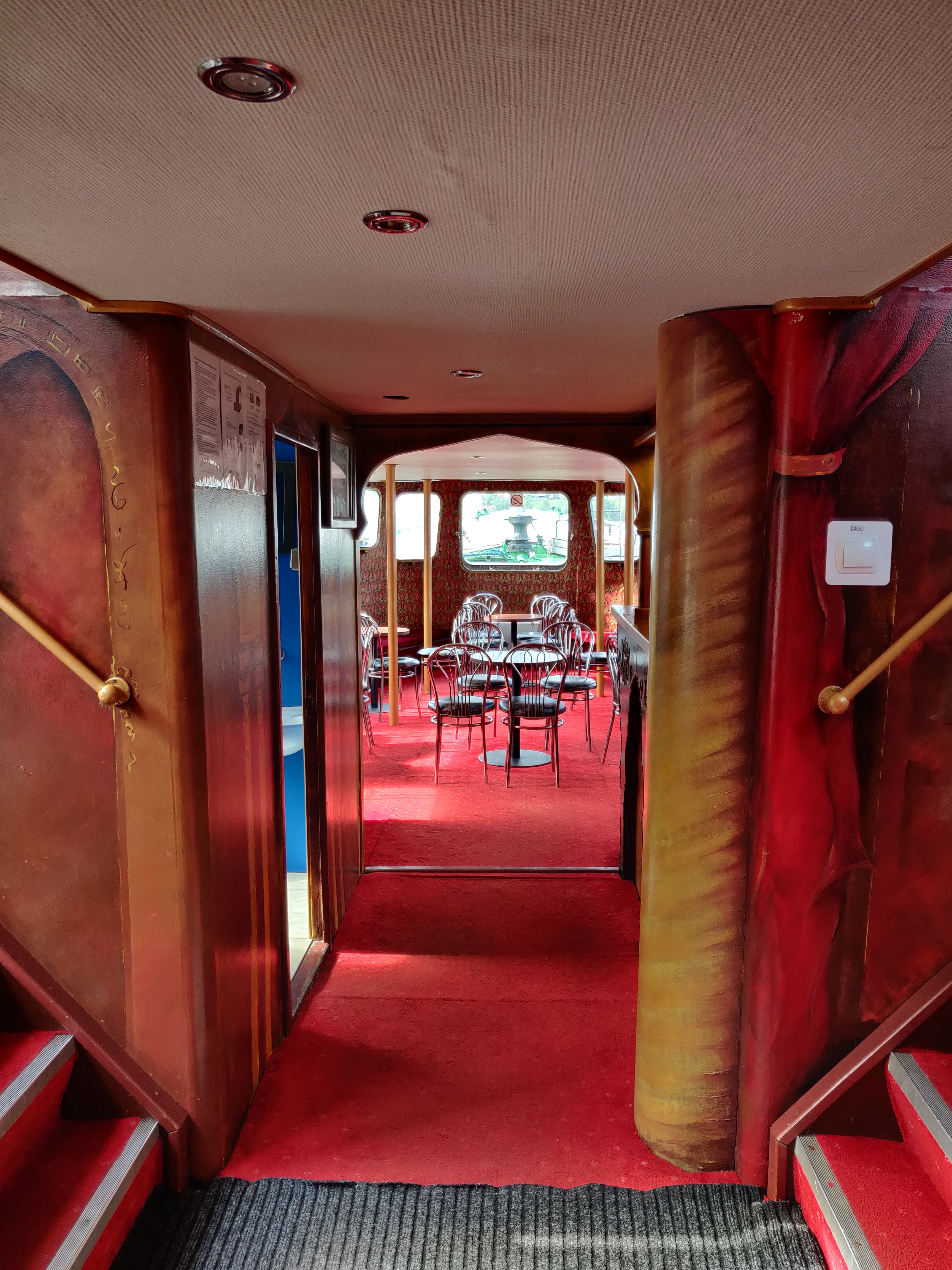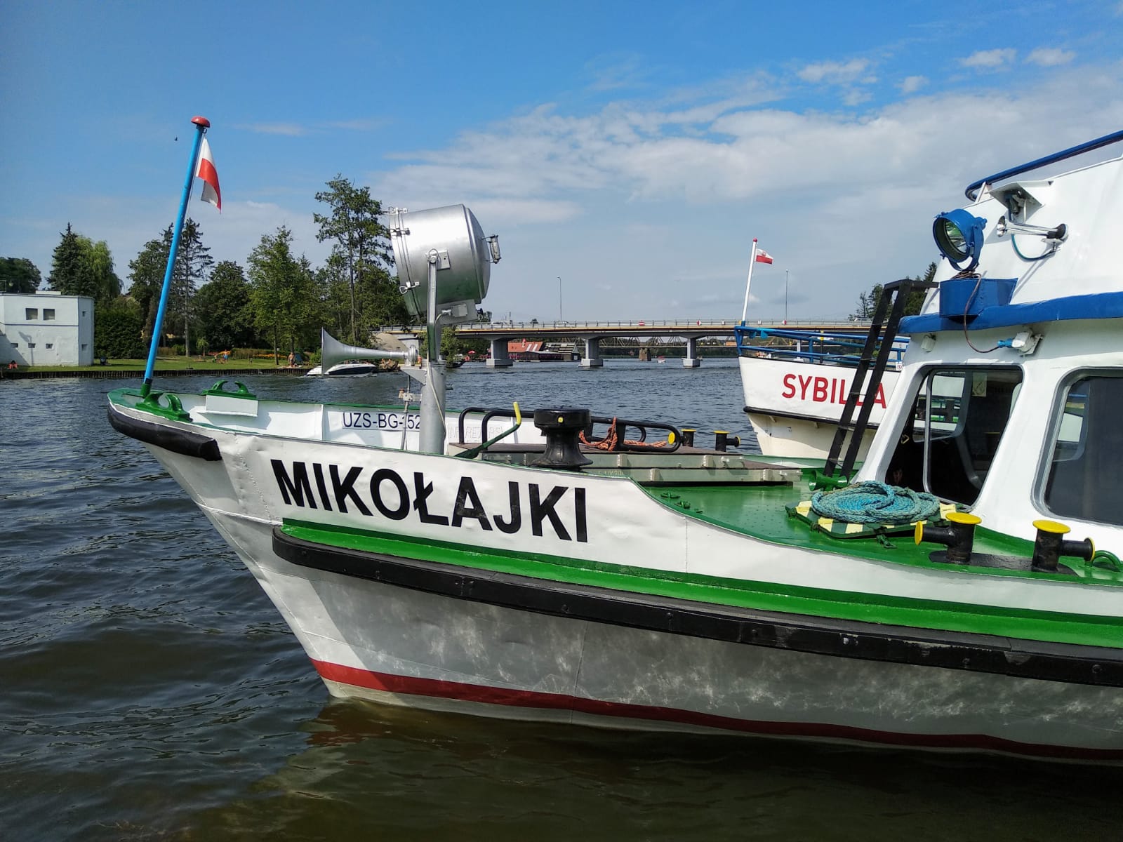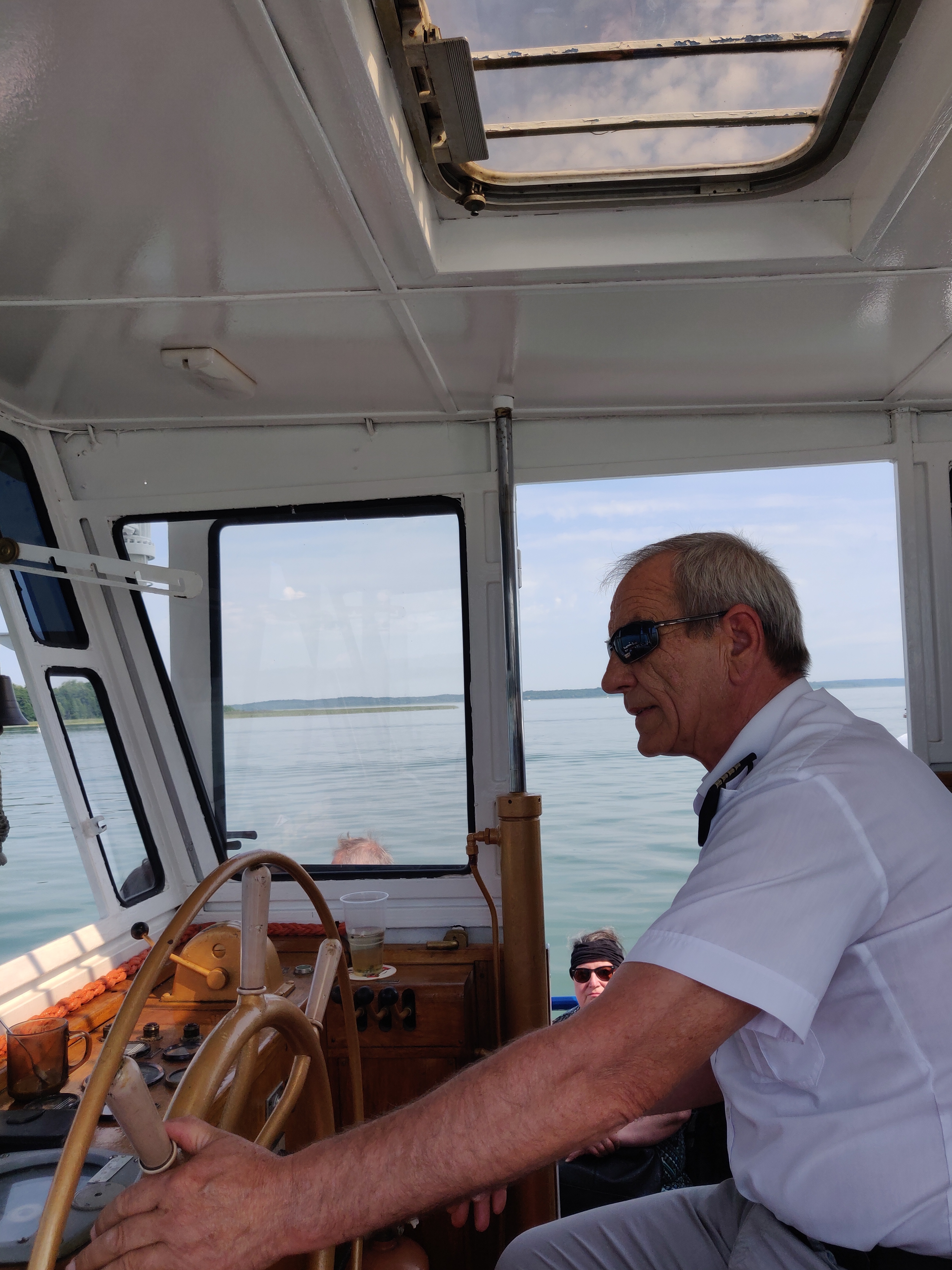 Kurz vor 10 checken wir auf der „Mikolajki“ ein. Das Schiff ist noch fast leer, wir ergattern uns die besten Plätze im Vordeck. Kurz bevor es los geht, kommt noch eine Reisegruppe und füllt das Boot recht vollständig. Wir fahren den Tałty-See hinab bis zur Durchfahrt in den Spirdingsee – dem mit über 100ckm² größten See Polens und natürlich auch dem größten See der Masuren. Es ist leicht bedeckt, das ideale Wetter für einen Ausflug.