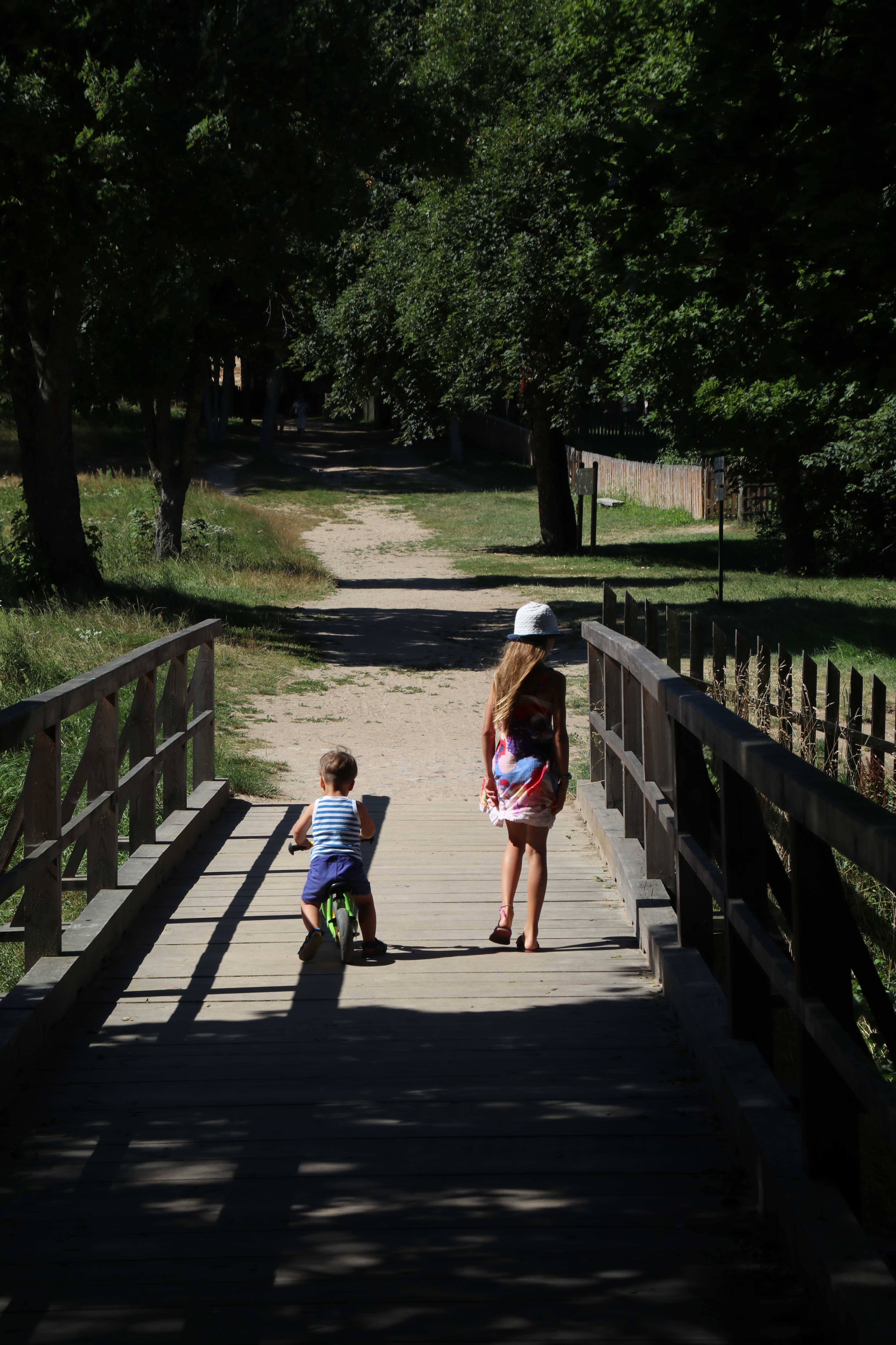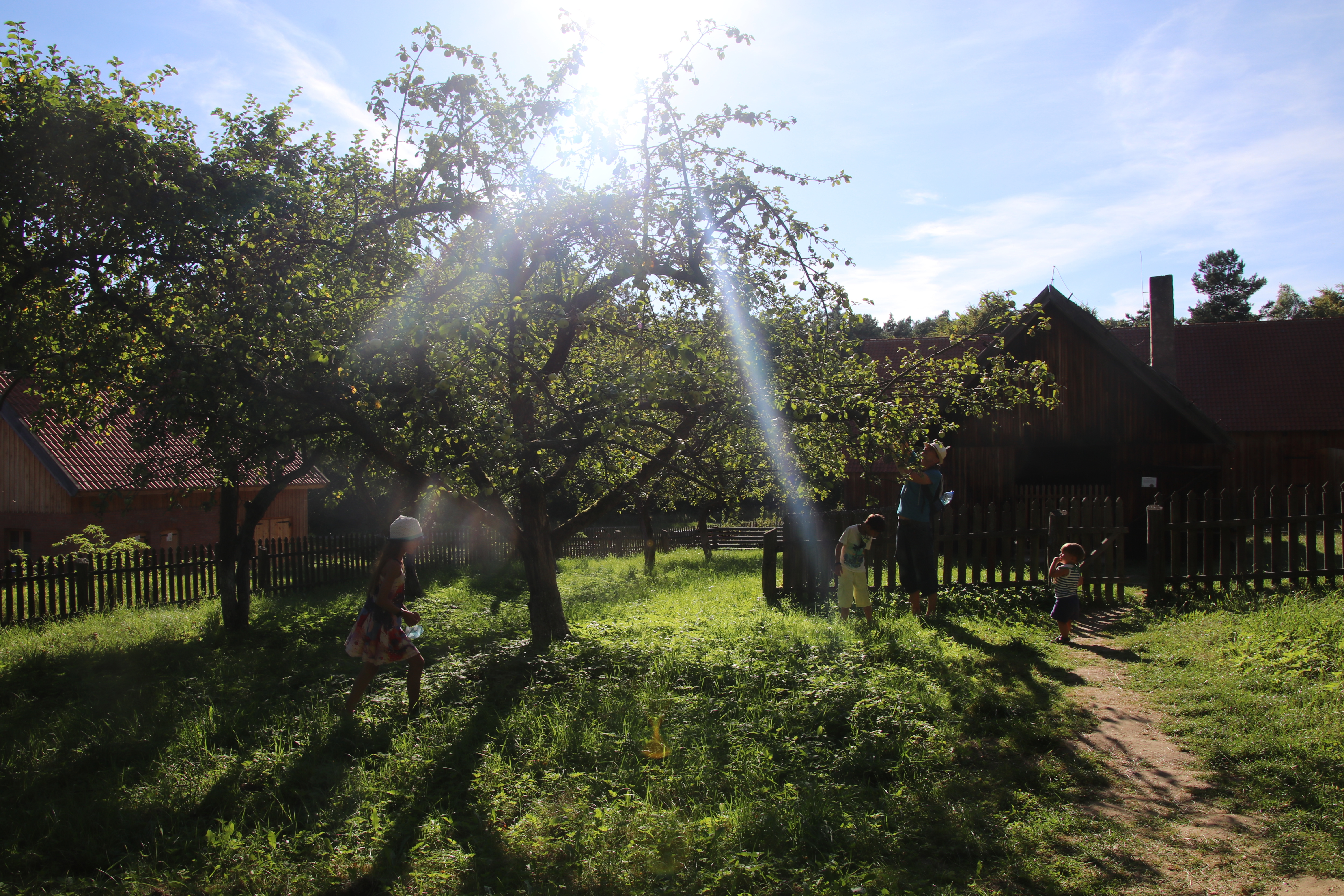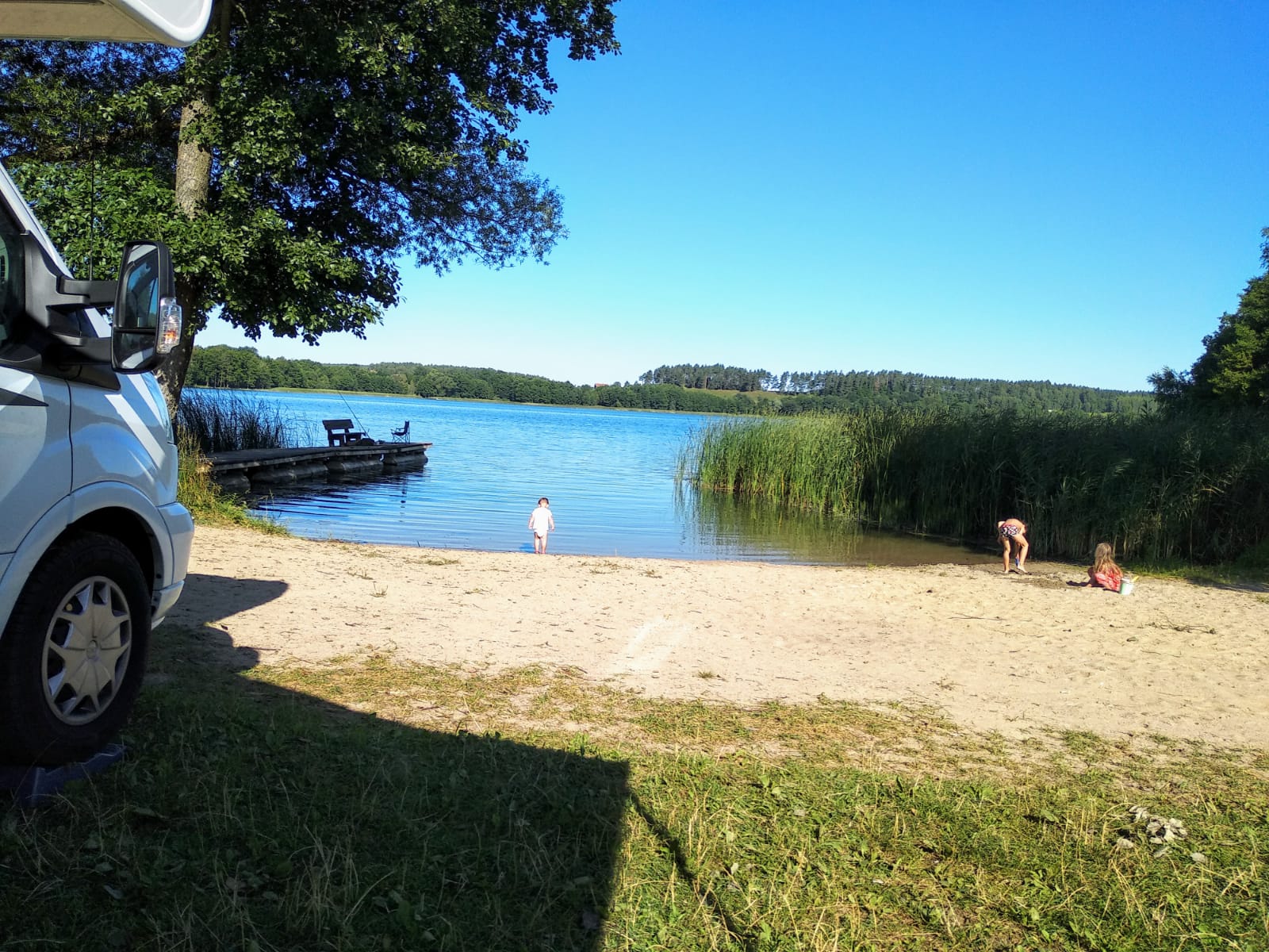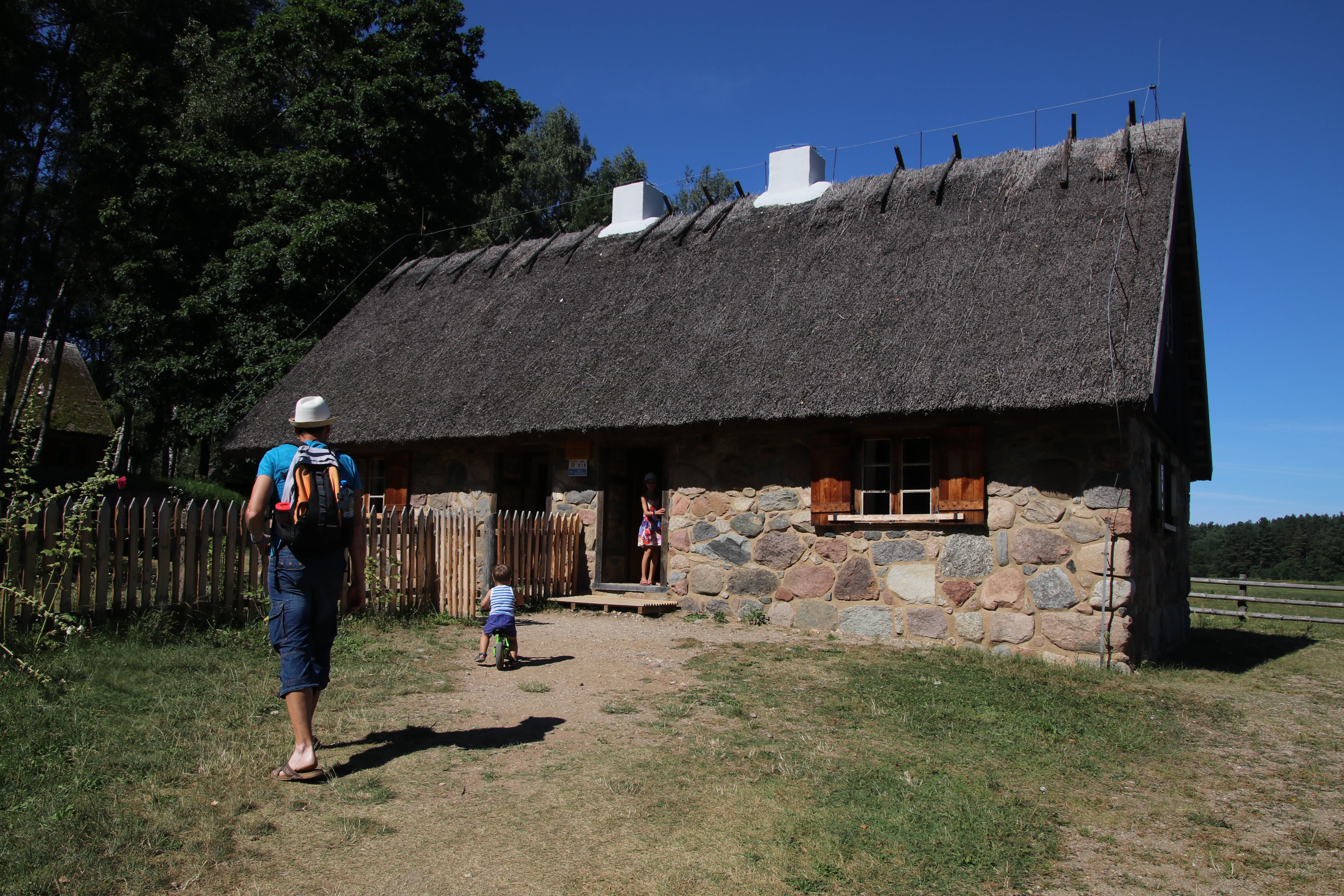 Wir schlafen lange und frühstücken in Ruhe. Die Kinder fangen gleich an, am Strand zu buddeln, während wir das Wohnmobil startklar machen. Um 10:30 brechen wir auf, um im Nachbarort ein Bienen- und Agrarmuseum zu besuchen. Wir durchkämmen den ganzen Ort und fragen mehrfach, keiner kennt es. Ein älterer Herr erklärt uns anschließend (auf Deutsch, was hier offenbar viele sprechen), dass das Museum vor einigen Jahren geschlossen wurde. Enttäuscht suchen wir uns ein Plätzchen zum Mittagessen. Danach setzen wir Kurs auf das zweite Museum für heute, dem Freilichtmuseum der Volksbauweise in Olsztynek. Es handelt sich um eines der größten in ganz Polen, so dass ein plötzliches Verschwinden zumindest bei diesem recht unwahrscheinlich scheint.