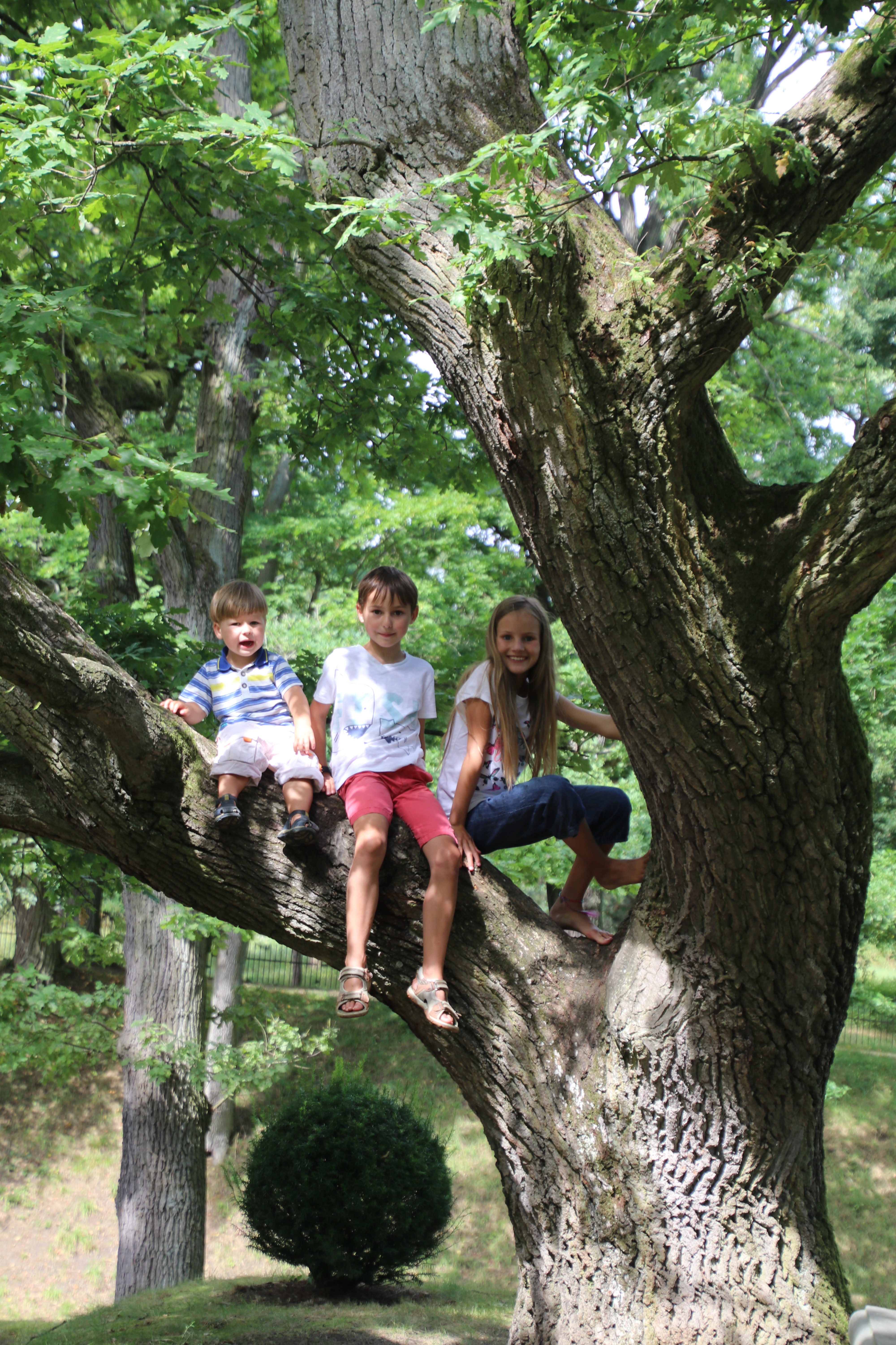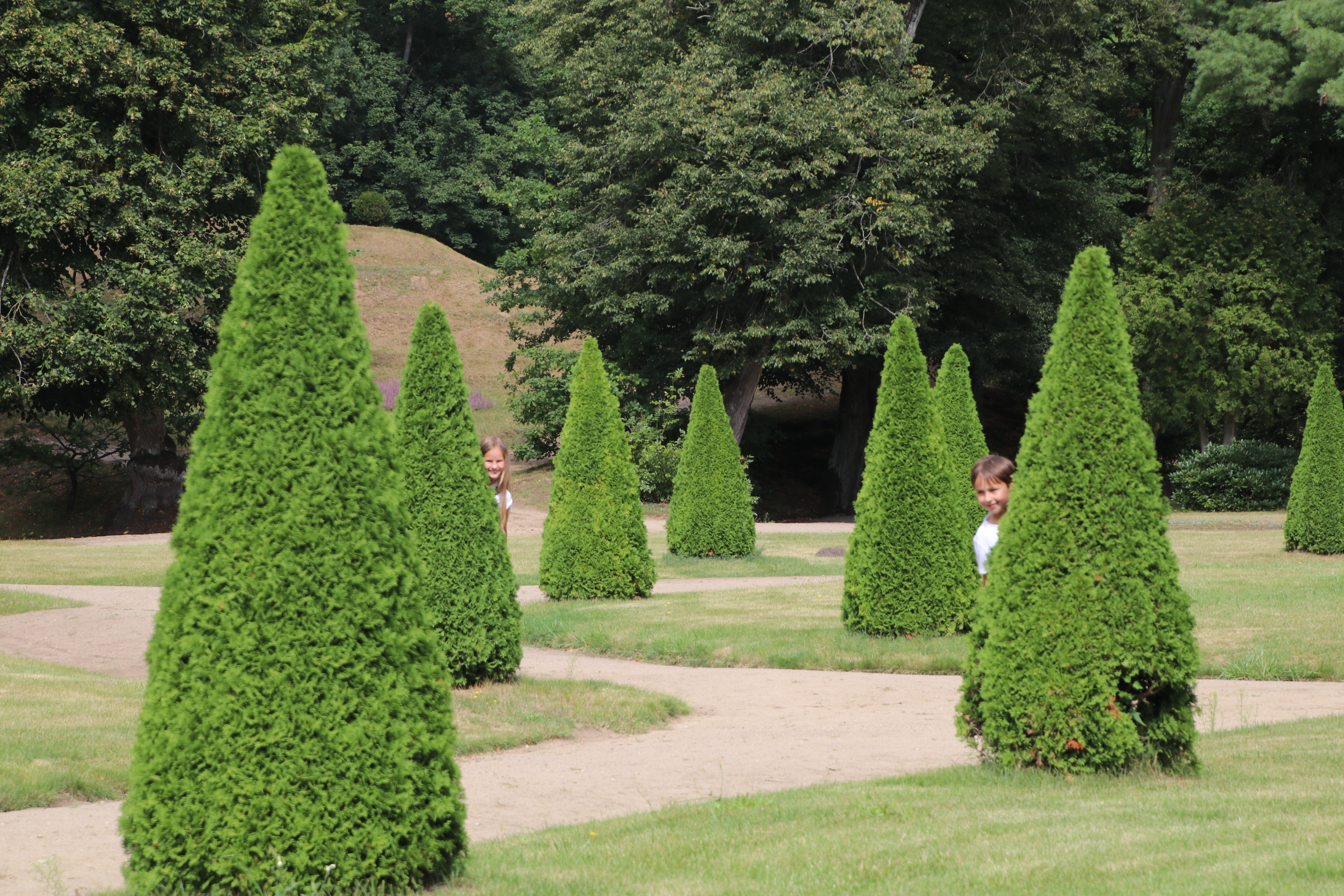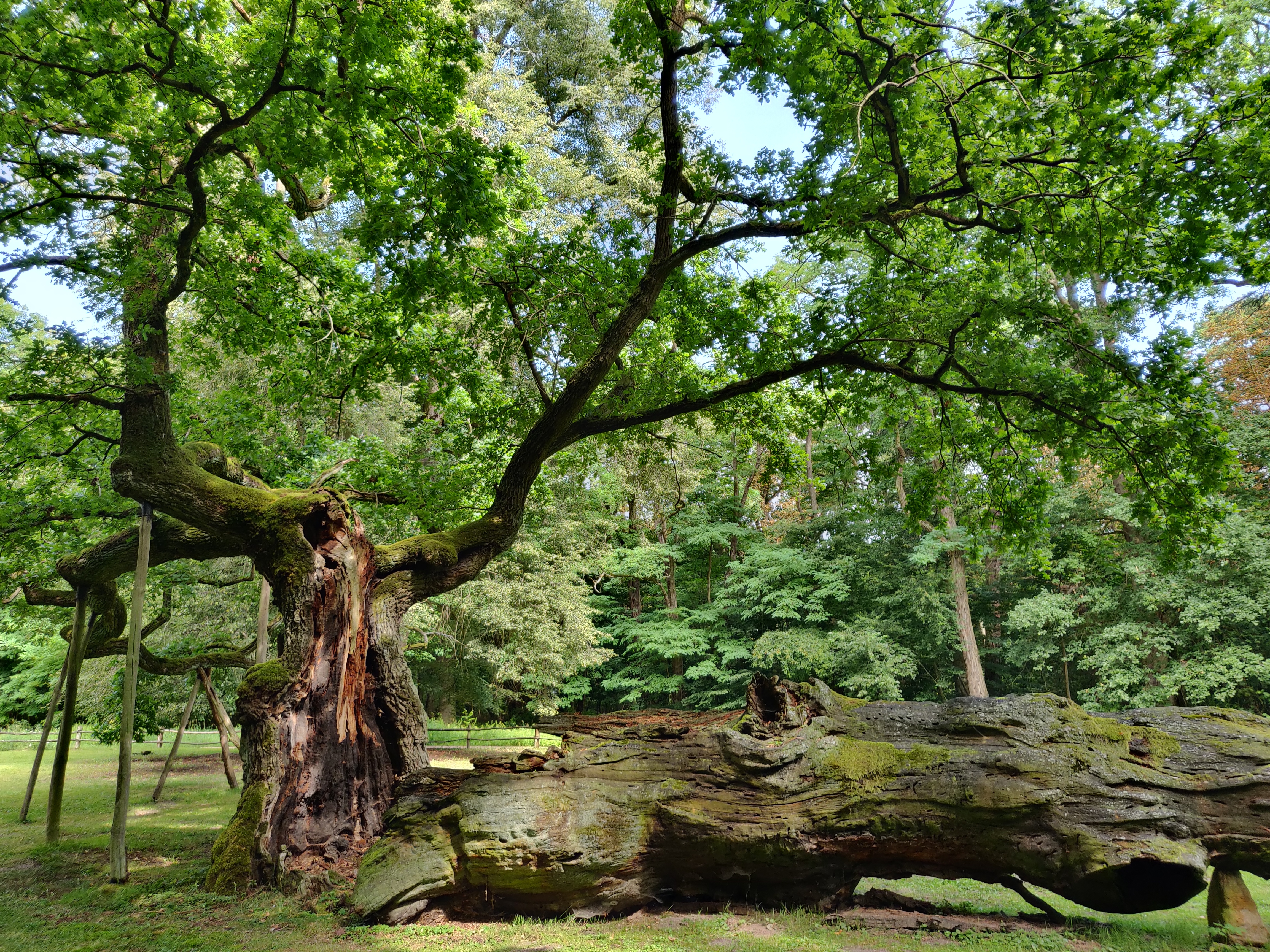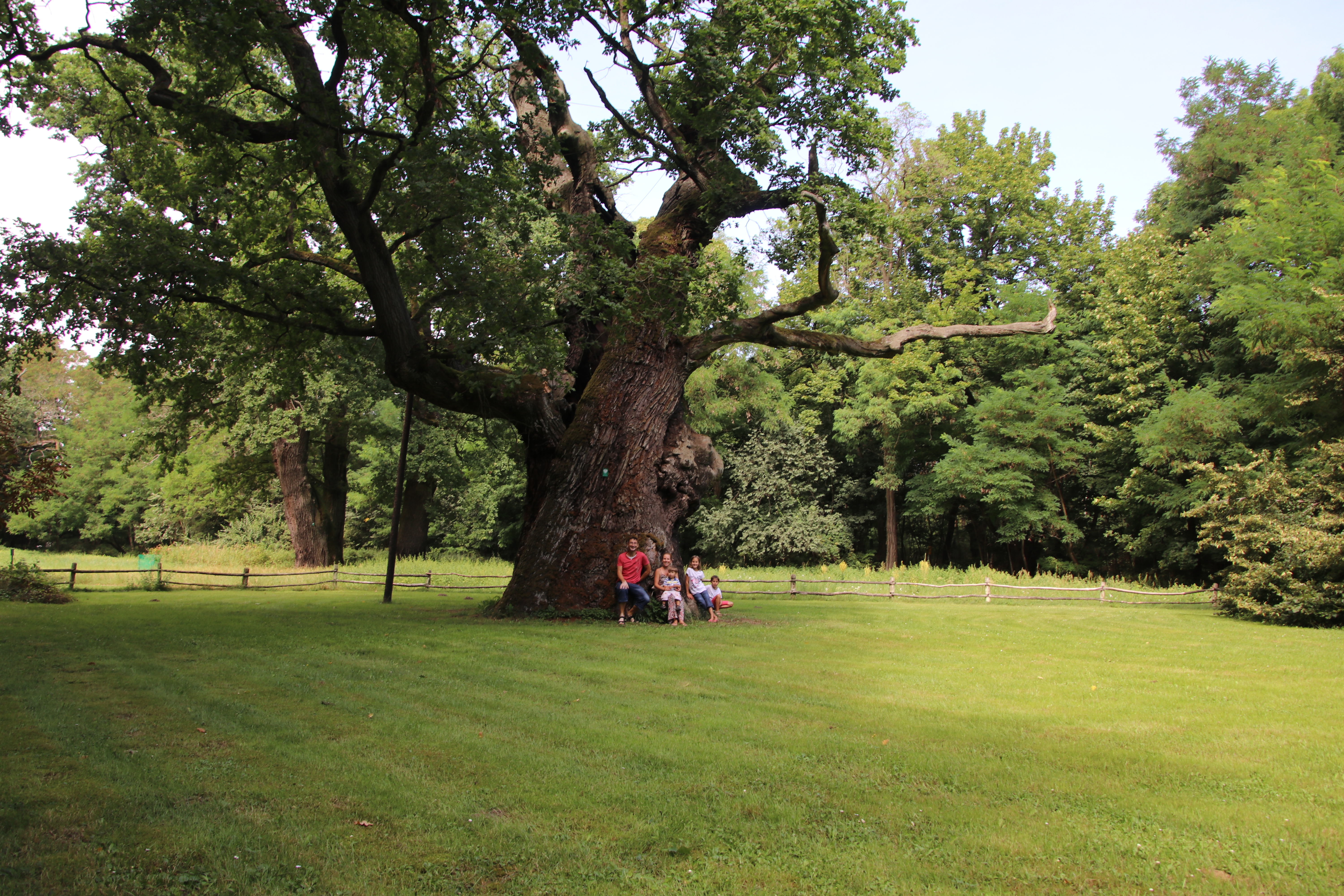 Als wir wieder draußen sind, scheint die Sonne. Wir schlendern in Ruhe durch den Schlossgarten und schauen uns die uralten Eichen dort an.
