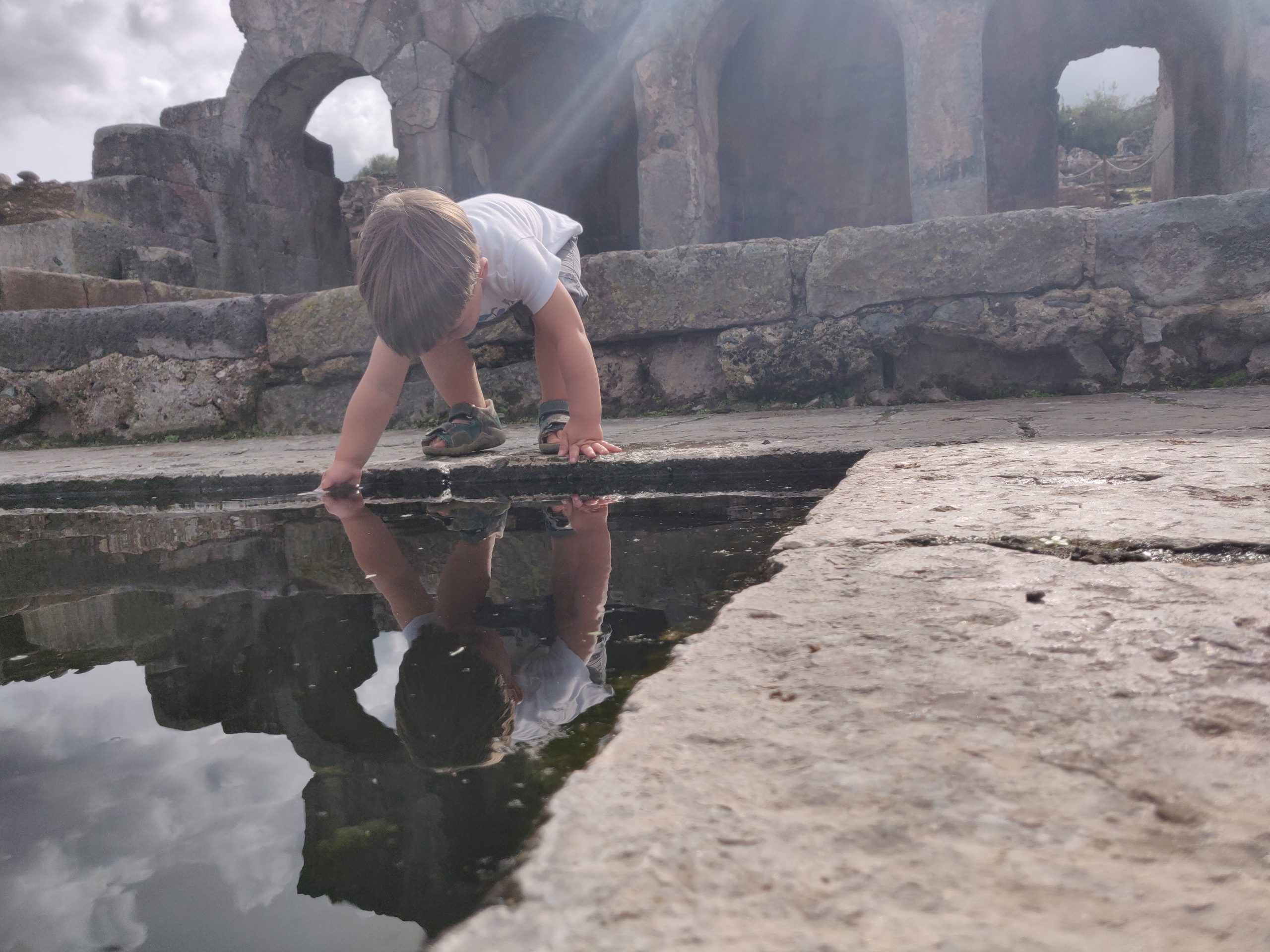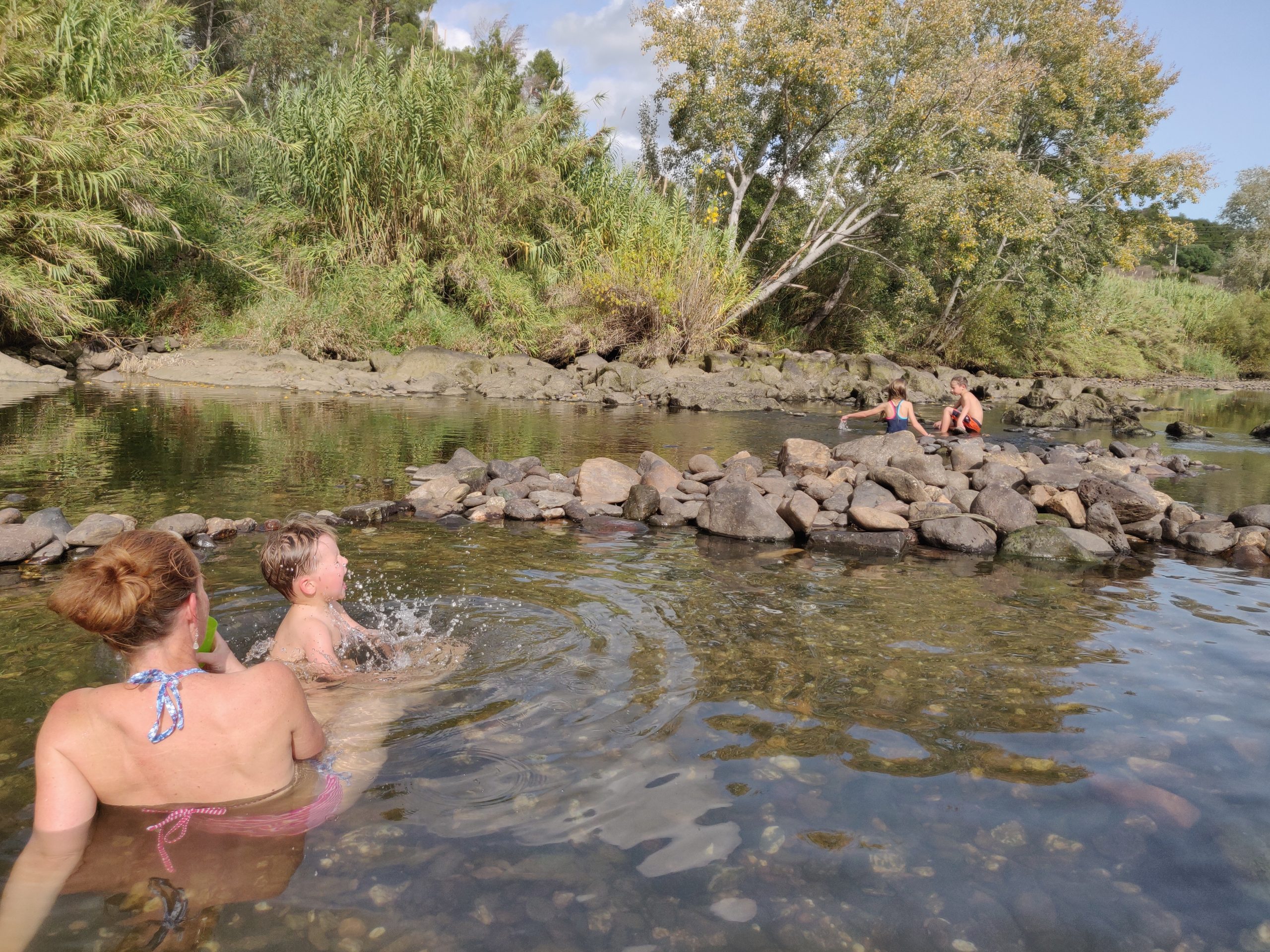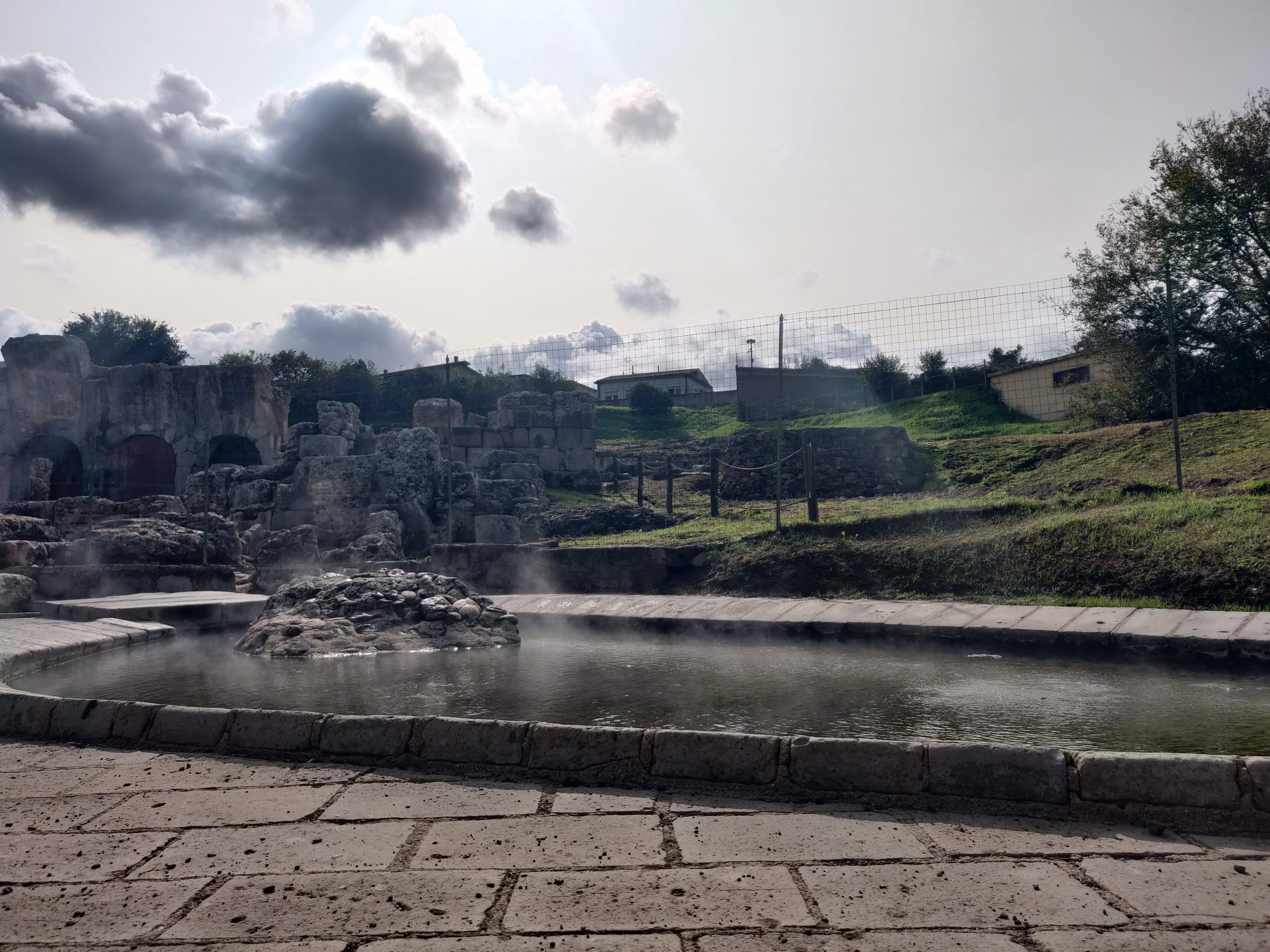 Unser nächster Stopp ist an der römischen Therme von Fordongianus. Diese wurde einst von einer heißen Quelle gespeist. Die Therme selbst und die zugehörigen Gebäude gehören zu einer archäologischen Ausgrabungsstätte. Die Quelle sprudelt noch immer, das heiße Wasser fließt jetzt direkt in den Fluss.