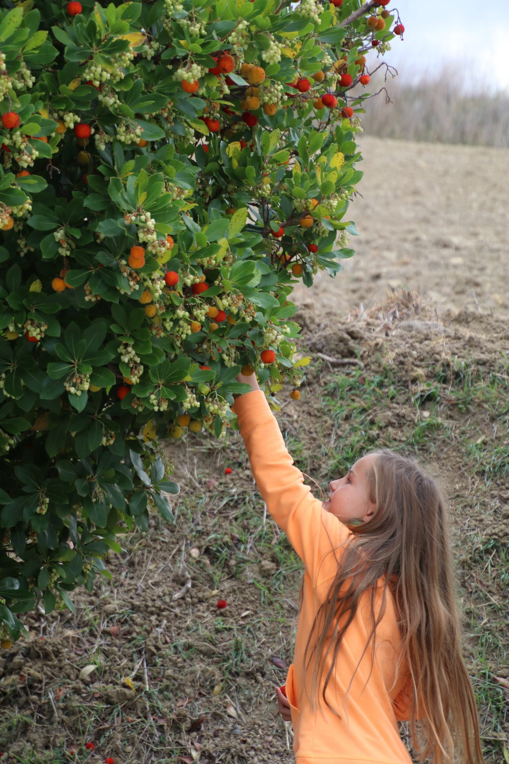 Nach dem Frühstück fahren wir wieder hinunter. Auf dem Weg gestern haben wir etliche Erdbeerbäume gesehen, an denen wir jetzt anhalten und eine große Schale Baumerdbeeren pflücken.