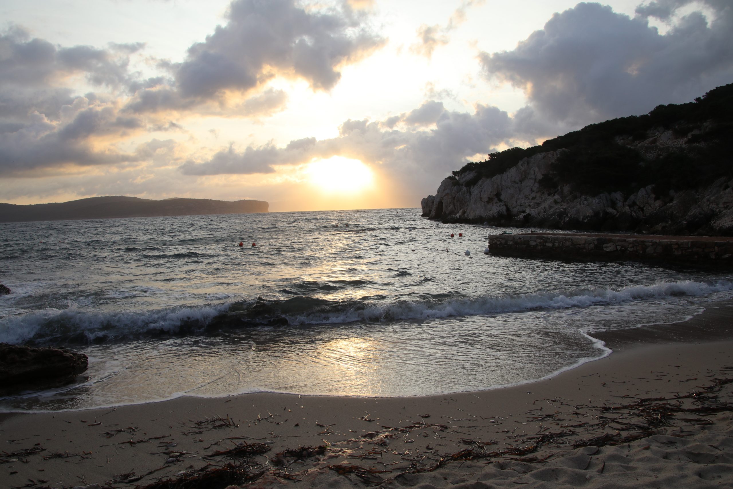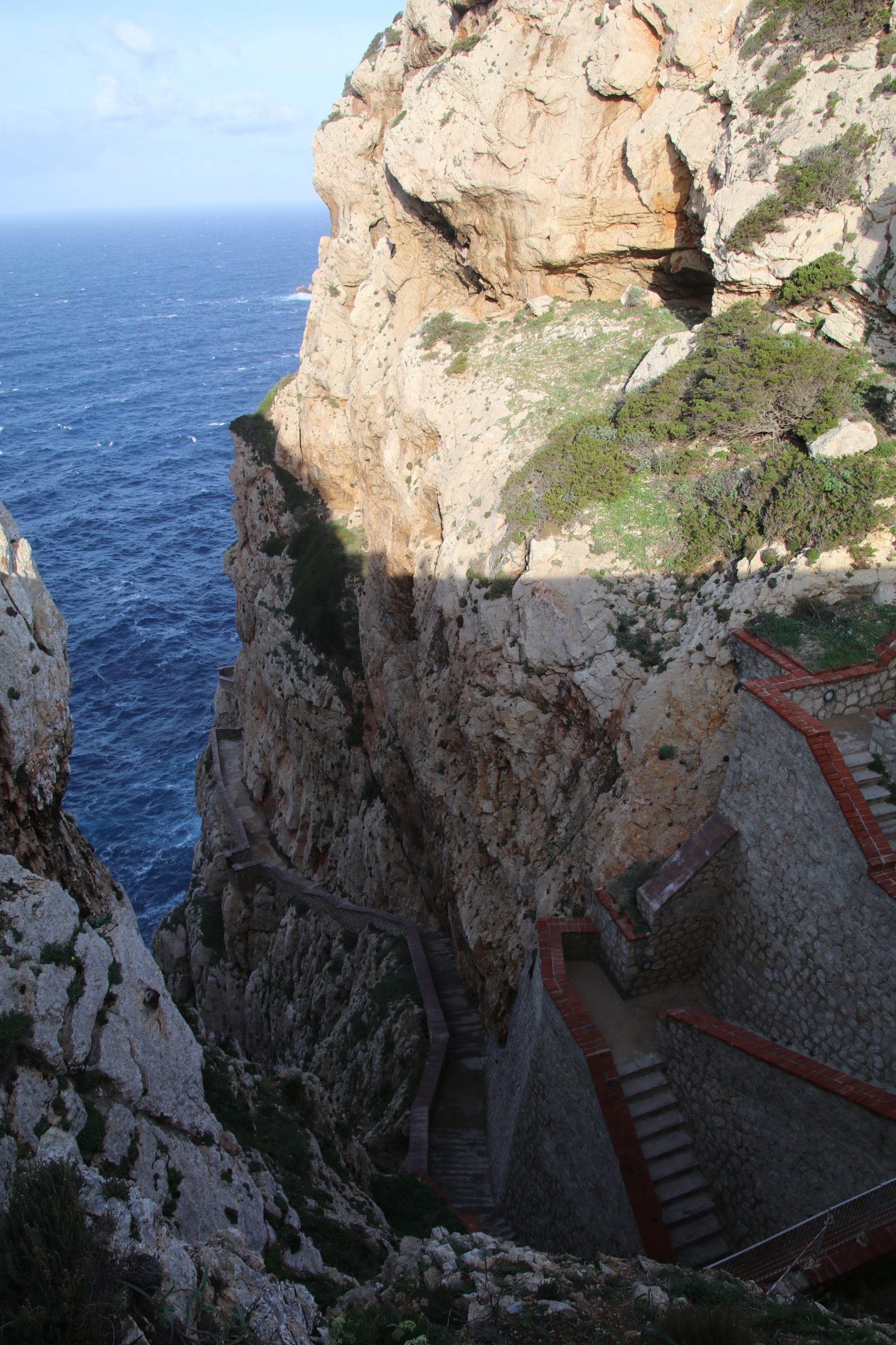 Heute klingelt trotz Urlaub der Wecker – wir wollen pünktlich zur ersten Führung in einer nahen Grotte sein. Die Sonne geht heute spektakulär über dem Strand auf, bevor sie in den Wolken verschwindet. Wir essen Frühstück und düsen bis auf die Spitze des Capo Caccia. Pünktlich kurz vor 9 treffen wir ein. Die Grotte und die in den Felsen geschlagene Treppe dahin sind aber leider „wegen hohem Seegang“ geschlossen. Ich frage mich, was hier noch auf hat, wenn wirklich mal raue See herrscht.