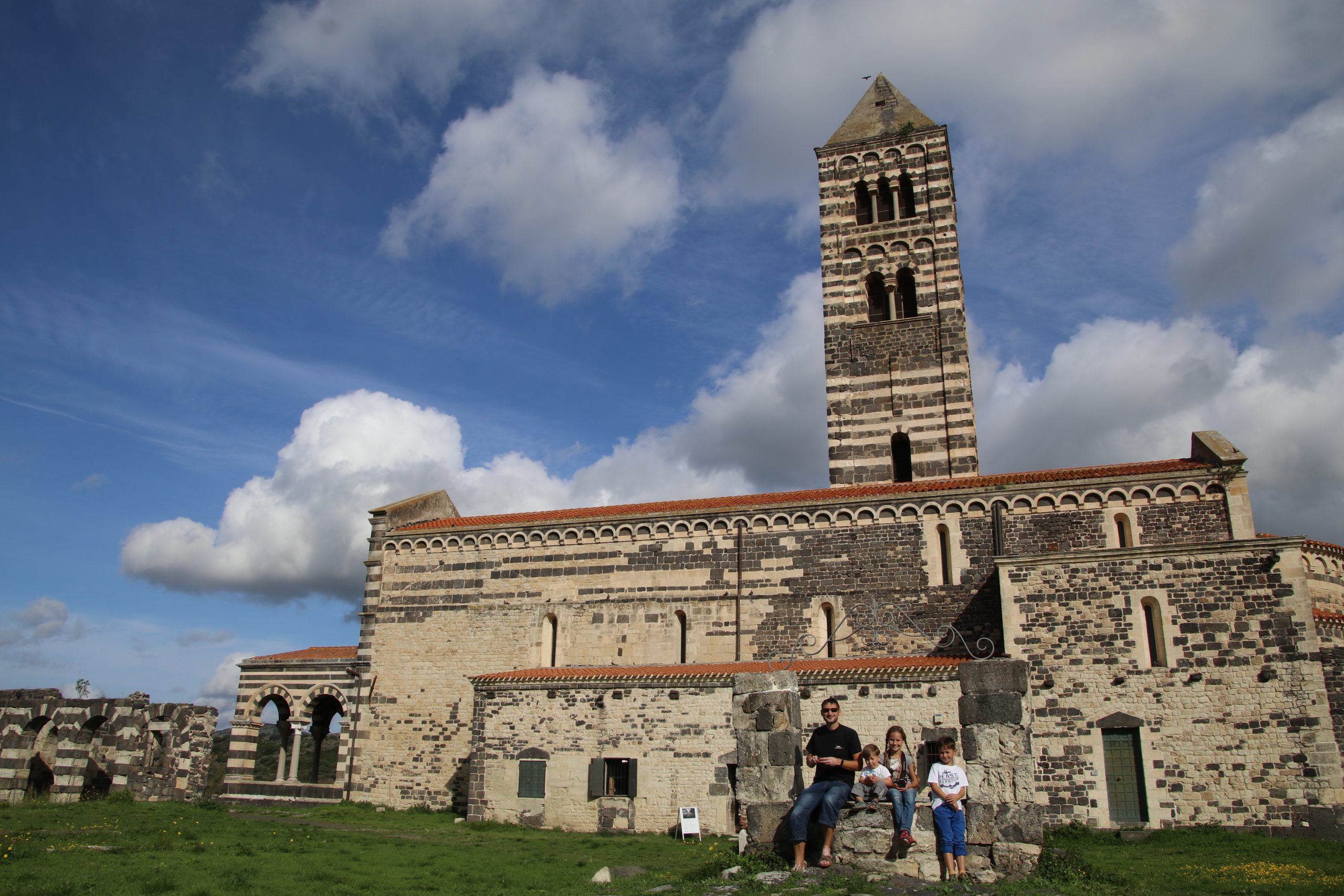 Wir beratschlagen und entscheiden uns, schon mal an die Ostküste zurück zu fahren. Dort soll es heute sehr sonnig und warm werden und wir wollen einen Strandnachmittag einlegen. Unterwegs halten wir an der Santissima Trinità di Saccargia, einer markanten Kirche aus dem 12 Jahrhundert.
