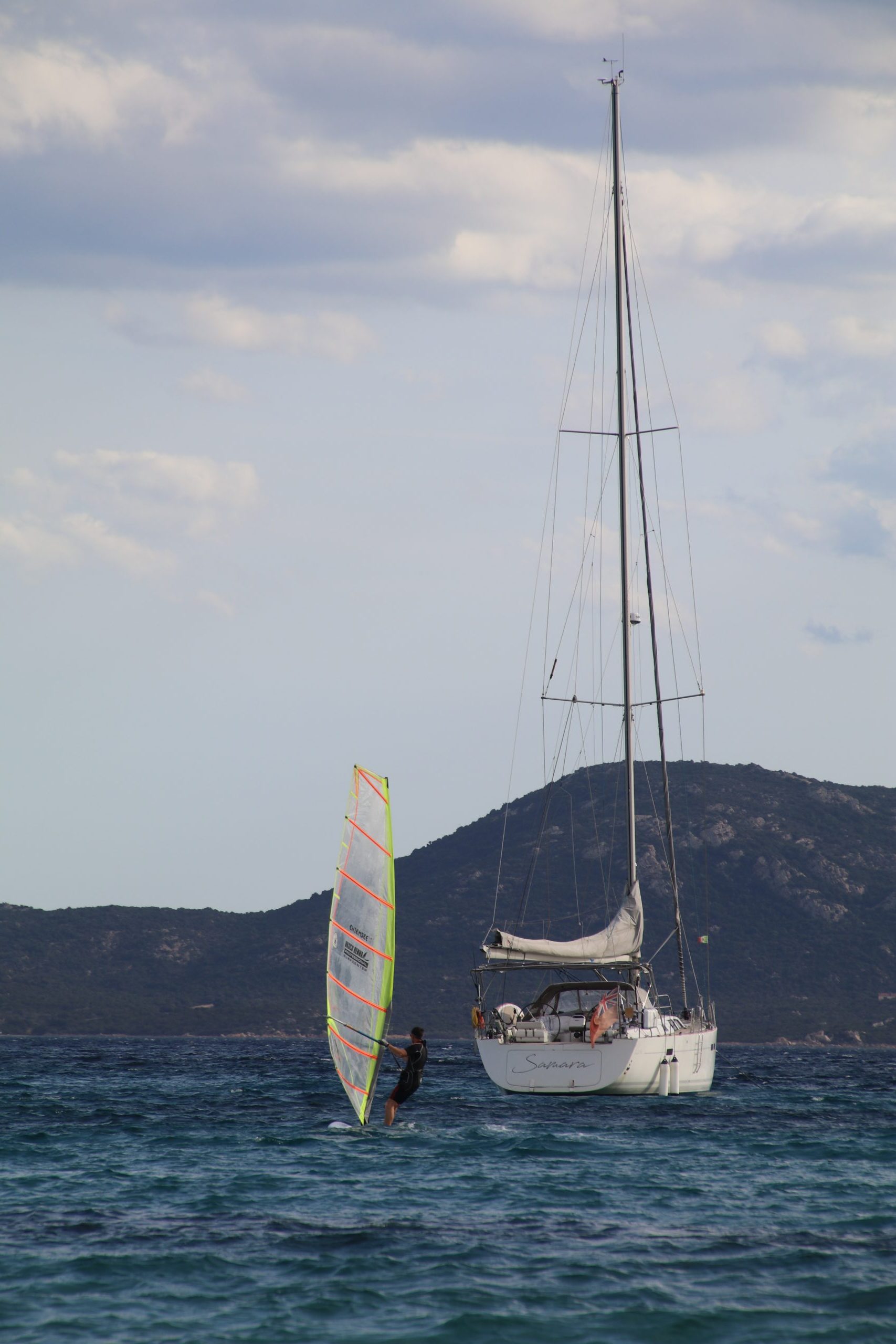 Wenig später frischt der Wind auf. Anfangs flitze ich mit dem Brett noch durch die Wellen aber wenig später habe ich mit dem großen Segel ganz schön zu kämpfen.