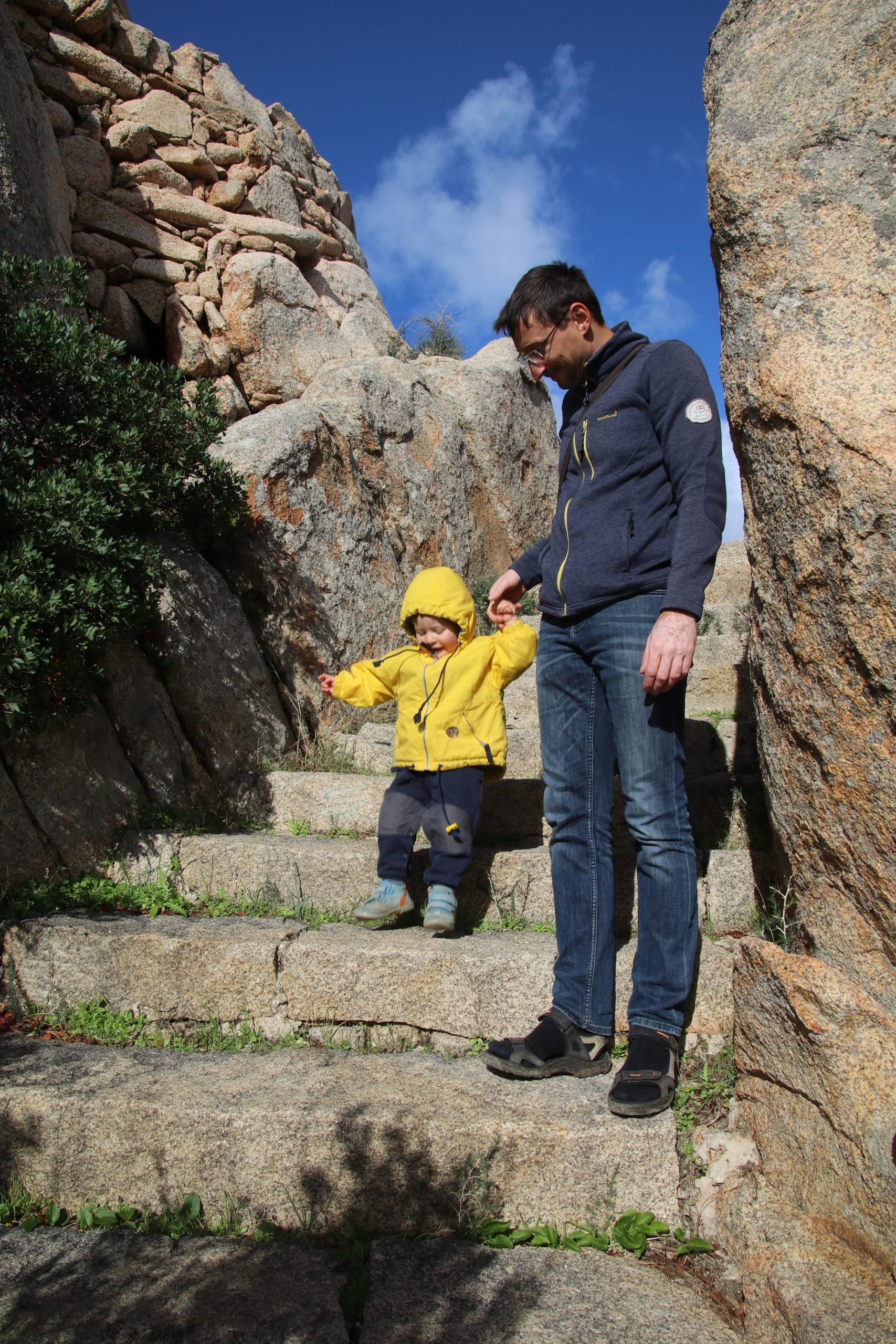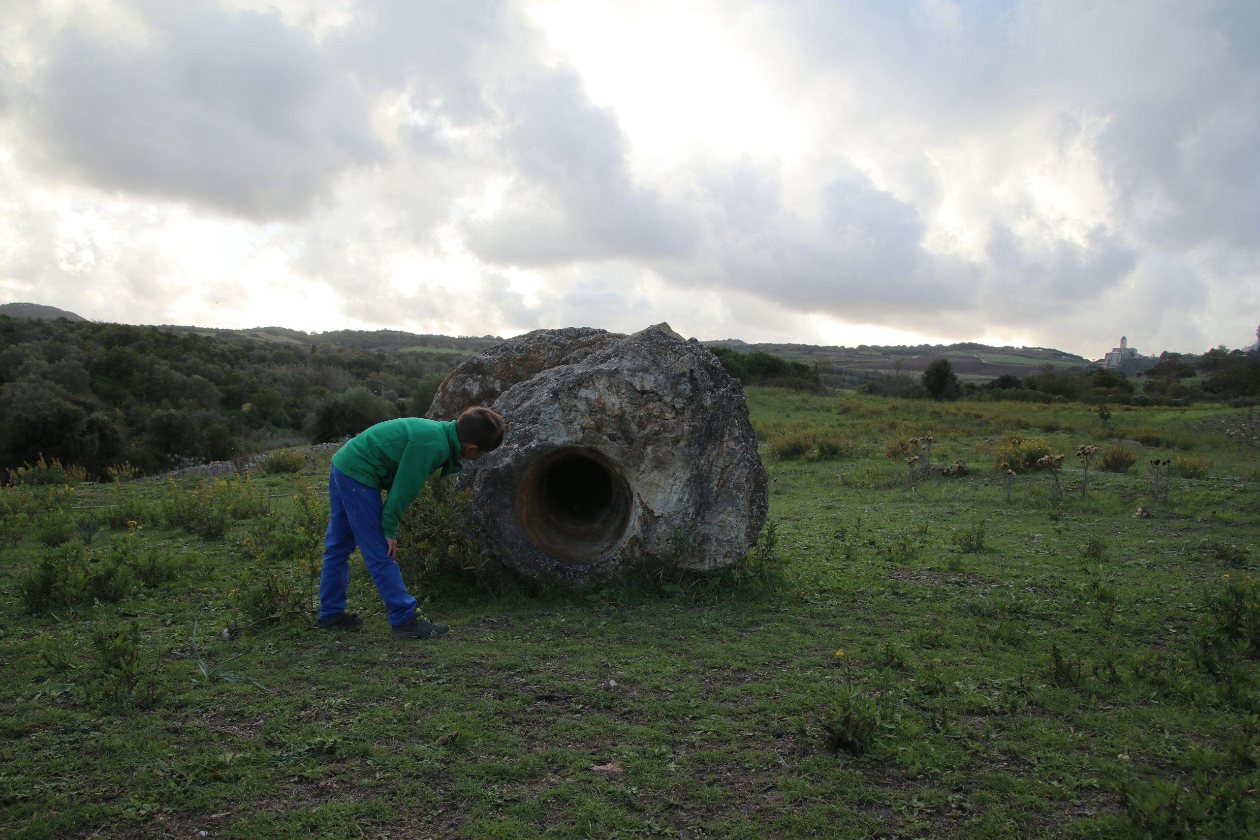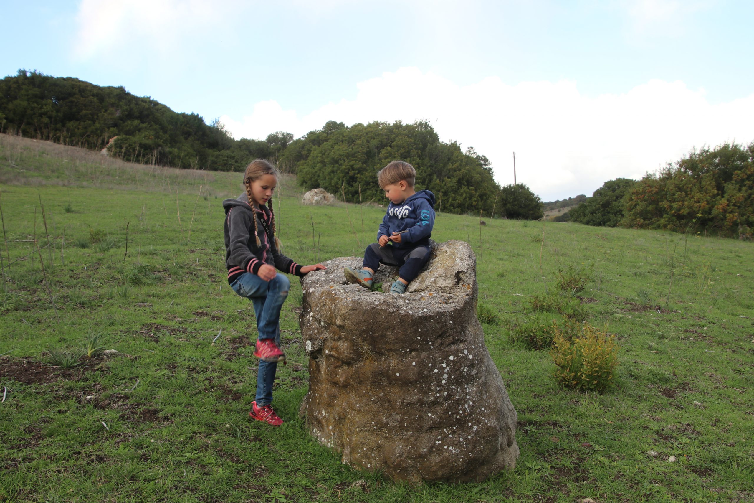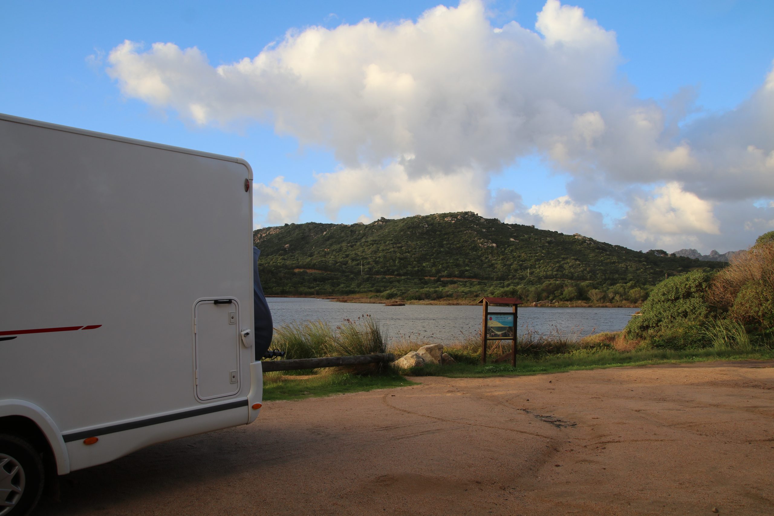 Da es immer noch sehr windig ist, entscheiden wir uns für einen weiteren Abstecher ins Inland. Mattis nutzt die Fahrt für sein Mittagsschläfchen. Ich fülle an einer Tankstelle Frischwasser auf und werde von einem kurzen, heftigen Schauer komplett durchnässt. Wir stoppen kurz in Perfugas. Während Anke ein paar Fotos schießt, koche ich Kaffee. Mattis schläft noch ein wenig.