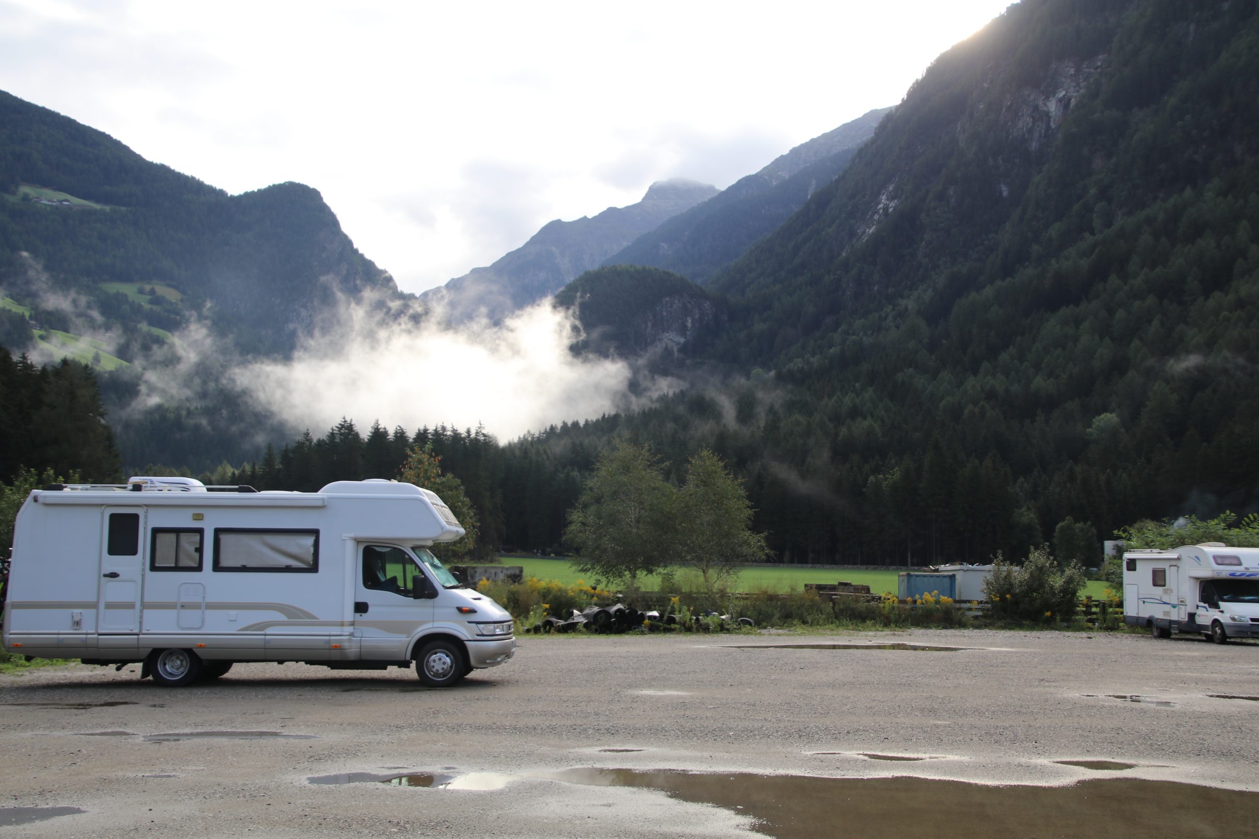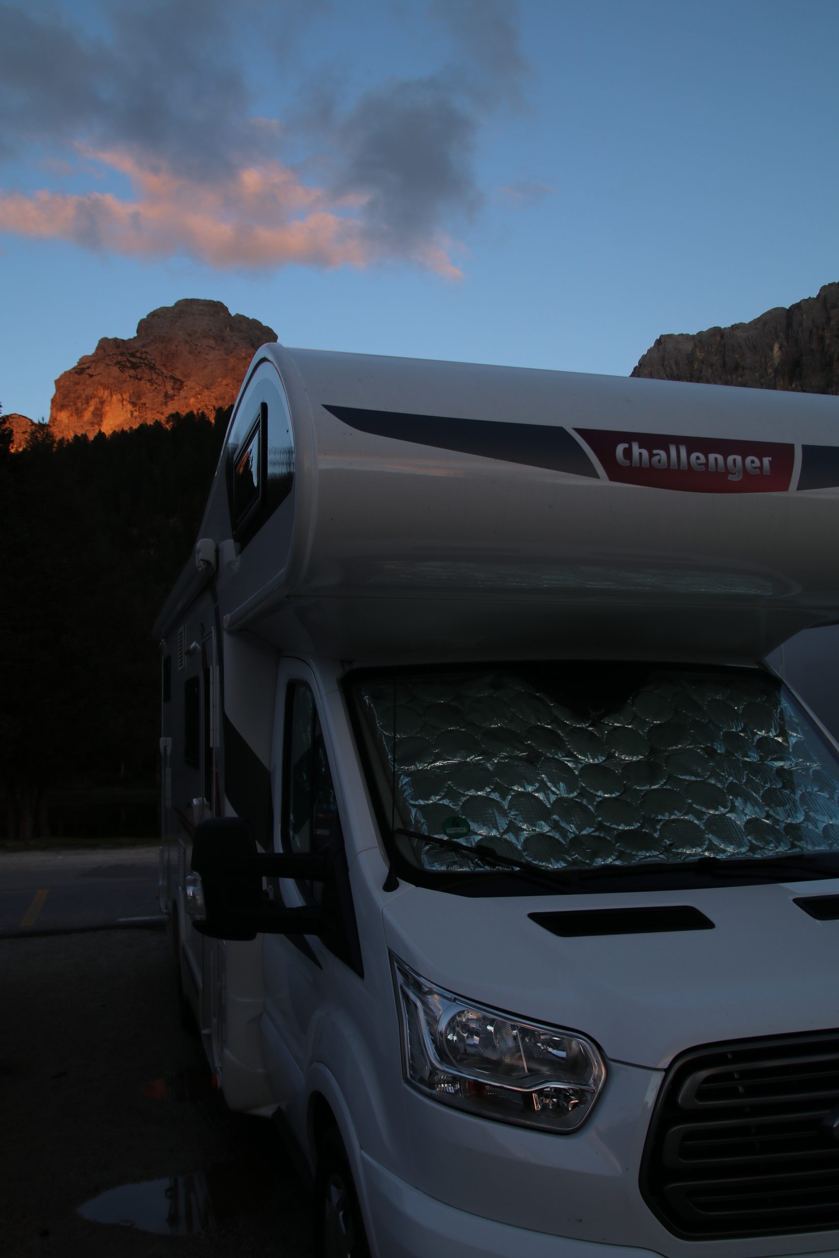 Am Abend fahren wir noch tiefer in die Dolomiten hinein. Morgen wollen wir die Drei Zinnen umwandern. Der Wanderparkplatz direkt dort oben ist unverschämt teuer (vor allem für’s Übernachten), so dass wir den letzten Parkplatz davor für die Nacht ansteuern. Es ist schon ziemlich voll, als wir dort ankommen, aber wir finden noch eine Lücke.
