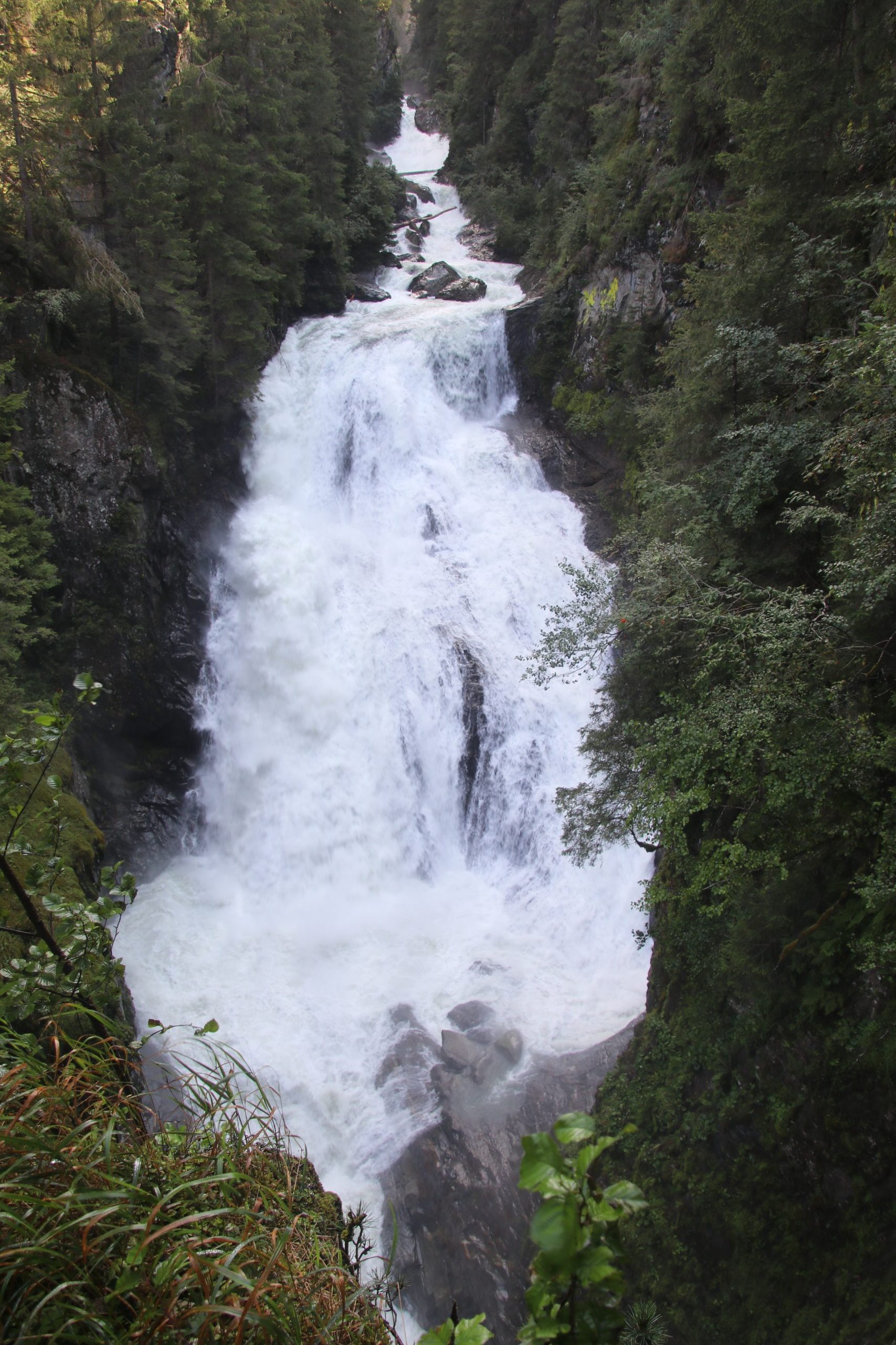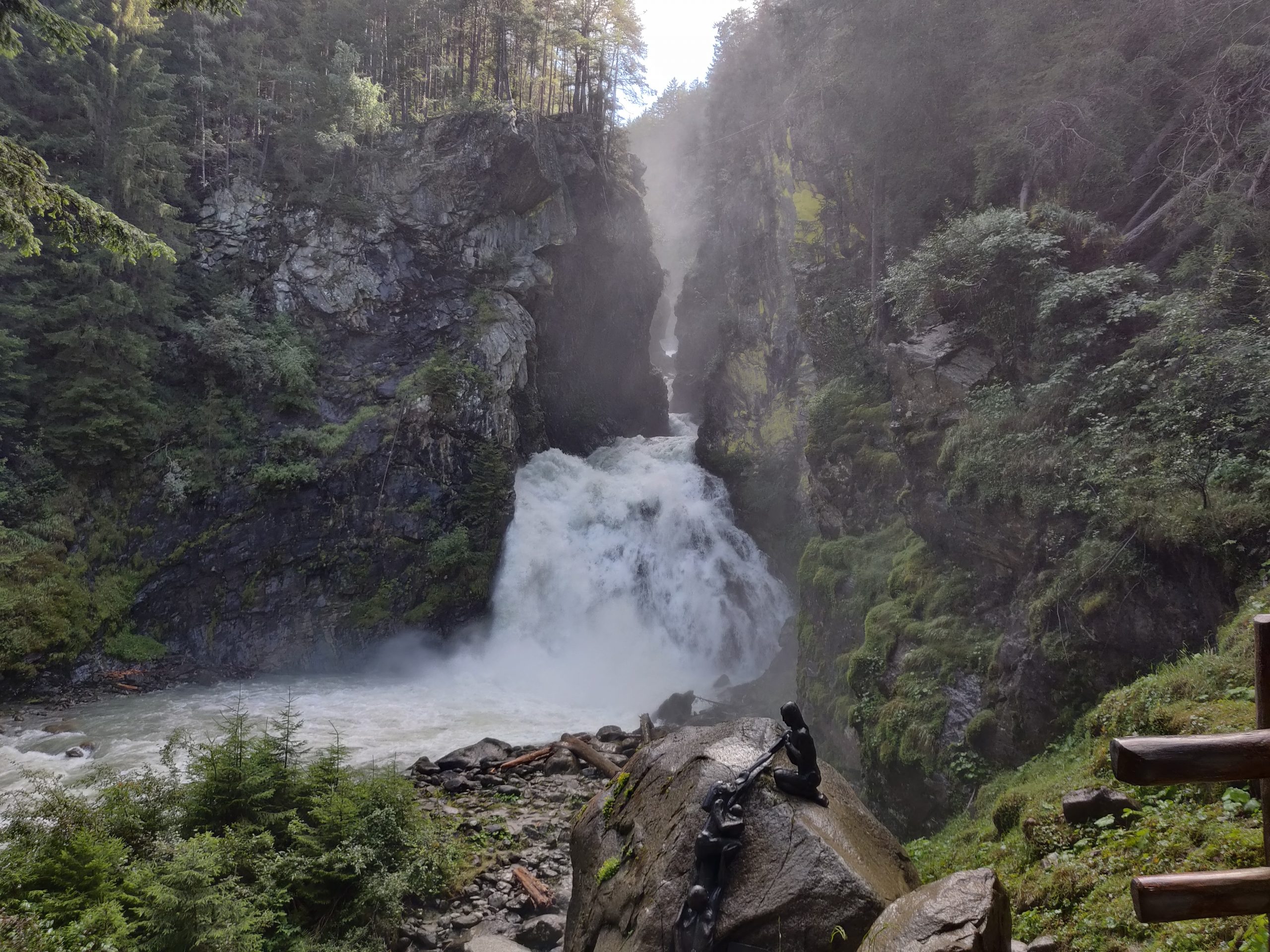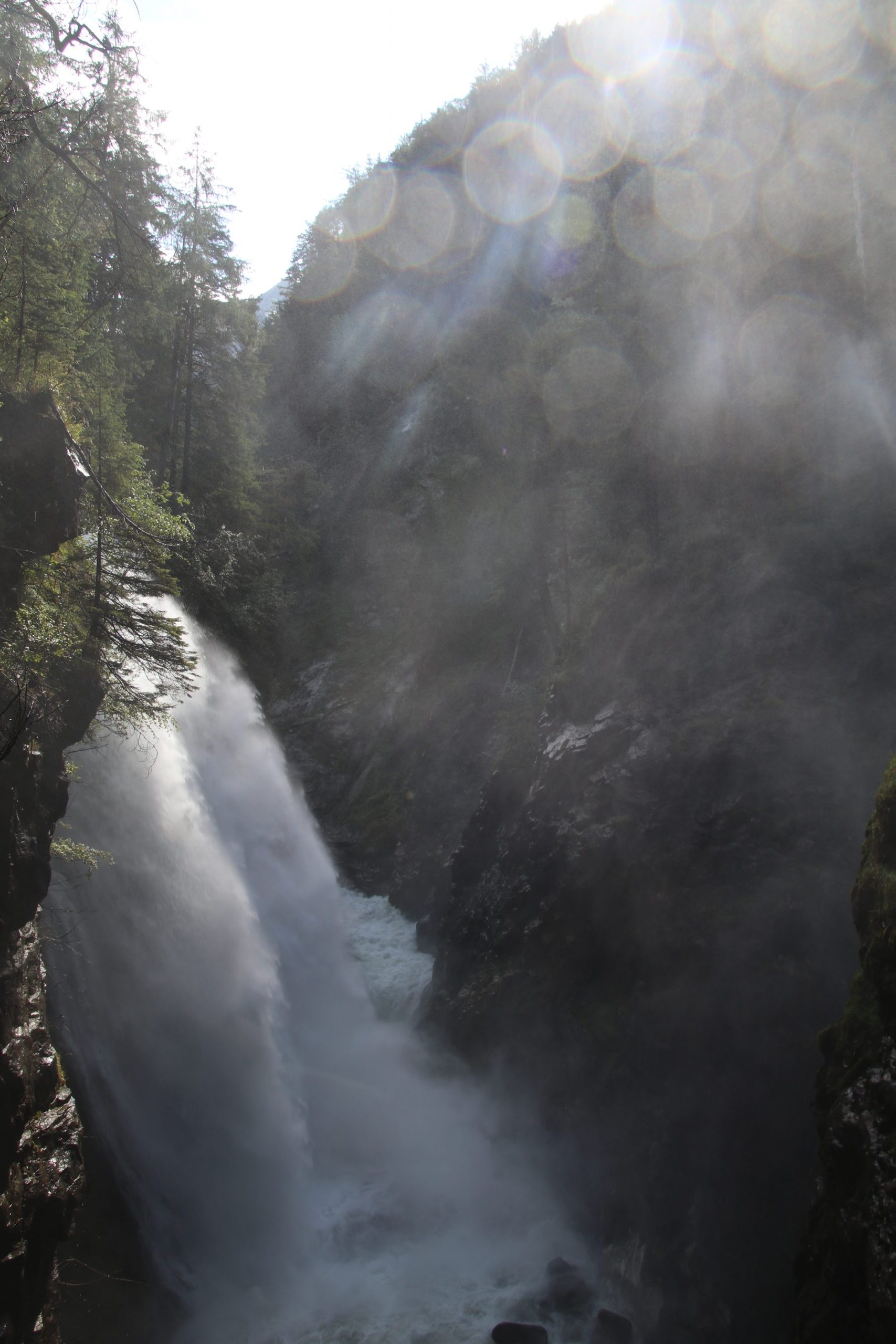 Den dritten und größten der Wasserfälle hören wir schon von Weitem tosen. Als wir uns nähern, kommen uns große Wasserschwaden entgegen geweht. Wir schaffen es, ein paar wenige Fotos zu machen, bis wir (und die Kamera) komplett durchnässt sind.