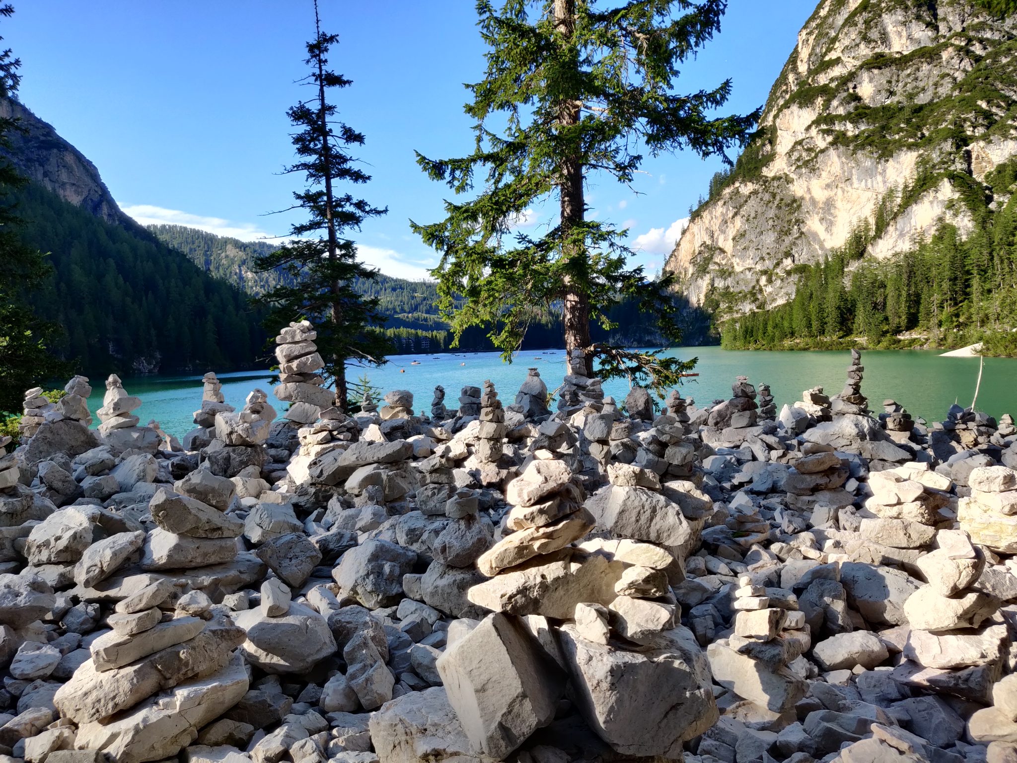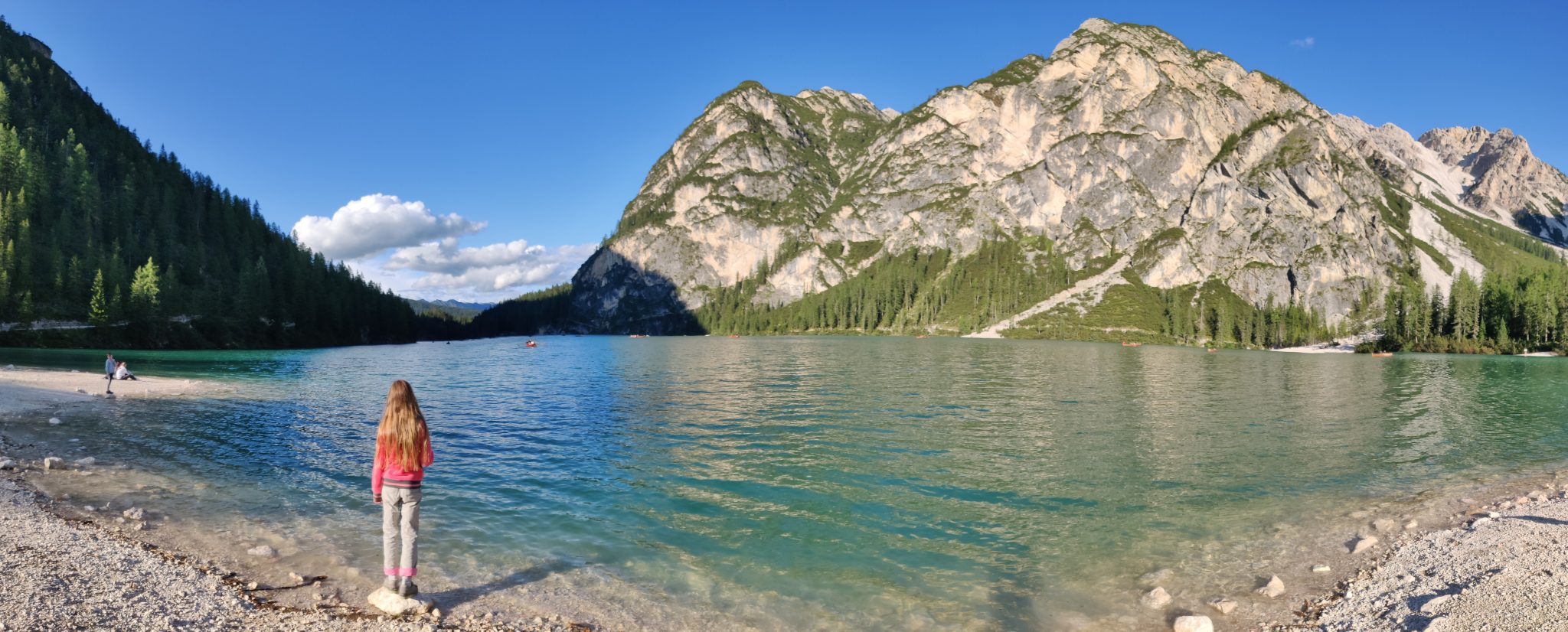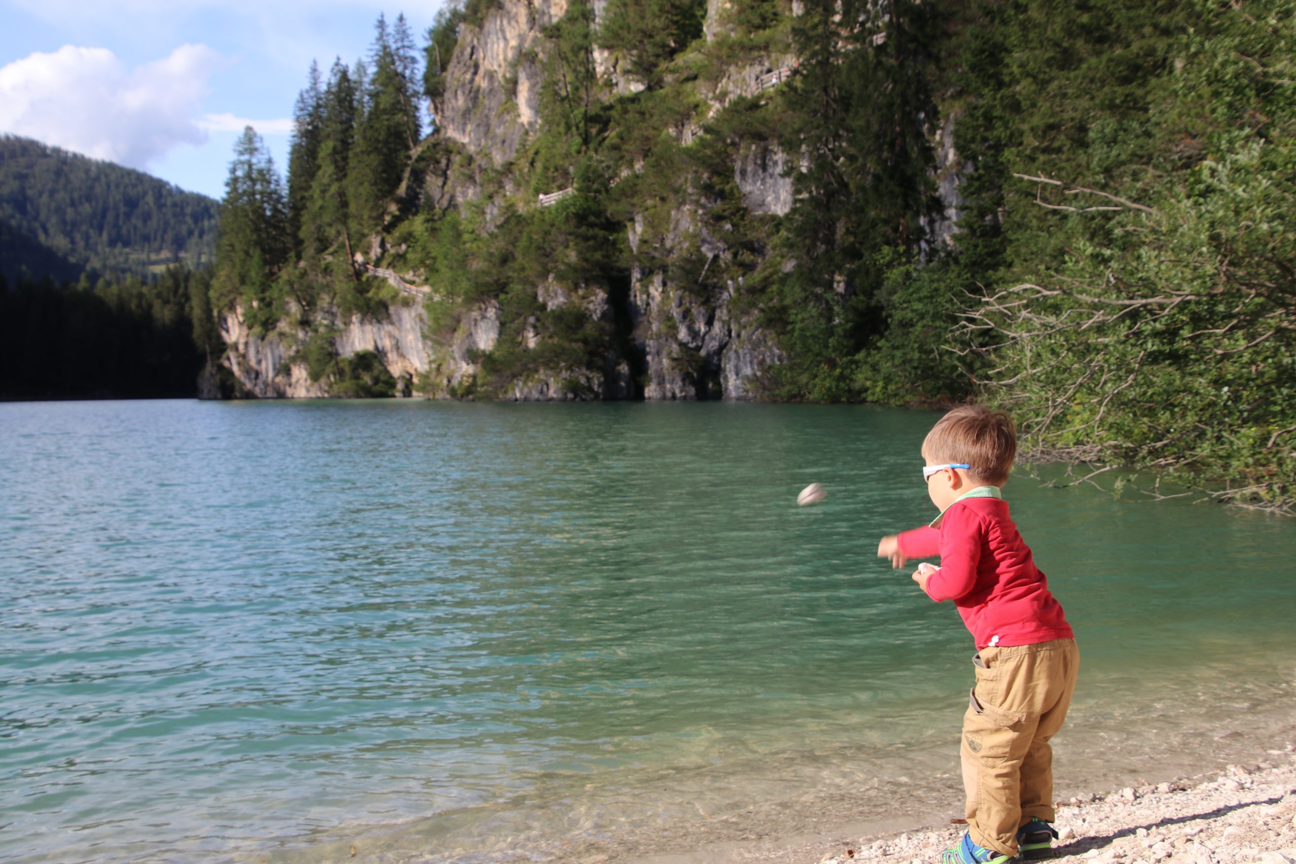 Nach dem Mittagessen fahren wir bis zum Pragser Wildsee. Leider kommen wir aber nicht bis hin, da die Zugangsstraßen von 9:30 bis 16:00 für den allgemeinen Verkehr gesperrt sind. Für die Natur ist diese Maßnahme mehr als angebracht, für uns etwas ärgerlich. Aber da Mattis sowieso gerade eingeschlafen ist, parken wir in der Zufahrt zu einem nahegelegenen Biotop und machen erstmal Kaffeepause.