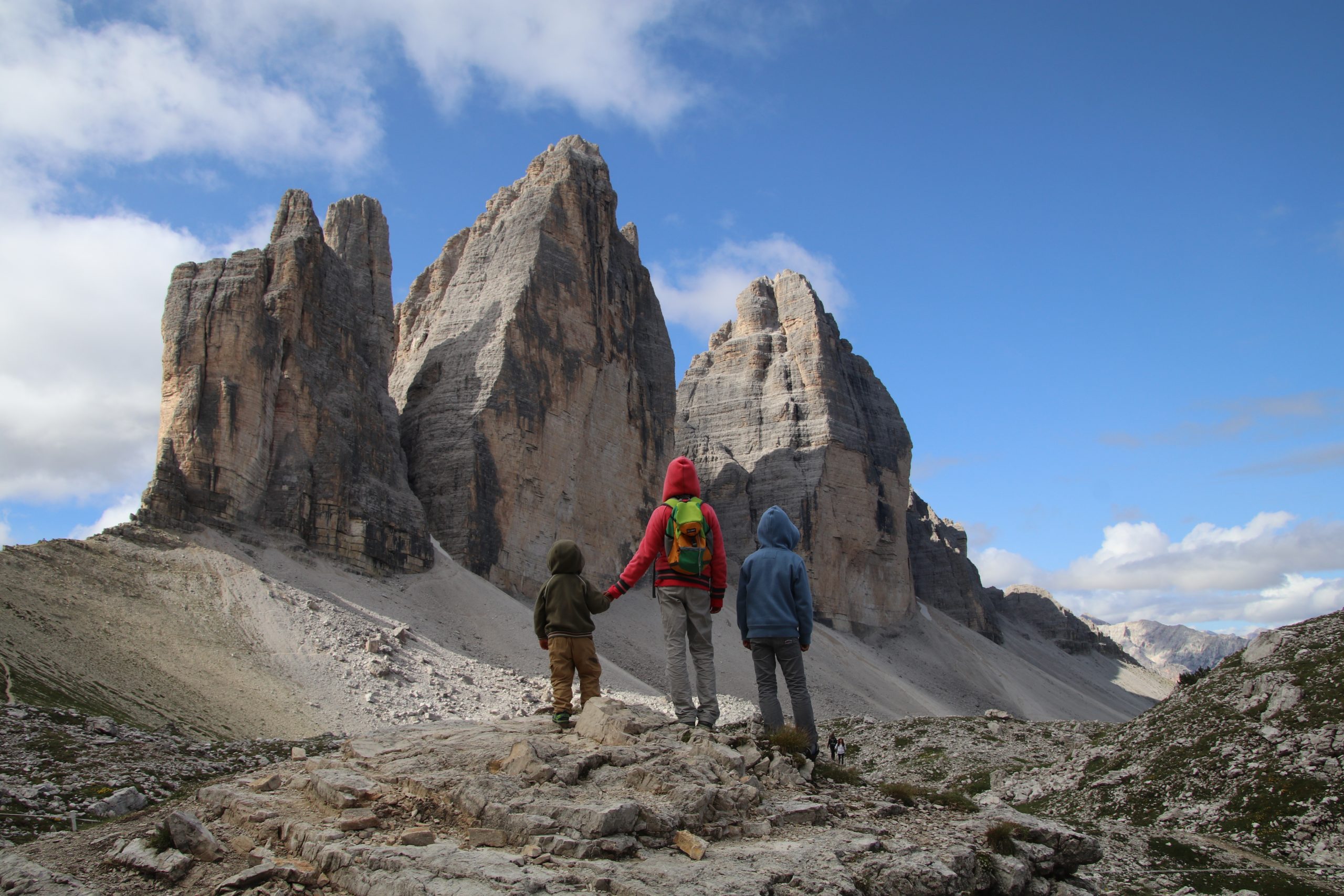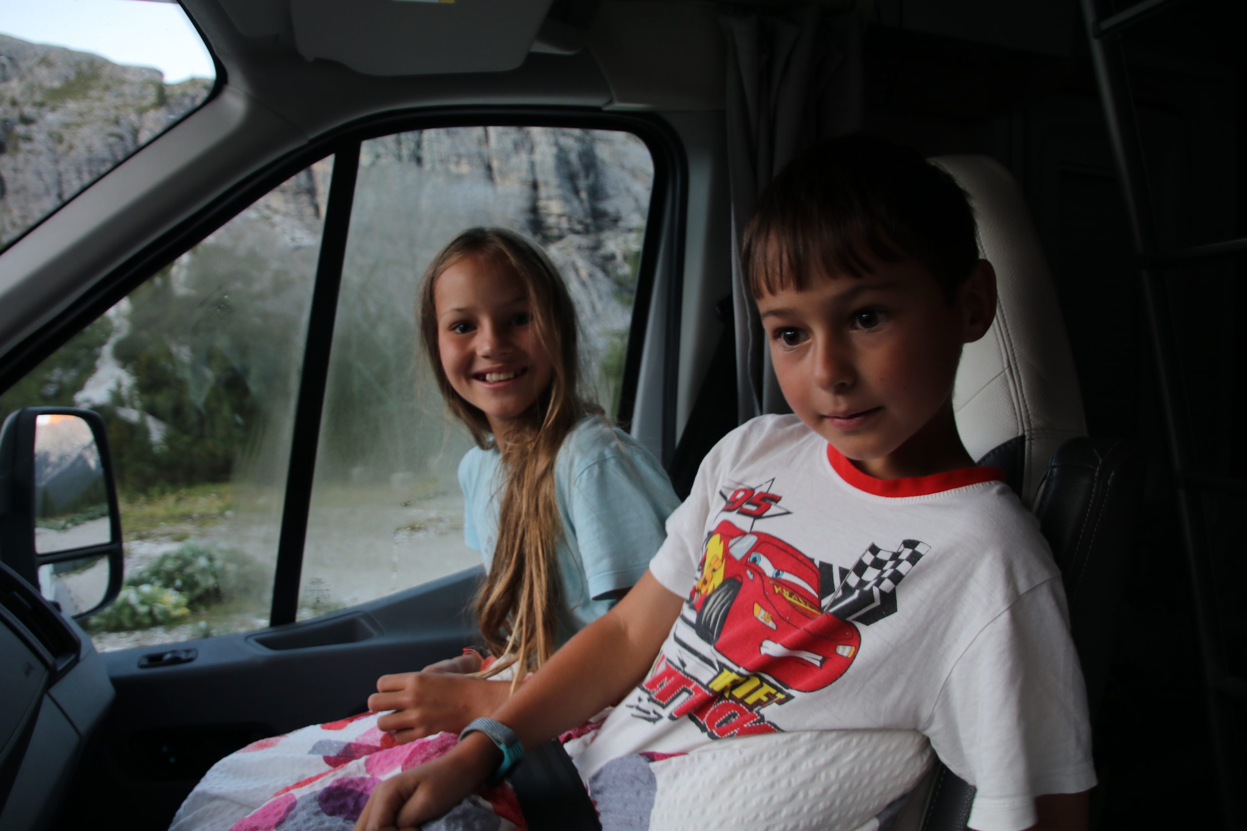 Mein Wecker klingelt 5:45, noch vor dem Sonnenaufgang. Ich reibe mir den Schlaf aus den Augen, mache den Camper startklar und fahre die 6 Kilometer Serpentinen bis nach oben zur Auronzo-Hütte. Der Plan war, die Kinder noch schlafen zu lassen und ganz vorsichtig zu fahren. Doch wenige Minuten später sitzen alle und schauen nach draußen. Als erstes muss ich aber noch die Parkgebühr bezahlen, stolze 45 Euro für einen Tag. Dieser beginnt nach der neuesten Regelung um 2 Uhr Nachts, so dass es für Übernachter auf dem Gelände doppelt so teuer wird – der Grund, warum wir einen Parkplatz davor übernachtet haben.