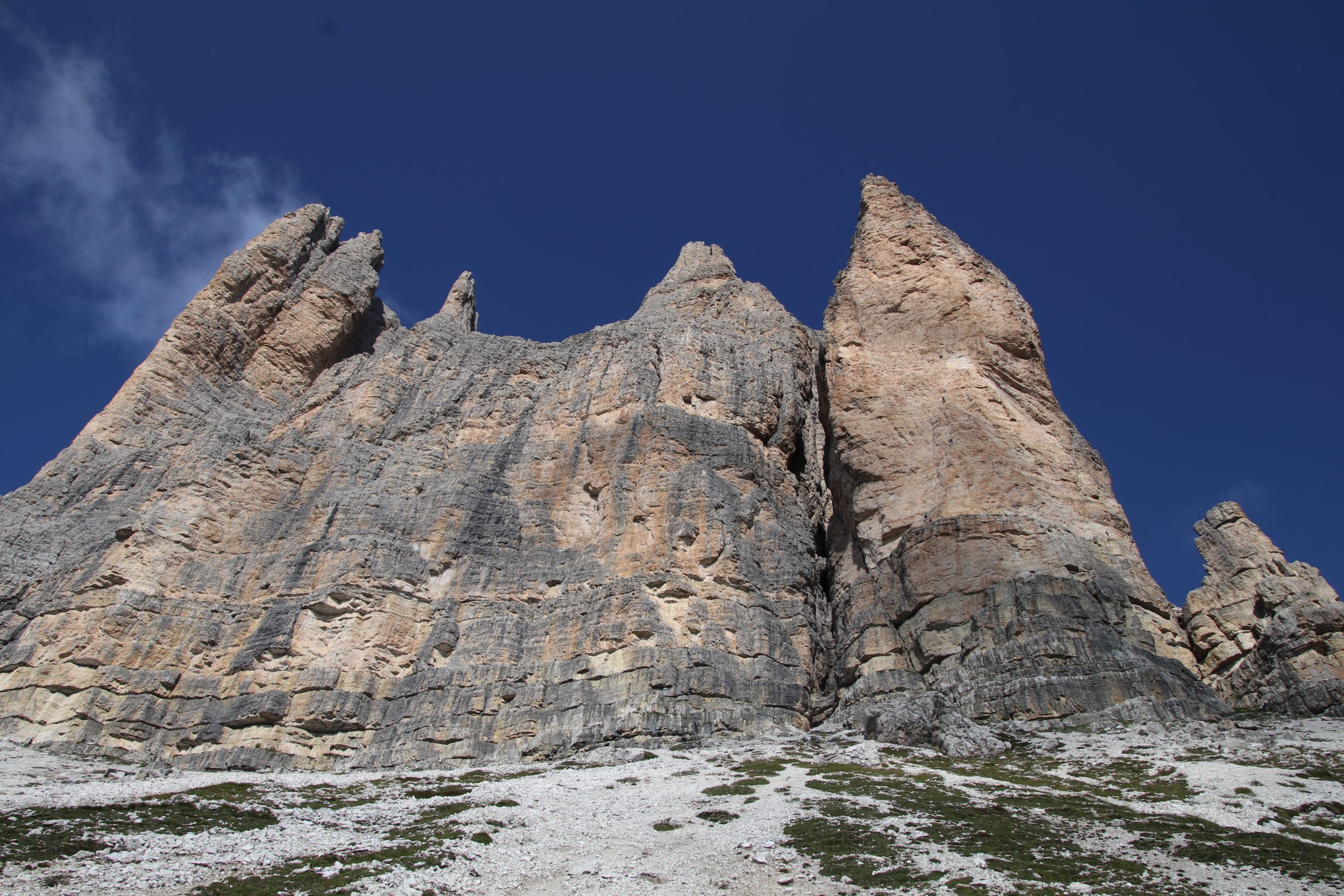 Wir umwandern eine bizarre Felsenformation und warten darauf, die berühmten „Drei Zinnen“ endlich zu sehen zu bekommen.