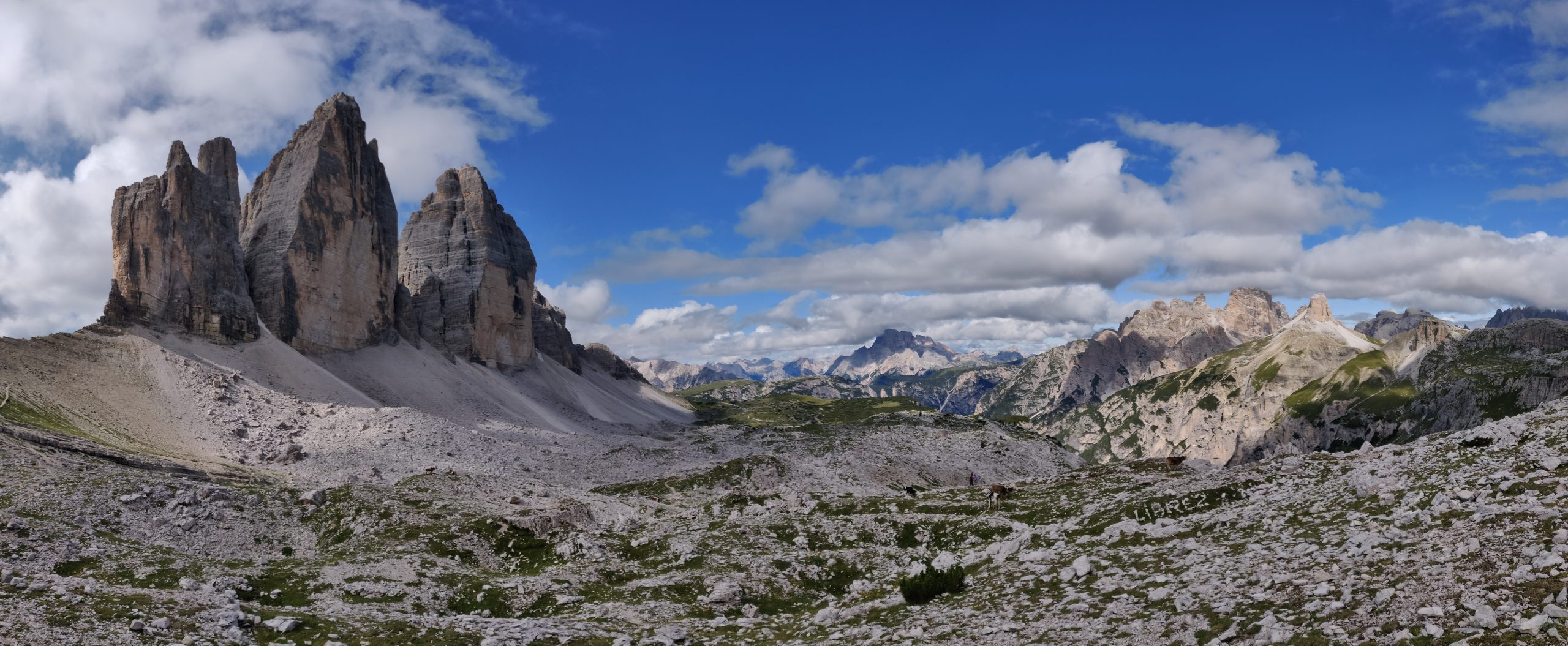 Das Wetter wechselt zwischen Wolken und Sonne. Wir machen unterwegs in Ruhe Mittagspause (neben den Jacken sind auch reichlich Vorräte im Rucksack). Am Nachmittag haben wir die Zinnen komplett umrundet und sind zurück am Camper.