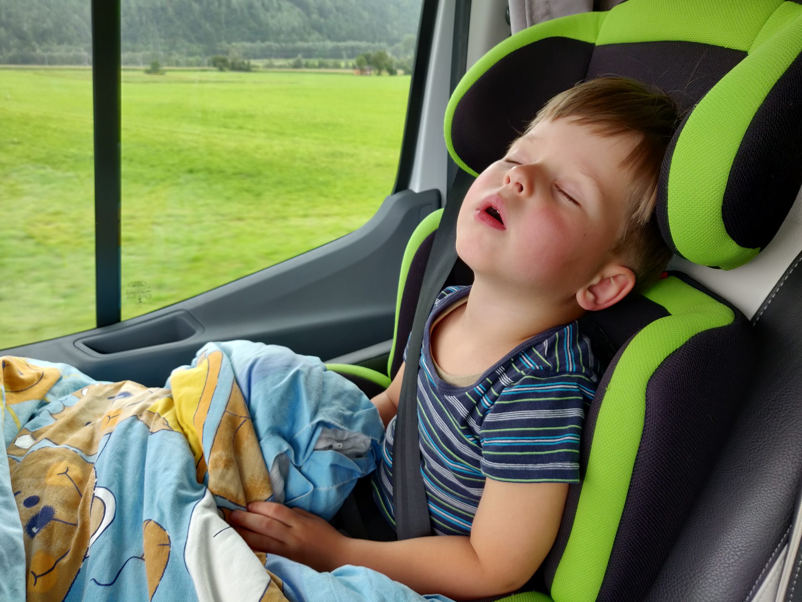 Wir fahren zurück ins Tal. Mattis nach wenigen Minuten im Sitz eingeschlafen.