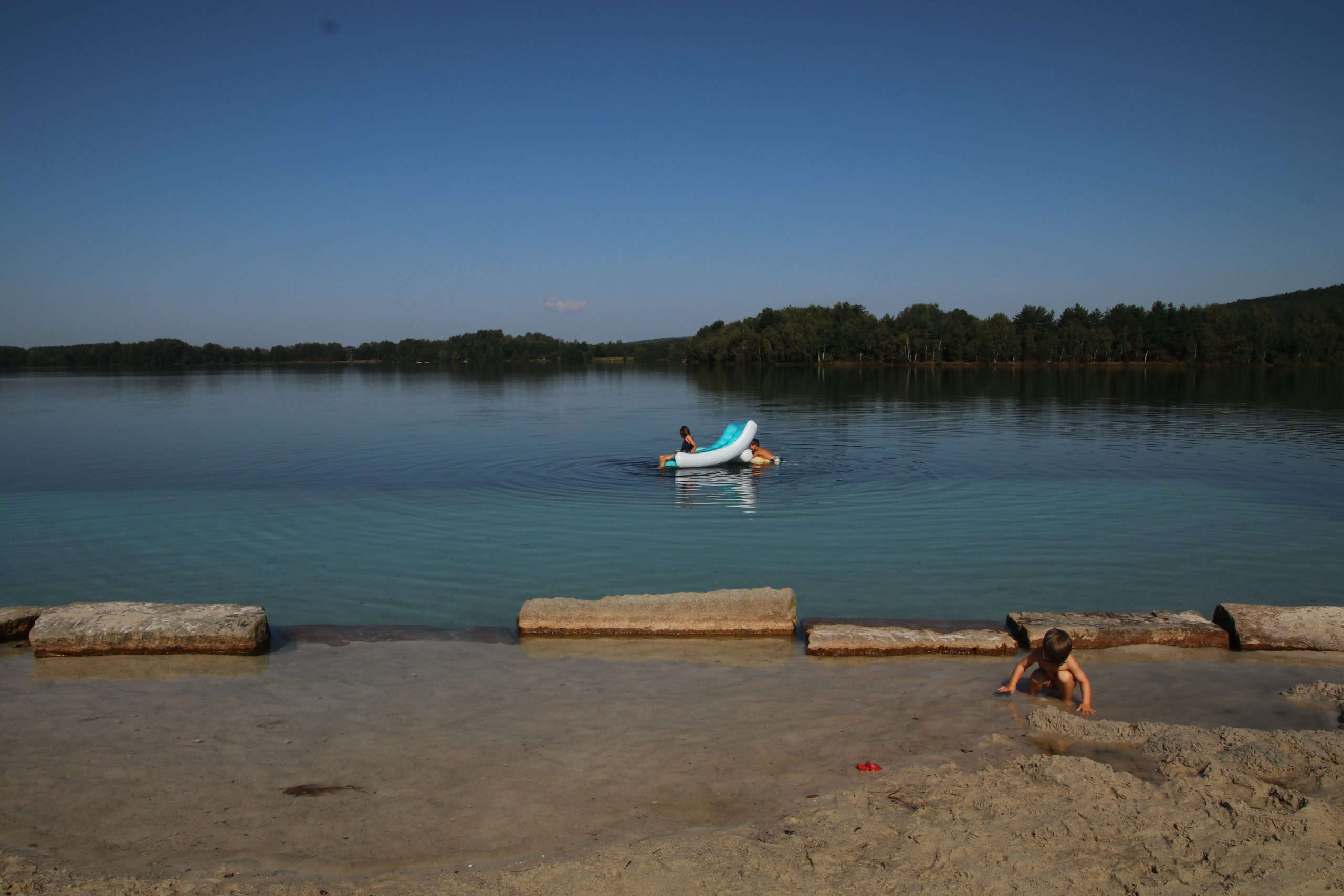 Nach dem Frühstück gehe ich mit den Kindern zum Sandstrand runter. Anke läuft inzwischen eine Runde um den See.