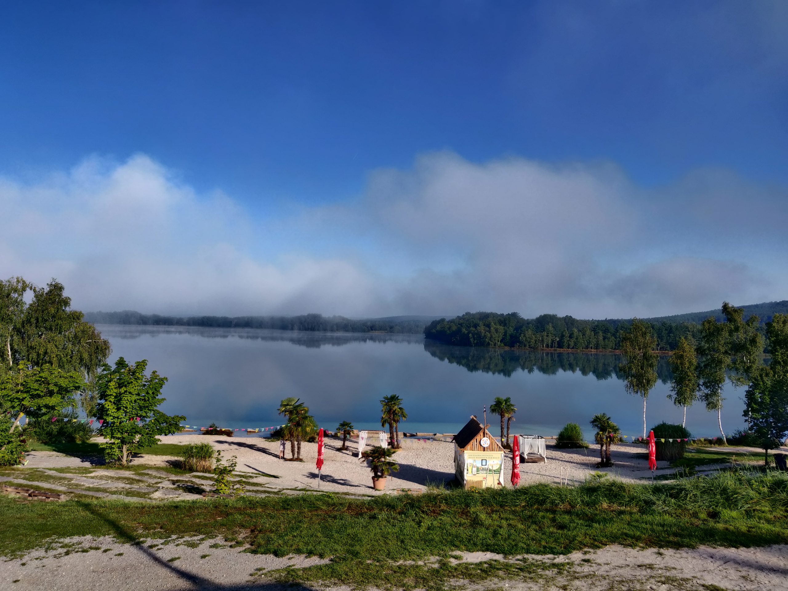 Unser letzter Tag zeigt sich von der besten Seite. Als ich am Kiosk Brötchen hole, ist es zwar noch etwas nebelig, beim Frühstück hat die Sonne den Nebel aber bereits vertrieben.