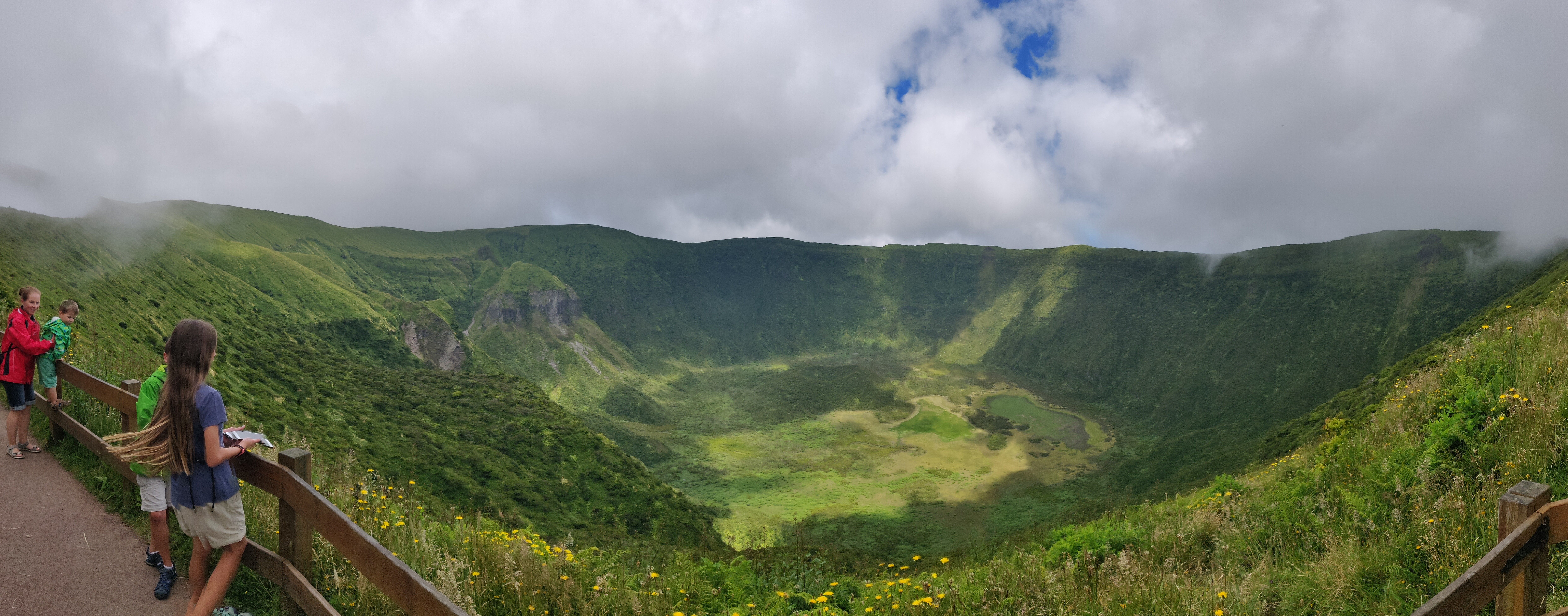 Dank Zeitverschiebung landen wir schon kurz nach 9 Uhr auf der Insel Faial. Unsere Koffer sind auch hier, was für spontane Entspannung sorgt. Wir buchen noch schnell die Fähre für heute Abend und holen dann unseren Mietwagen ab. Es ist ein schwarzer Citroen C-Elysee aus 2016, der auch gut in einen Maffia-Film gepasst hätte. Statt des unliebsamen Neffens finden 5 Koffer gerade so Platz im Kofferraum.
