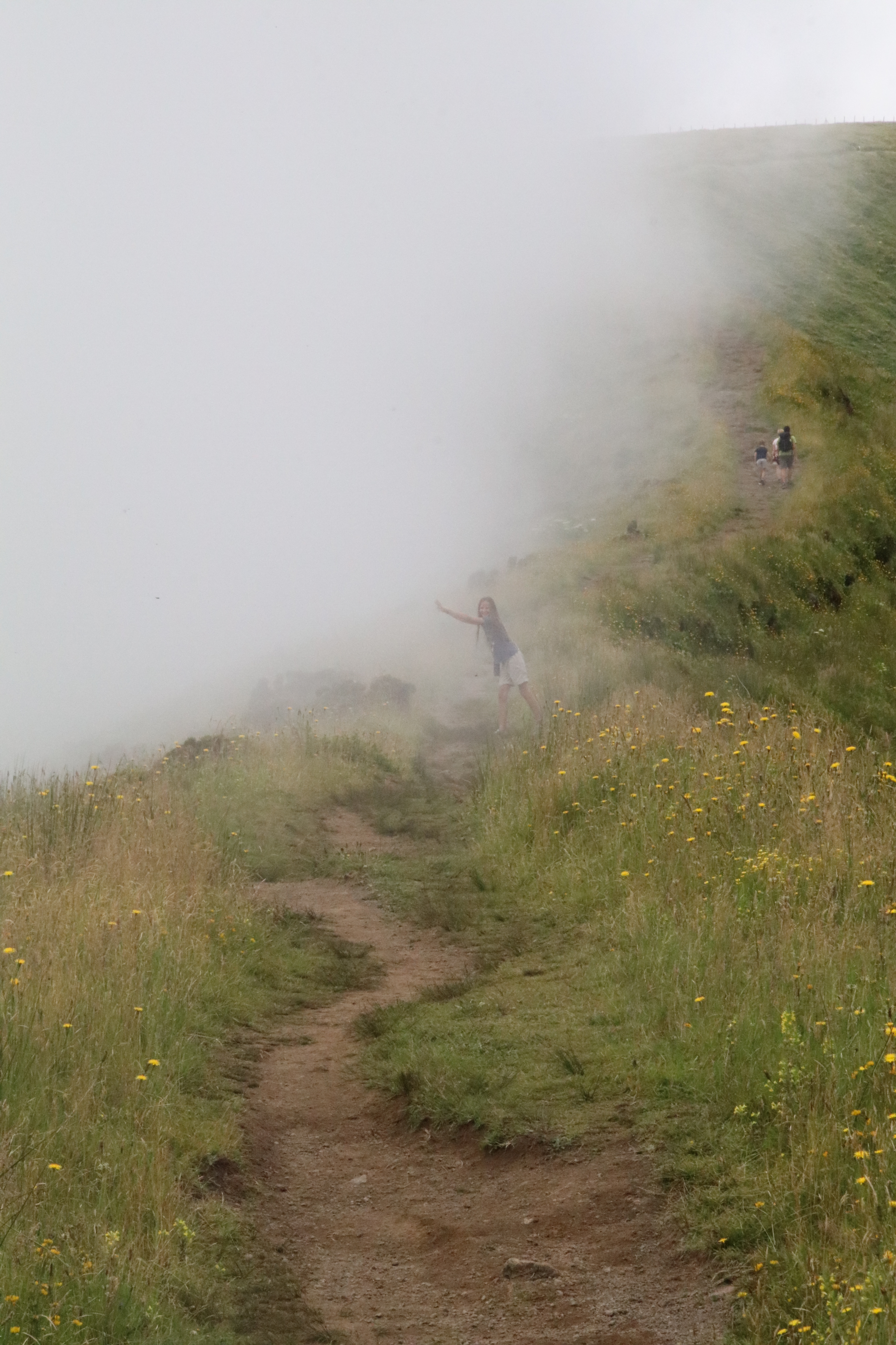 Da die Wolken an den Bergflanken hinauf ziehen und es immer mal tröpfelt, starten wir in Regenjacken. Es sind 22 Grad aber aufgrund der Luftfeuchtigkeit kommen wir schnell ins Schwitzen und packen die Regenjacken nach wenigen Metern wieder ein.