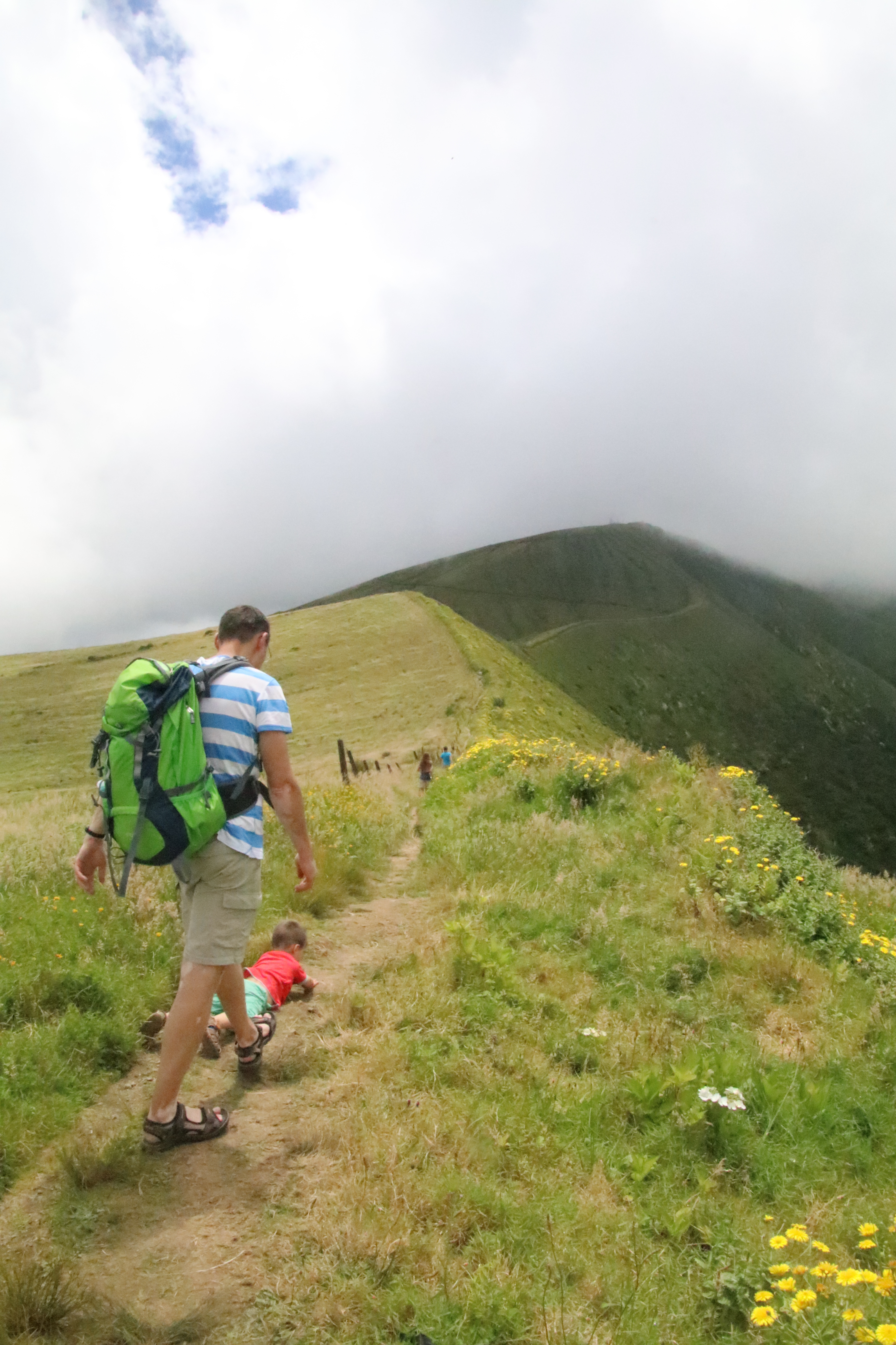 Da die letzte Nacht sehr kurz war und wir alle müde sind, haben wir für Mattis eine Trage mitgenommen. Der Plan ist, dass er während der Wanderung ein wenig Schlaf tanken kann.