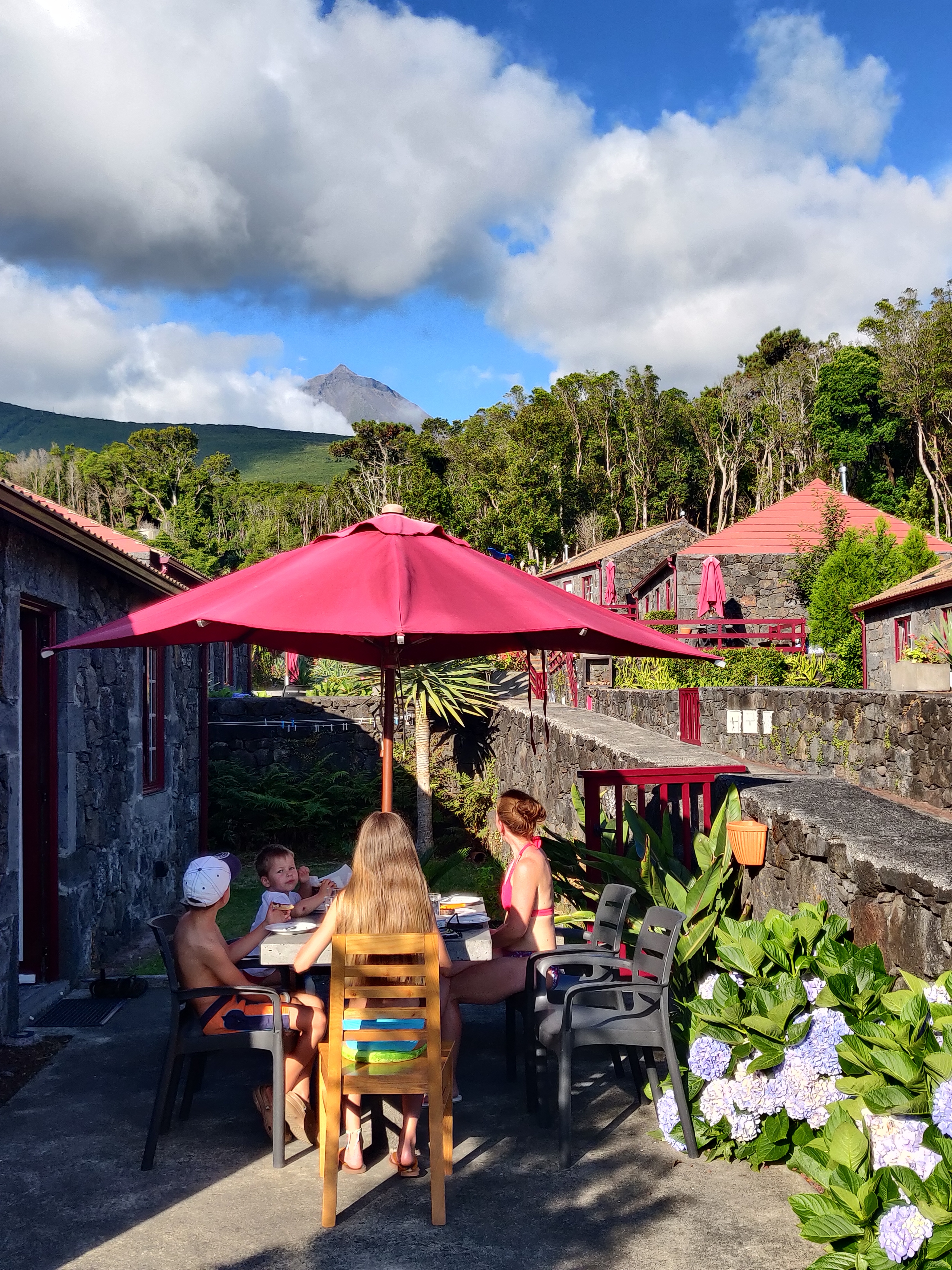 Wir haben heute Nacht wie Steine geschlafen und erwachen gut ausgeruht und recht spät. Der Tag beginnt sonnig und warm, so dass wir draußen auf der Terrasse frühstücken können.